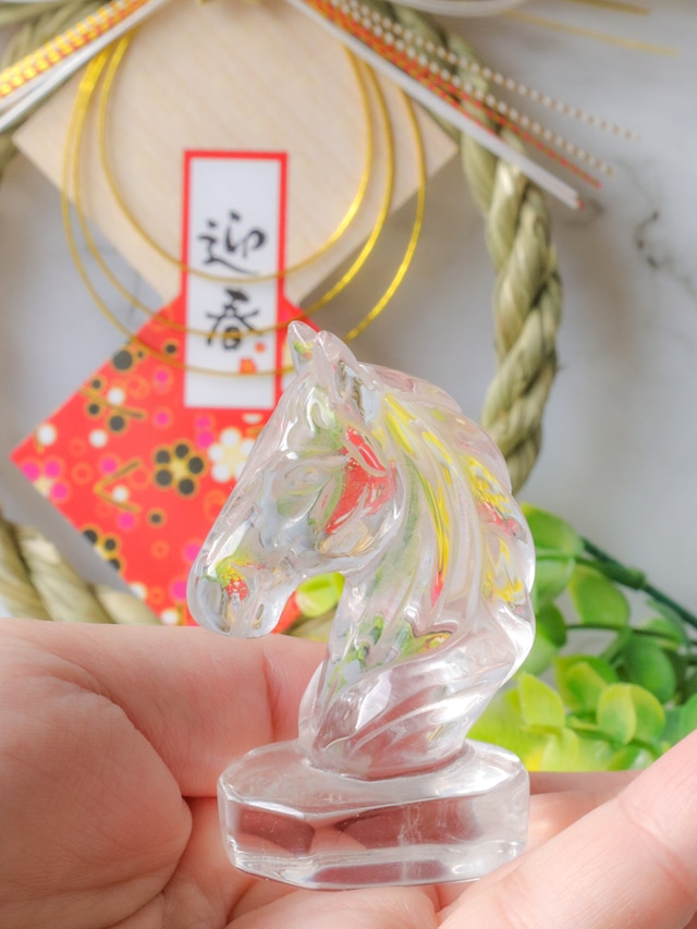 Size : *W34.3㎜ *H53㎜ Weight : 42g 2026年は午年♡という事で、クリアクォーツのお馬さんです✨ 年末年始の時期ということもあって、しめ縄飾りとパシャリ♪透明度が高いので、後ろが物でガチャガチャしてますが、後ろに物がある方が見えることもあって、一緒に撮ってるものもあります✨見た目もエネルギーも透明感のあるこです✨✨玄関や寝室などで、可愛く皆さんをお出迎えしてもらってください♪私は玄関に飾ってます✨ 是非このタイミングにあなたのお手元へ♡ 水晶は精神面とのつながりが強い天然石♡ 人の潜在能力を引き出し、幸運に導いてくれる力があると考えられています✨そのため精神の安定や直感力アップ、ヒーリングなど、さまざまな効果があるとされています♡ メンタルが揺らぎがちなときでも、気持ちをクリアにし、リセットしてくれます✨✨ また、水晶は、他の天然石と組み合わせやすい石でもあります♡というのも、他の天然石の力を活性化させ、引き出してくれる効果があるとされるからです♡ 色んなお石さんと組み合わせて可愛く飾ってください☆ミ ※websiteの方は下に動画もございますのでご参考までにご覧ください✨ アプリをご利用の方は ↓下記URLより動画をご覧いただけます https://youtube.com/shorts/2ZpBC7QzteM?si=JQoAcSbWAsIPoMgn *お迎えいただく前のご注意* 天然石の性質上、色味や形の不揃い・内包物・クラックと呼ばれる内傷や石目などが有る場合がございます。天然石特有の魅力でもあるため、その子たちの個性も受け入れた上でお迎えくださると幸いです (〃´ー`人´ー`〃) *撮影について* 太陽光の下で撮影しており、加工もしておりませんが暗いところでお手にとって頂くとまた違ったお色味になるかと思います。 太陽にかざしたり、ライトにかざしたり、色んな方法をお試し頂きお楽しみください(* ´ ▽ ` *)