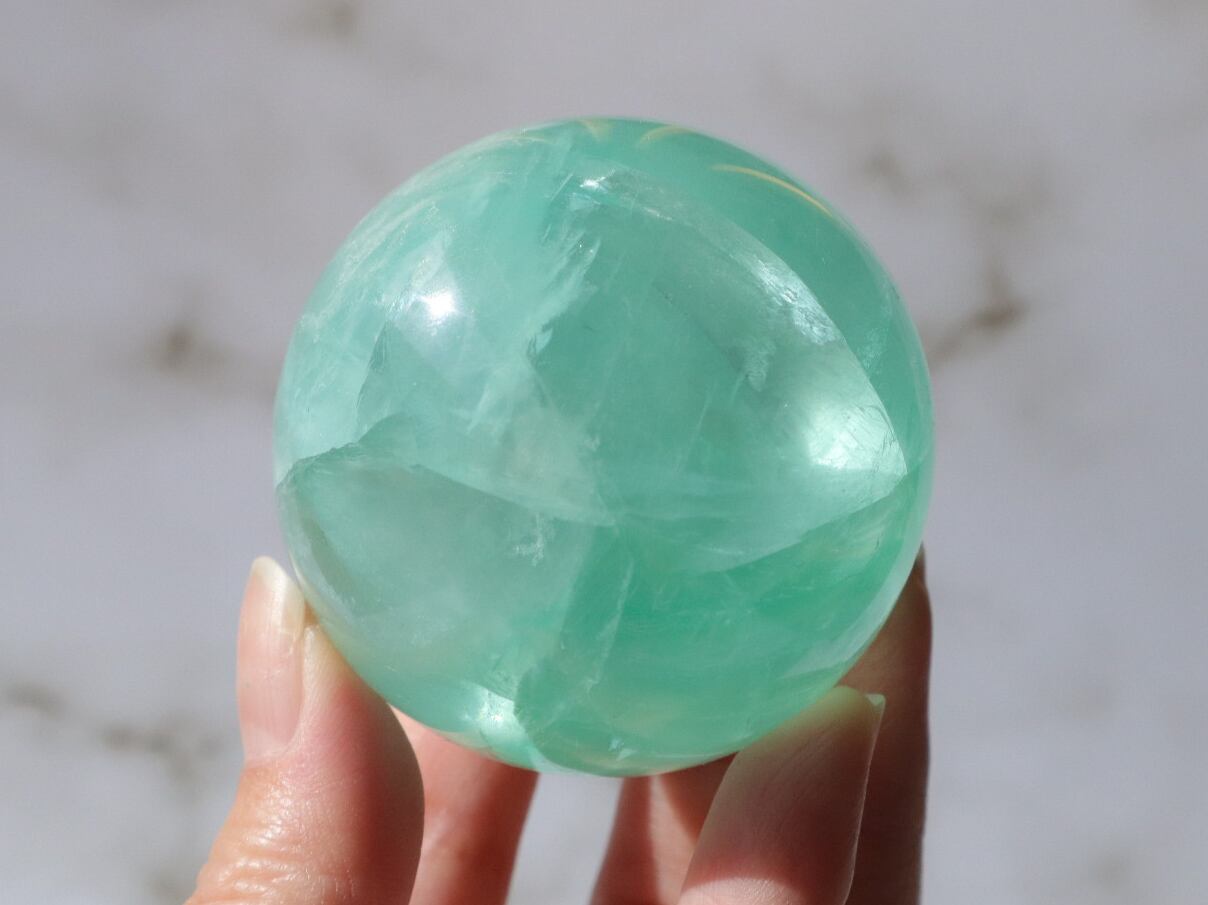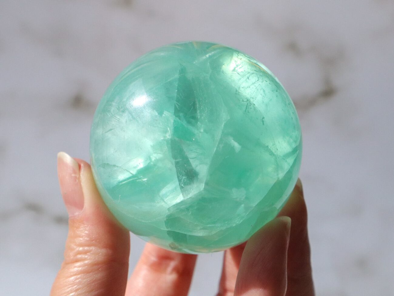 透明感のある美しいミントグリーンのフローライトは、私が個人的に大好きな色で、置いていると、とっても爽やな雰囲気を醸し出してくれます♡( *´艸`)✨✨中には虹もあって、魅力的なこです✨✨