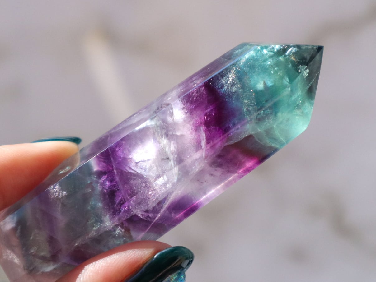 フローライトの名前の由来は、ラテン語の「fluere(流れる)」という意味の言葉から来ているそうです✨その名の通り、滞っていた気の流れを整えてくれる、非常に高いバイブレーションを持つ天然石です♡心と体、妄想と行動、他人と自分など、矛盾しがちなエネルギーバランスを調和させることに優れていると云われています✨