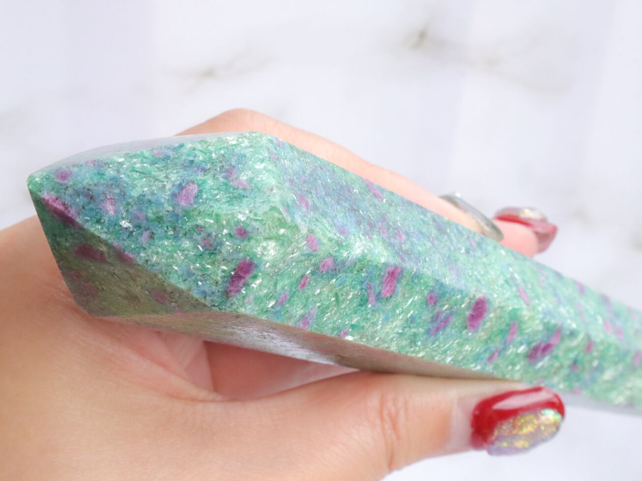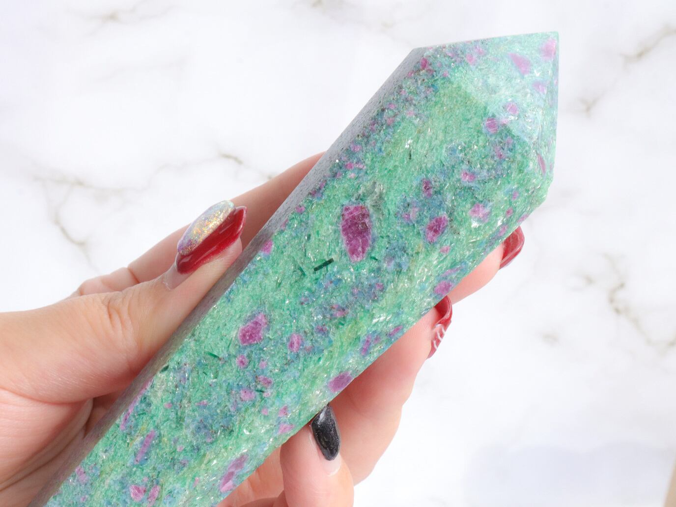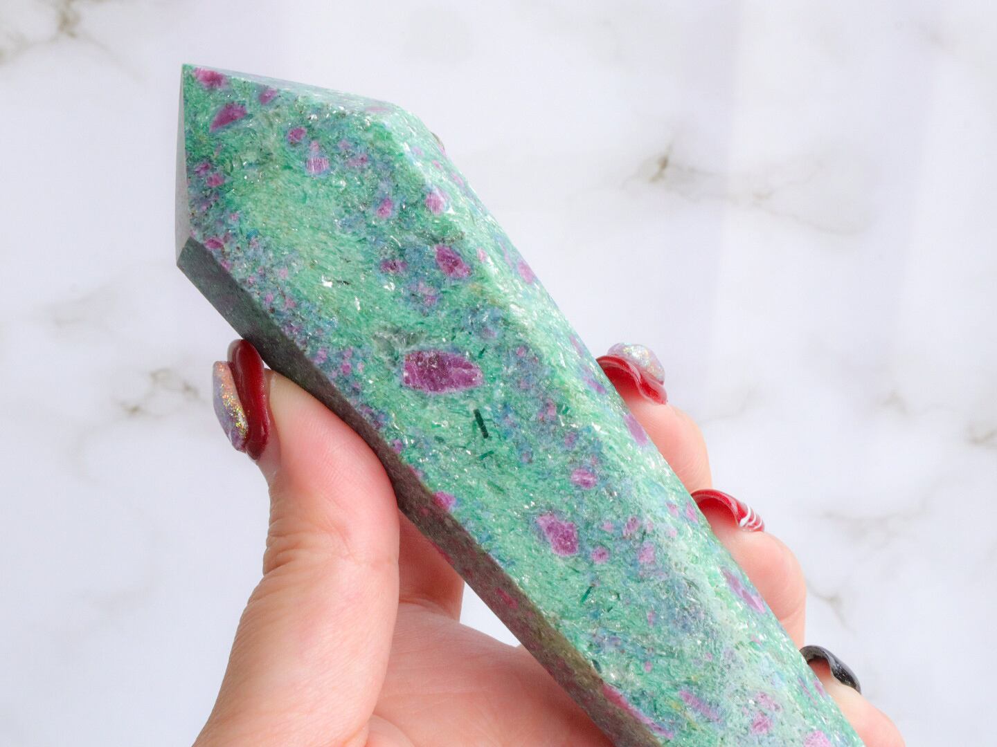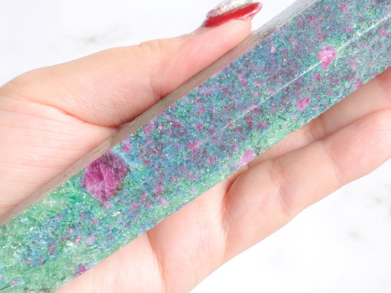 ルビーインカイヤナイトは和名を紅玉入り藍晶石と言います✨今回はとってもレアな、ルビーインカイヤナイトのワンドをご紹介します♡キラッキラしたブルー、グリーン、マゼンタを存分にお楽しみ頂けます♪