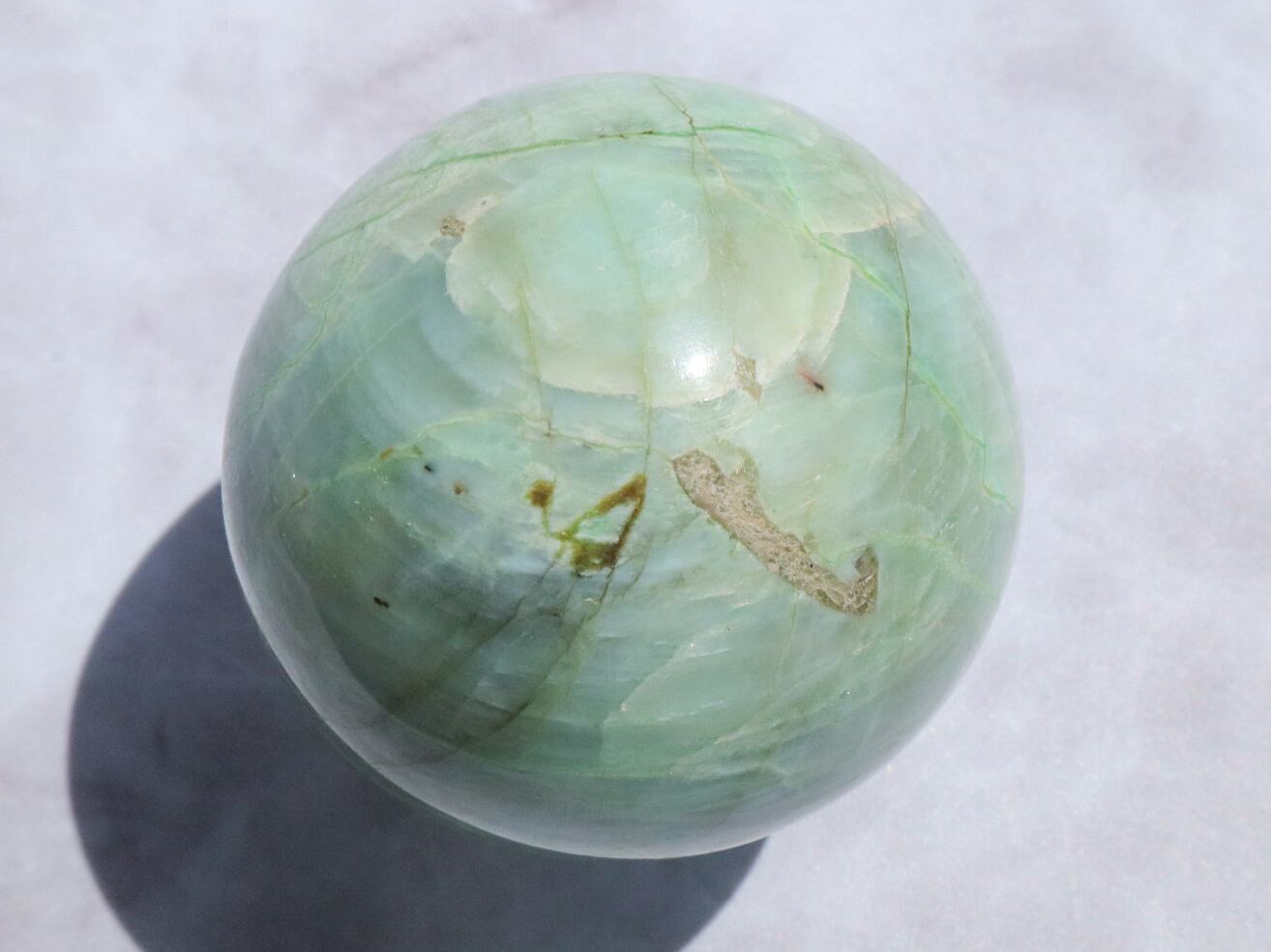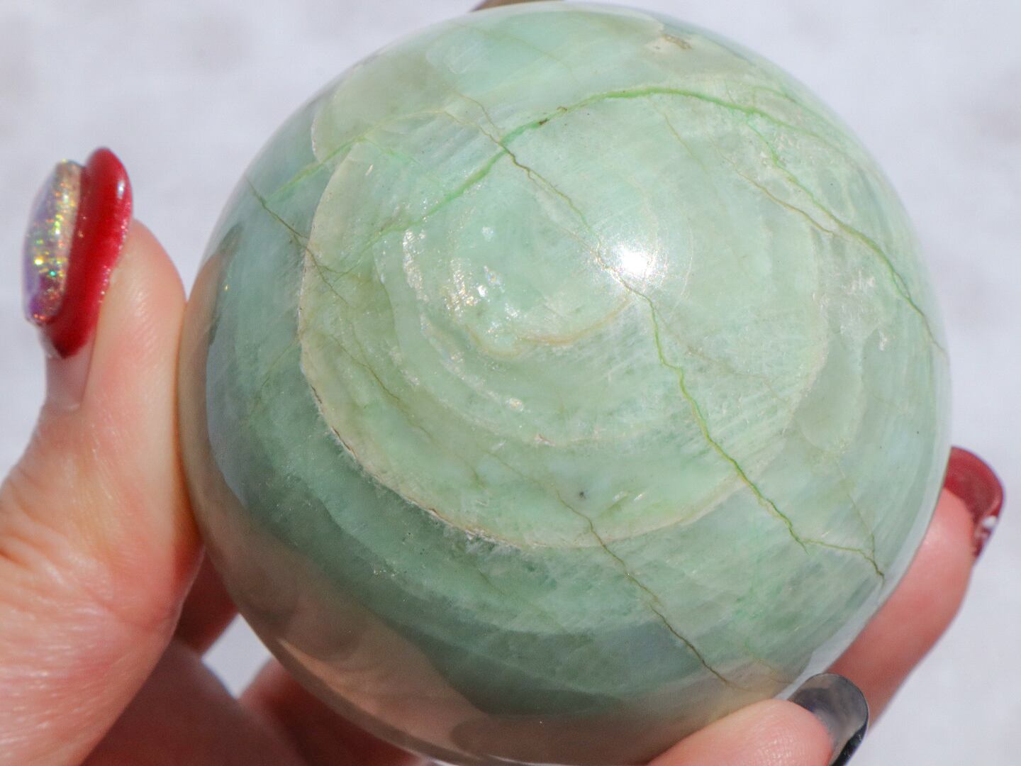 色合いは、パステルイエロー、パステルグリーン、ミントグリーン、淡く美しい印象の石です。ニッケルの含有量が多くなると濃い緑色になります✨
