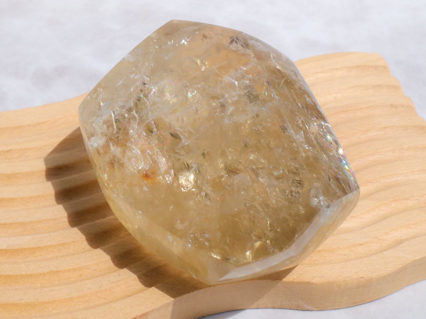 基本的にはつるっとした、まるっこいフリーフォームです✨表面には細かな石目が多数ありますし、内包物が見える箇所もありますが、何と言ってもそれらを覆い隠すようなバキバキのレインボーです✨✨