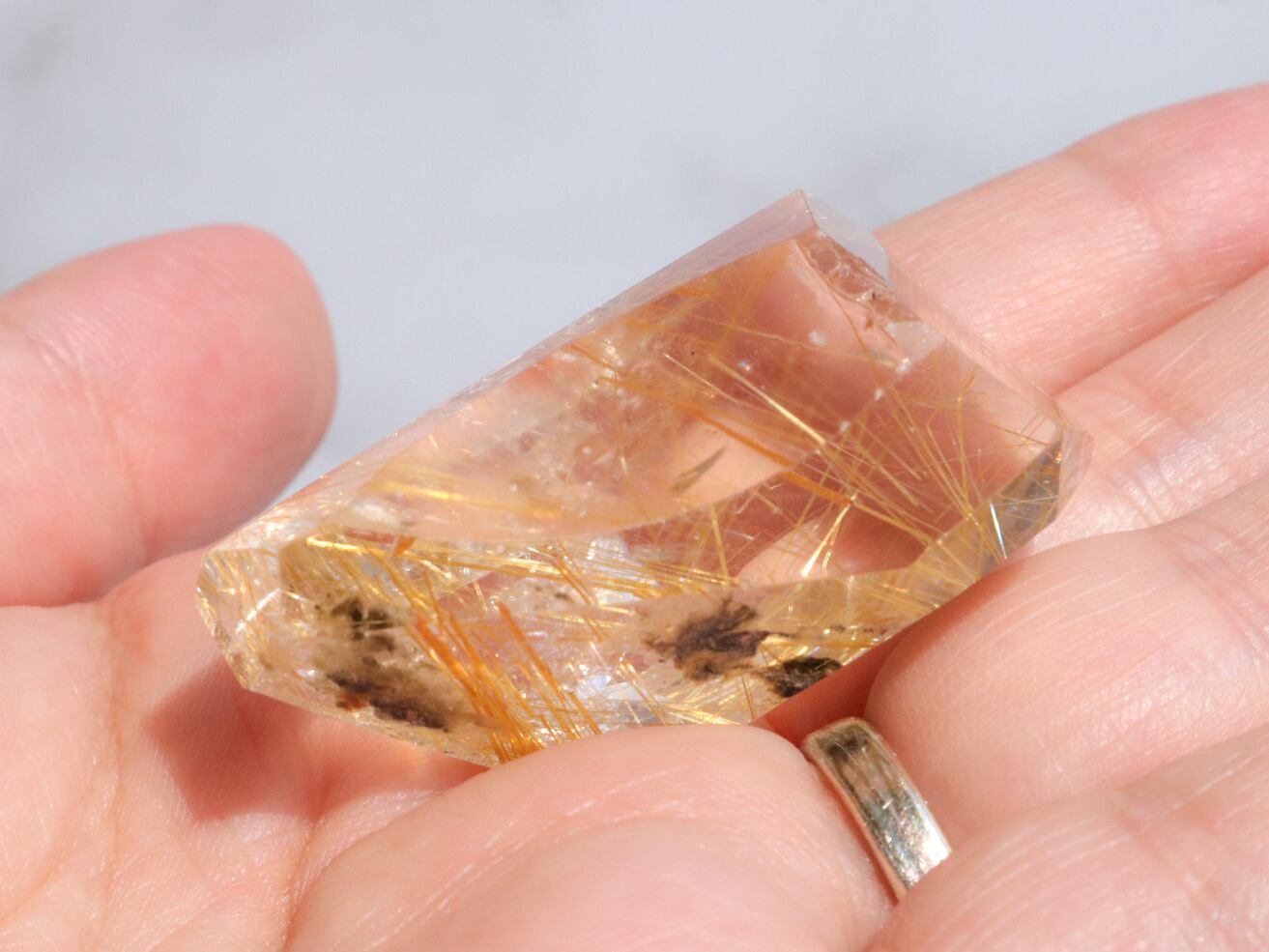 このこは、とても透明度が良いクォーツの中に、艶々のゴールドルチルがたくさん確認出来ます✨✨✨