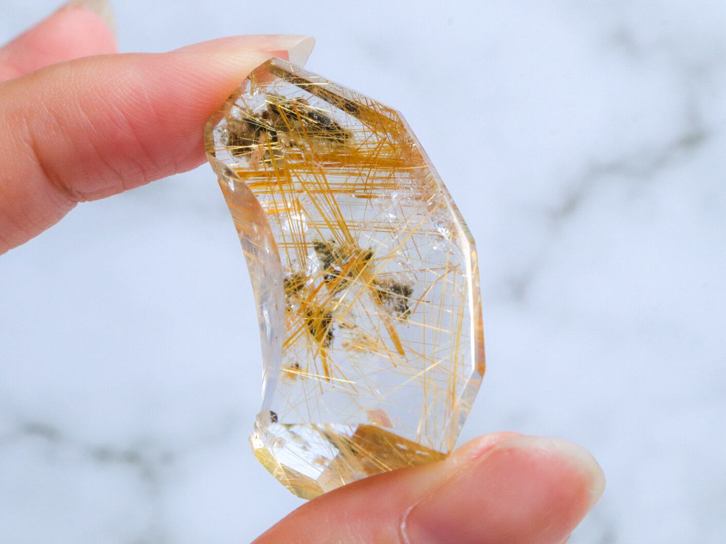 ここまで透明度があってゴールドルチルがバキバキだと、金運のお守りとしてはかなり心強いと思います♪効果は証明されたものではありませんが、ライブ配信や、マルシェにてお繋ぎさせて頂いた方々からは、かなりのお人数、効果を実感されたお声を頂戴しております♪