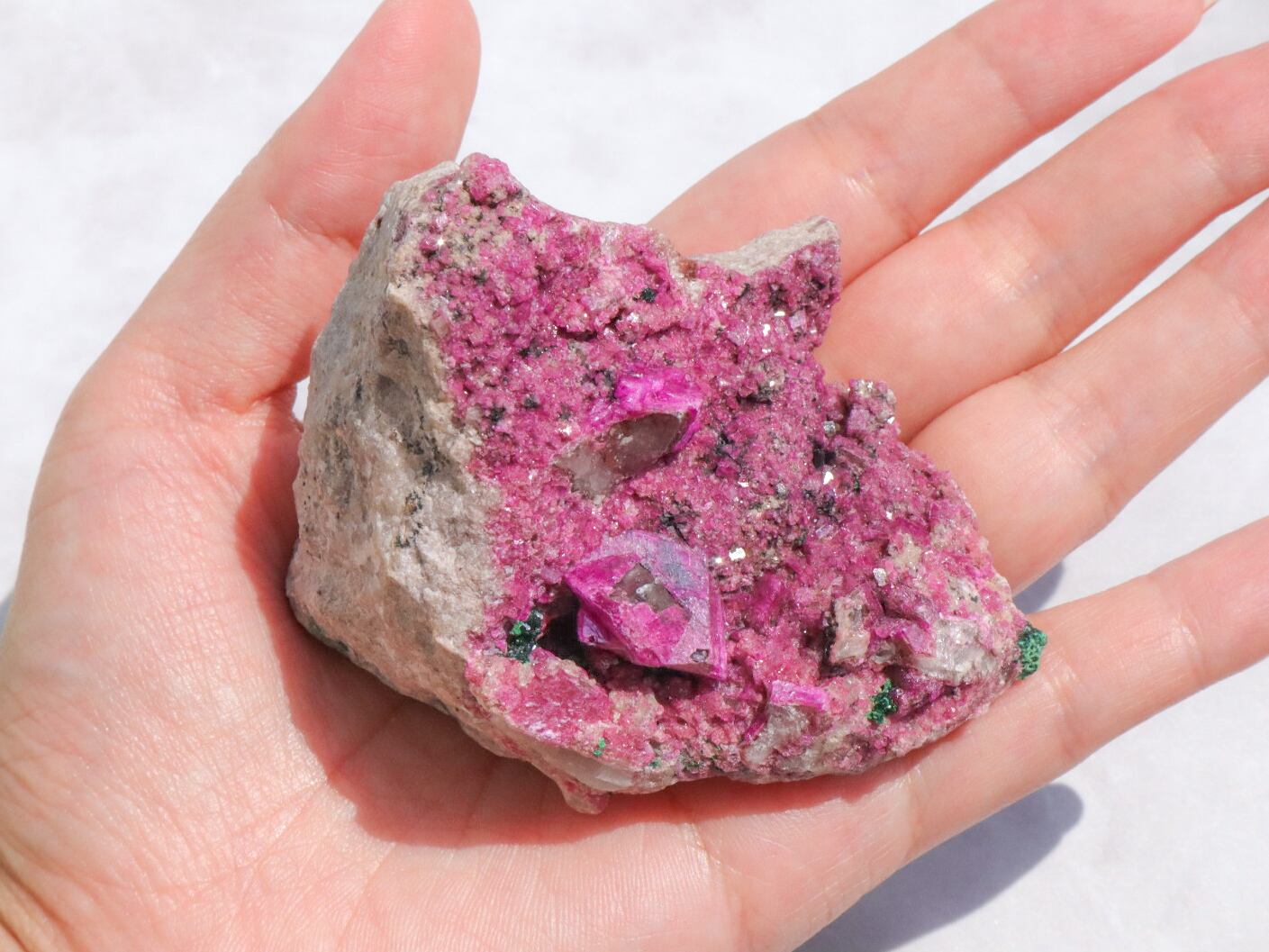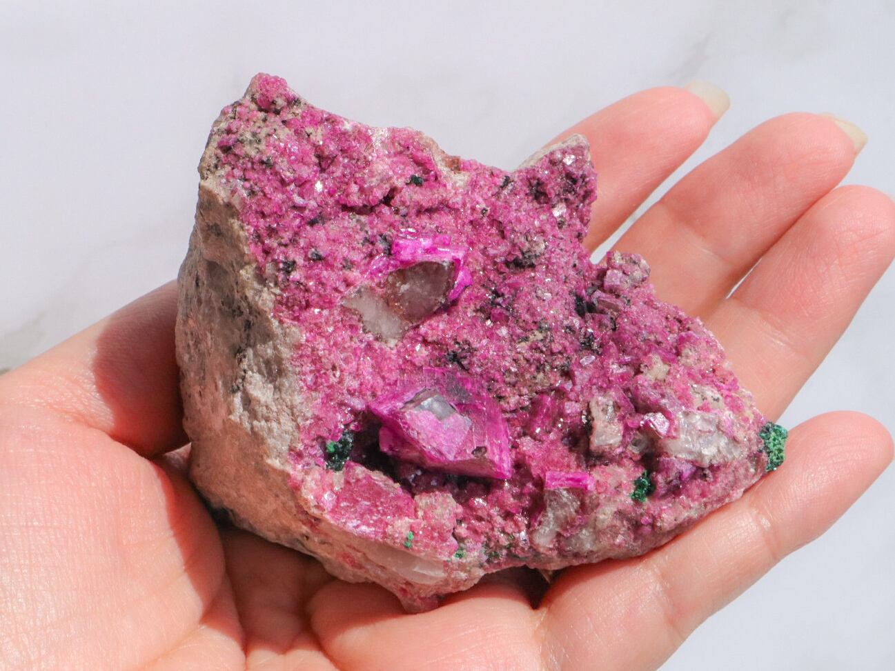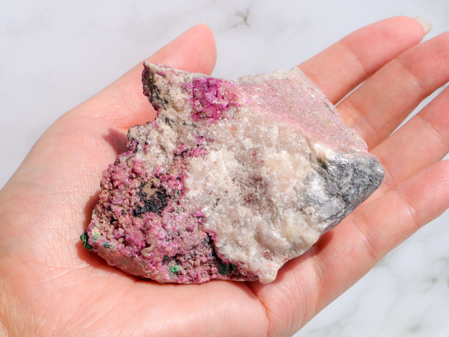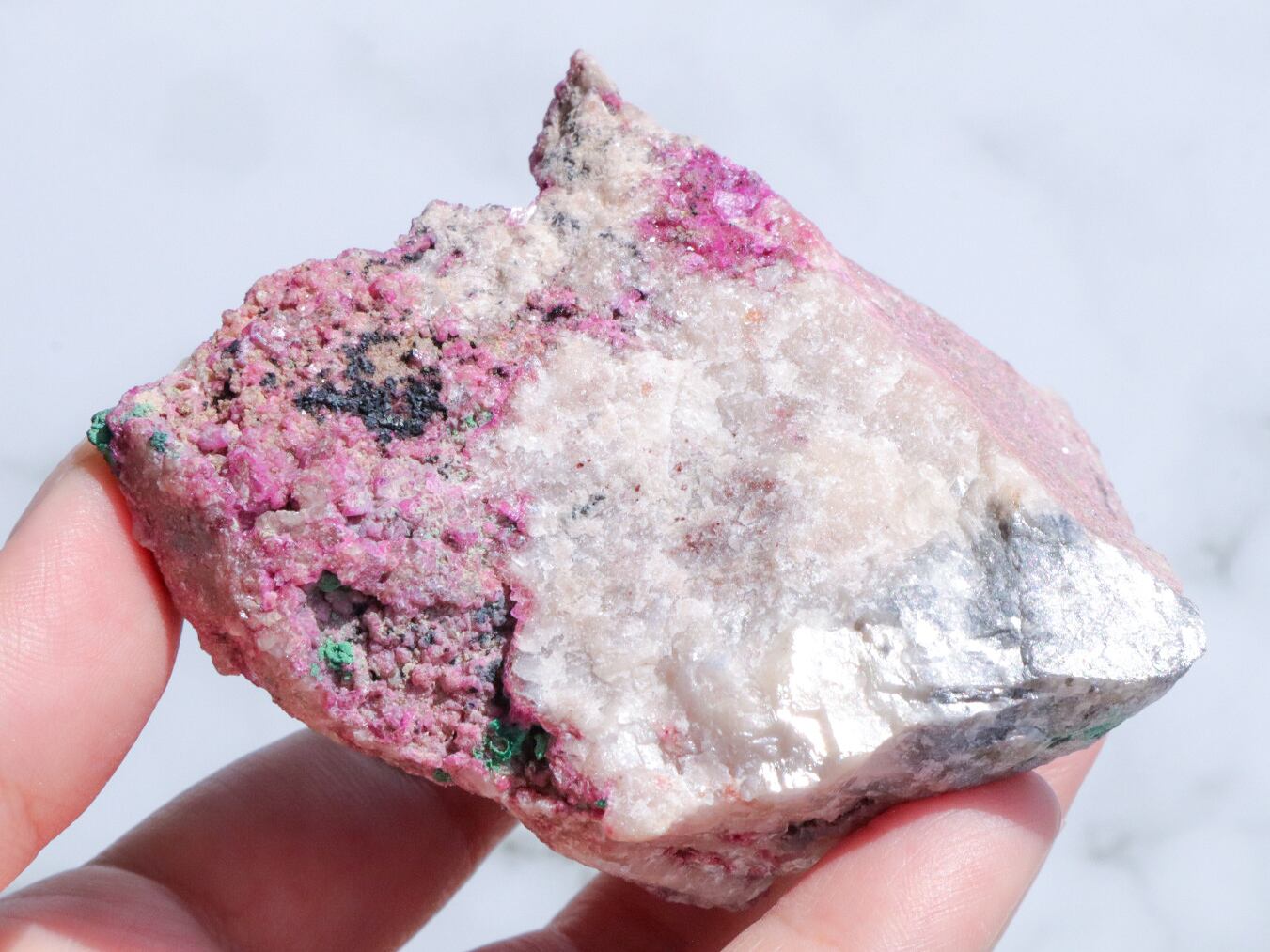 コンゴ産の特徴はコバルト特有なビビットなピンク色で、きめ細やかな結晶はキラキラと美しい輝きを見せてくれます✨全体的にもカルサイト独特のキラキラ反射で美しく楽しませてくれます✨