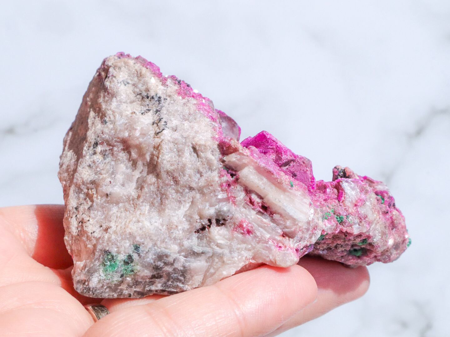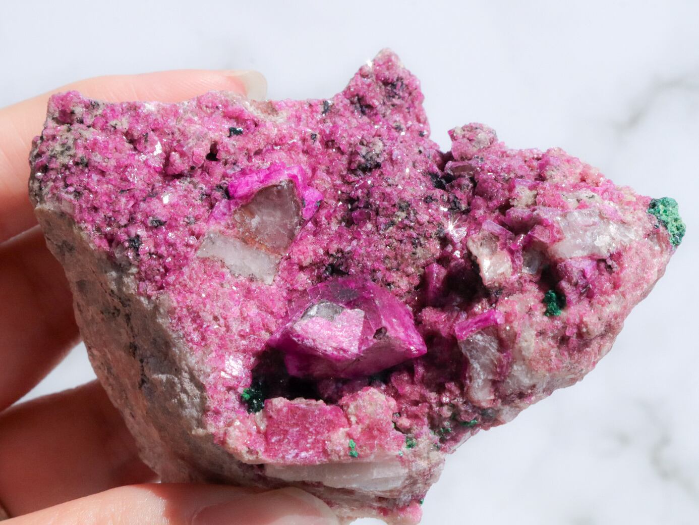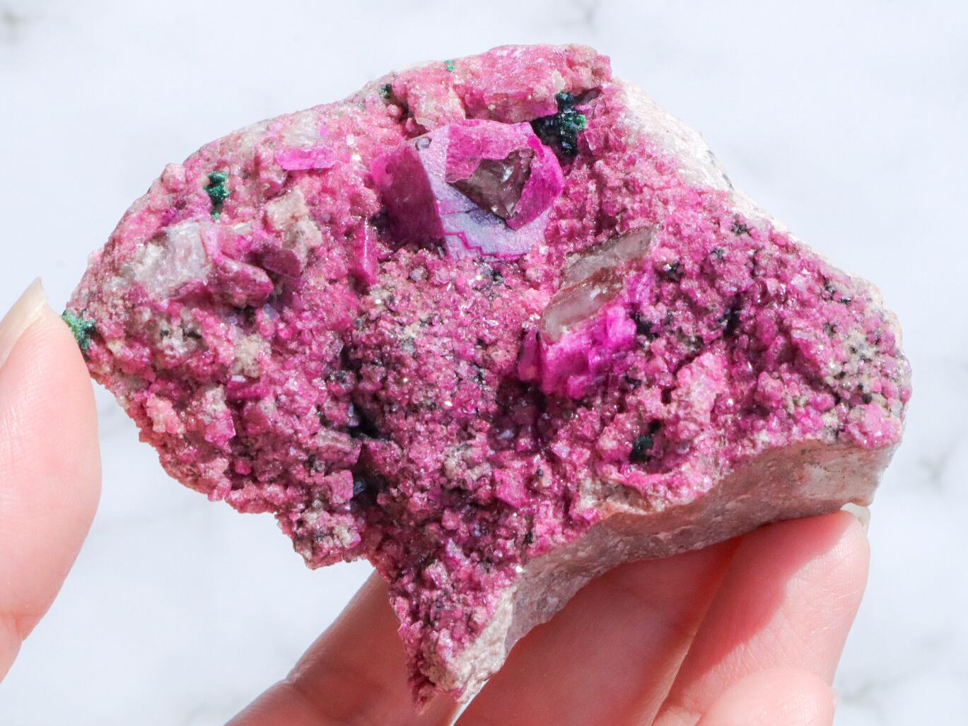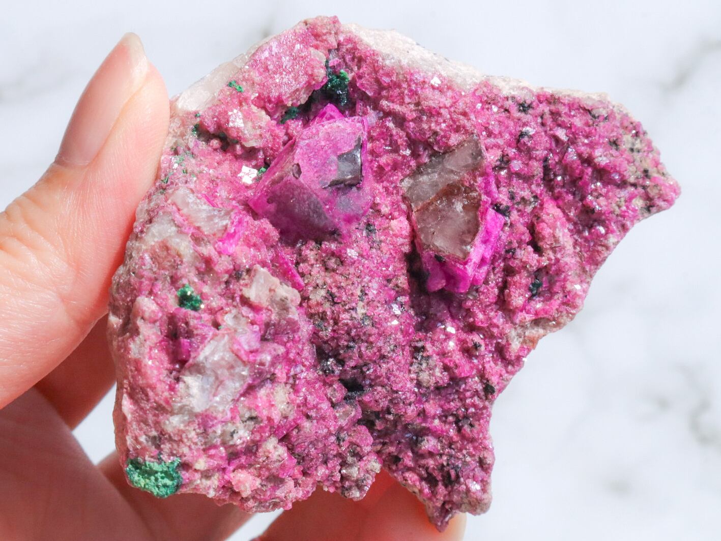 コンゴ産の特徴はコバルト特有なビビットなピンク色で、きめ細やかな結晶はキラキラと美しい輝きを見せてくれます✨全体的にもカルサイト独特のキラキラ反射で美しく楽しませてくれます✨