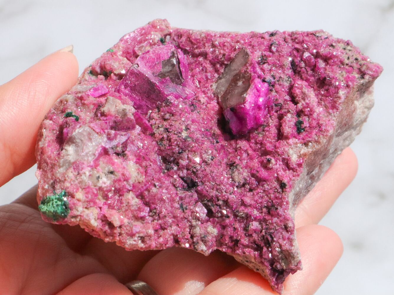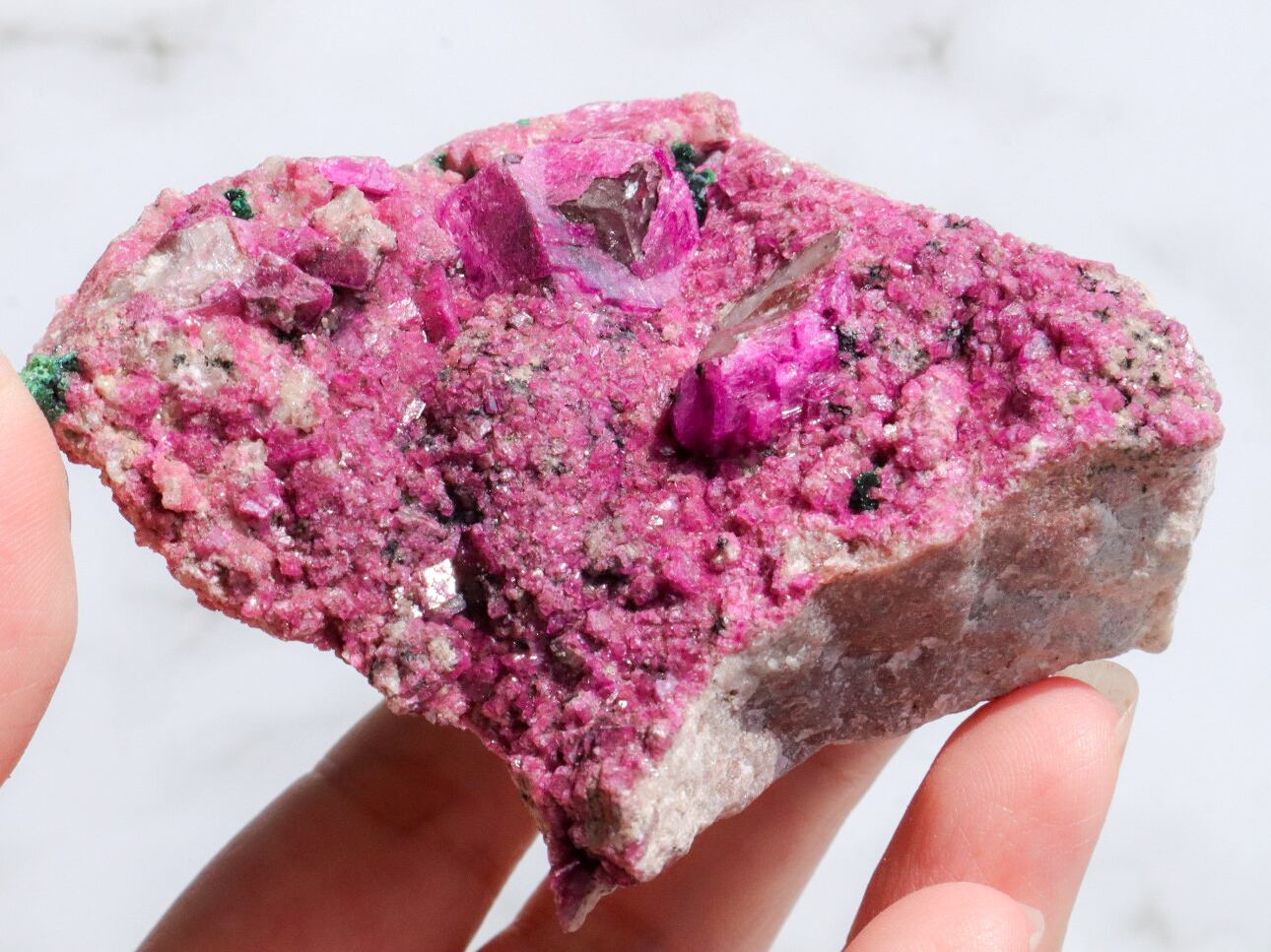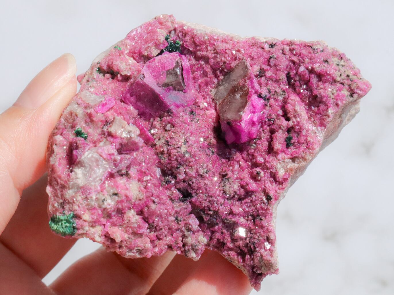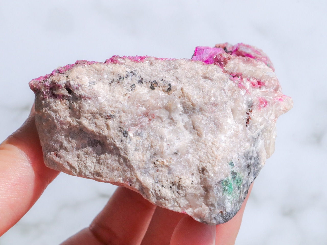 コンゴ産の特徴はコバルト特有なビビットなピンク色で、きめ細やかな結晶はキラキラと美しい輝きを見せてくれます✨全体的にもカルサイト独特のキラキラ反射で美しく楽しませてくれます✨
