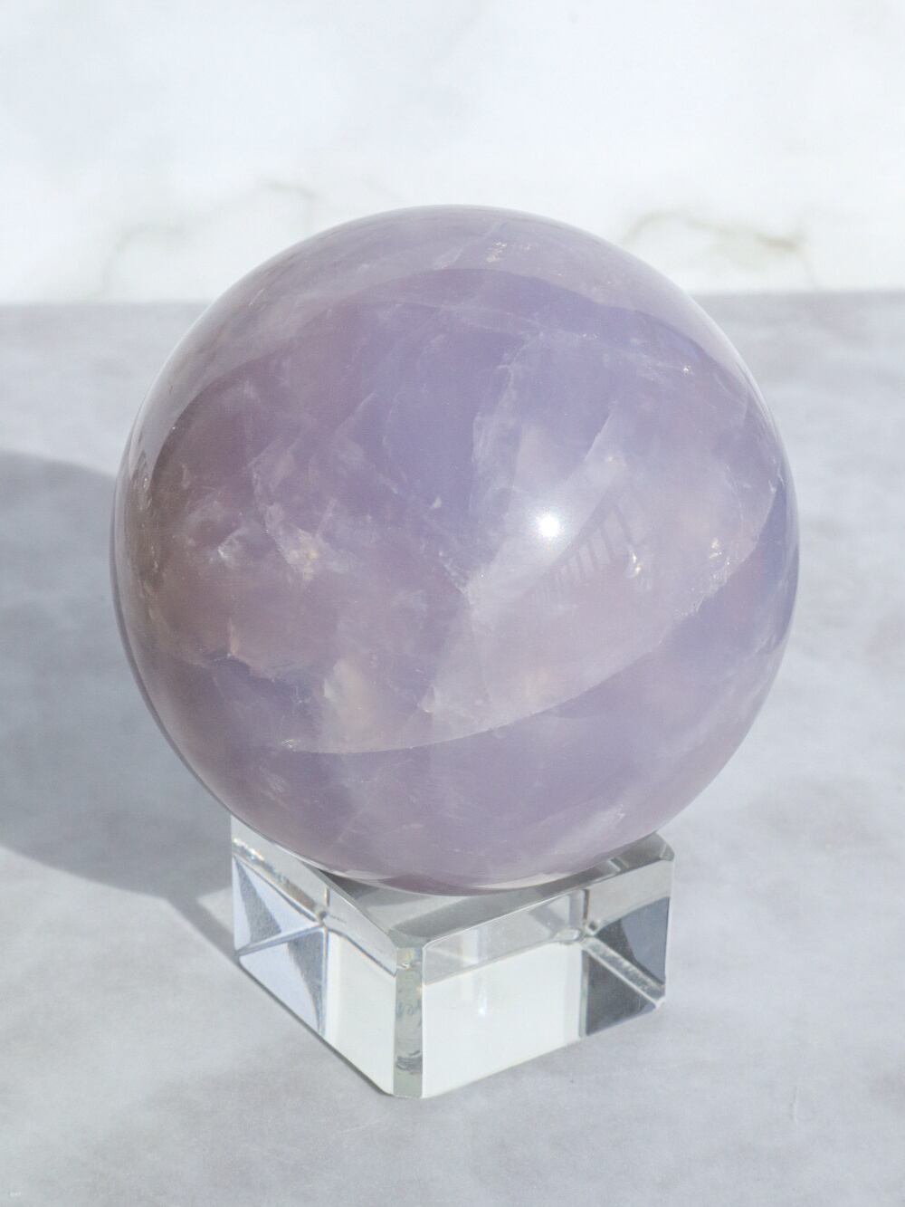 個人的に大好きなブルーローズのスフィアさん♡またまた再入荷です♡♡♡✨とてもブルーみが強い気がします✨透明度もあり、その中には虹もちりばめられています♡透明度の高い場所を覗き込むと、奥深くからブルーを感じる場所がとりわけ美しいです✨これがブルーローズの由縁なんだなと感じさせられます✨ブルーがあることで、ローズクォーツの愛とはまた違った良さの深い慈愛のエネルギーに包まれています✨すこしでも多くの方にブルーローズの魅力を知って頂きたく、再入荷致しました✨✨