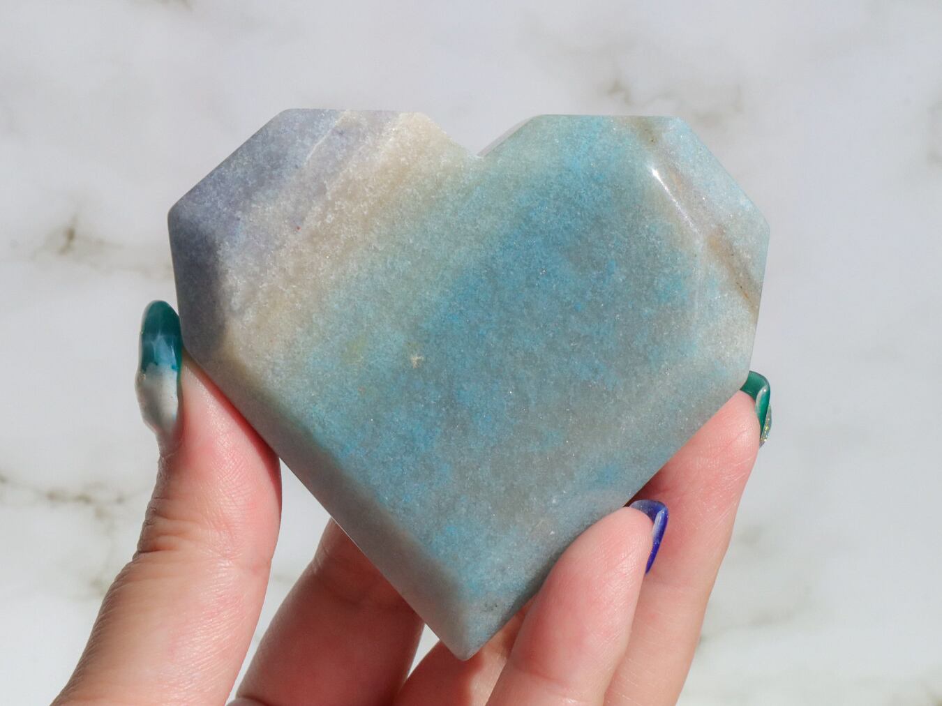 淡い水色やグレーや白で爽やかな雰囲気を醸し出すトロレアイトがハートの宝石カットされた♡無敵に可愛いこたちをご紹介します♡♡♡前回は小さめのこたちでしたが、今回は重量のあるBIGハートさんたちです♡動画で見てもらうと分かりやすいですが、日の光の下で見るとキラキラしています✨✨