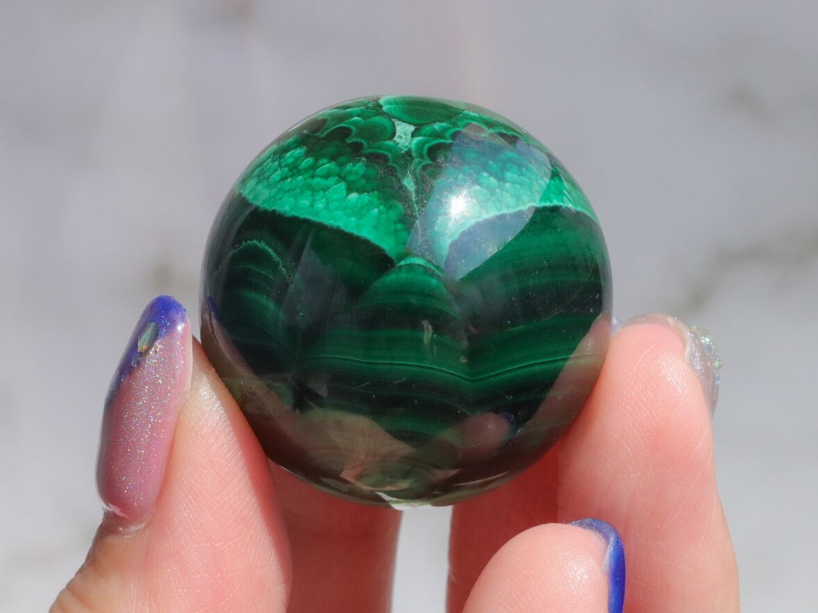 マラカイトは、その鮮やかな緑色と独特の模様が特徴の天然石で、その模様がまるで孔雀の羽を思わせることから、和名を孔雀石(くじゃくいし)と言います✨