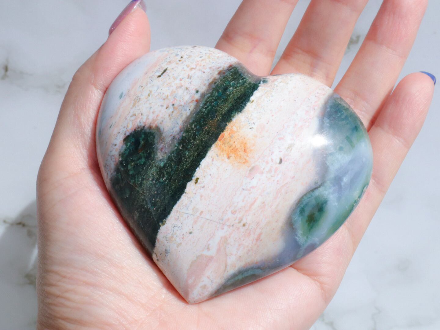 オーシャンジャスパーには高いヒーリング効果があると言われますし、大地の象徴を意味する天然石と言われています。そのため、精神的な安心感や安定感をもたらし、悩みや問題の解決へと導いてくれます✨また、頭を冷静にする力があると信じられてきました。