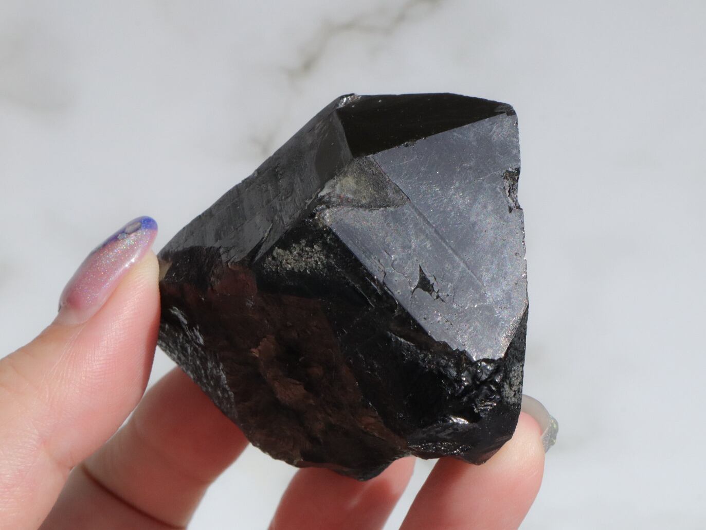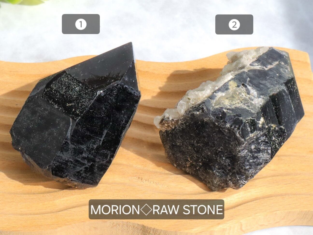 モリオンは和名を黒水晶と言い、文字通り光を通さないほど真っ黒な水晶です✨強力な黒水晶に抵抗を感じる方もいらっしゃるかと思うのですが、このこは、こぶりなので、黒水晶初心者の方にもとてもオススメです✨形もカッコイイので、さりげなくインテリアの中に取り入れて頂くことも可能かと思います♪