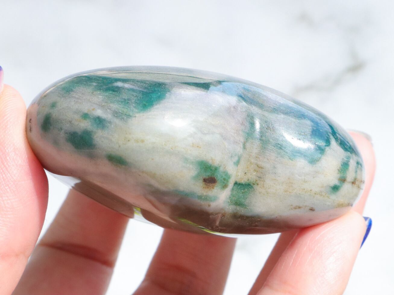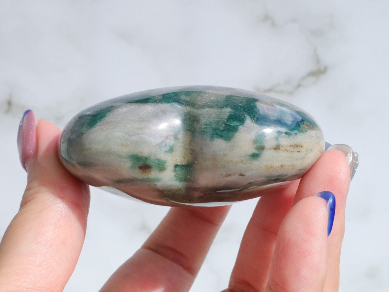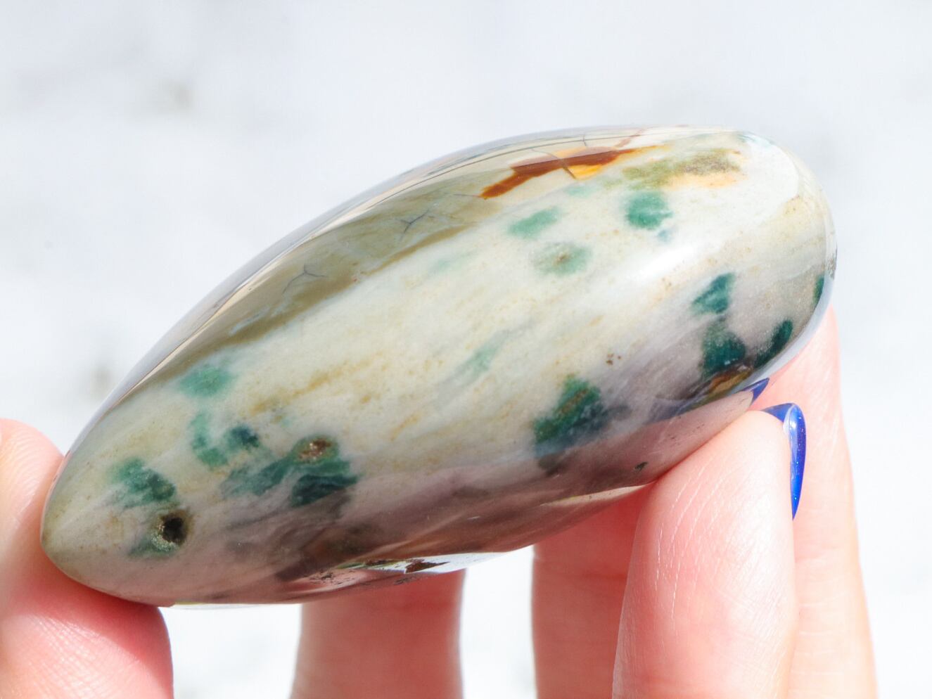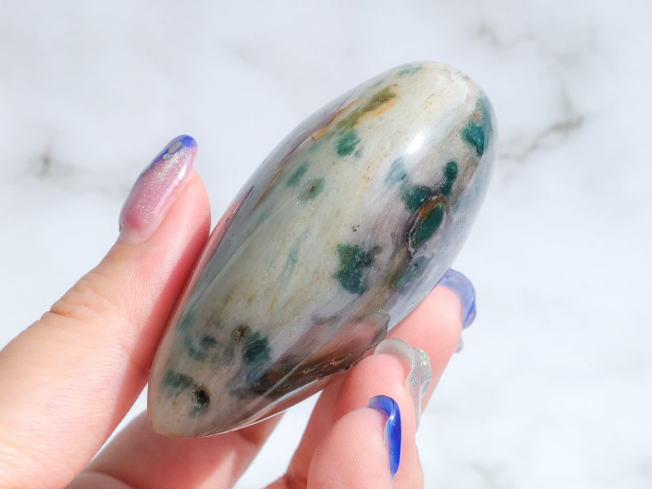 このこは片面がオーシャンジャスパーで、もう片面がポリクロームジャスパーになった珍しいこです♡太古からの生命が息づく、マダガスカルならではの神秘をここに感じることが出来ます✨✨