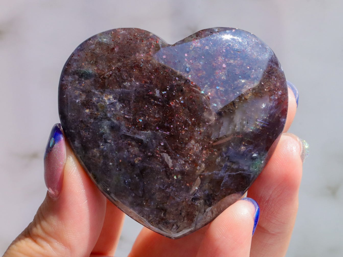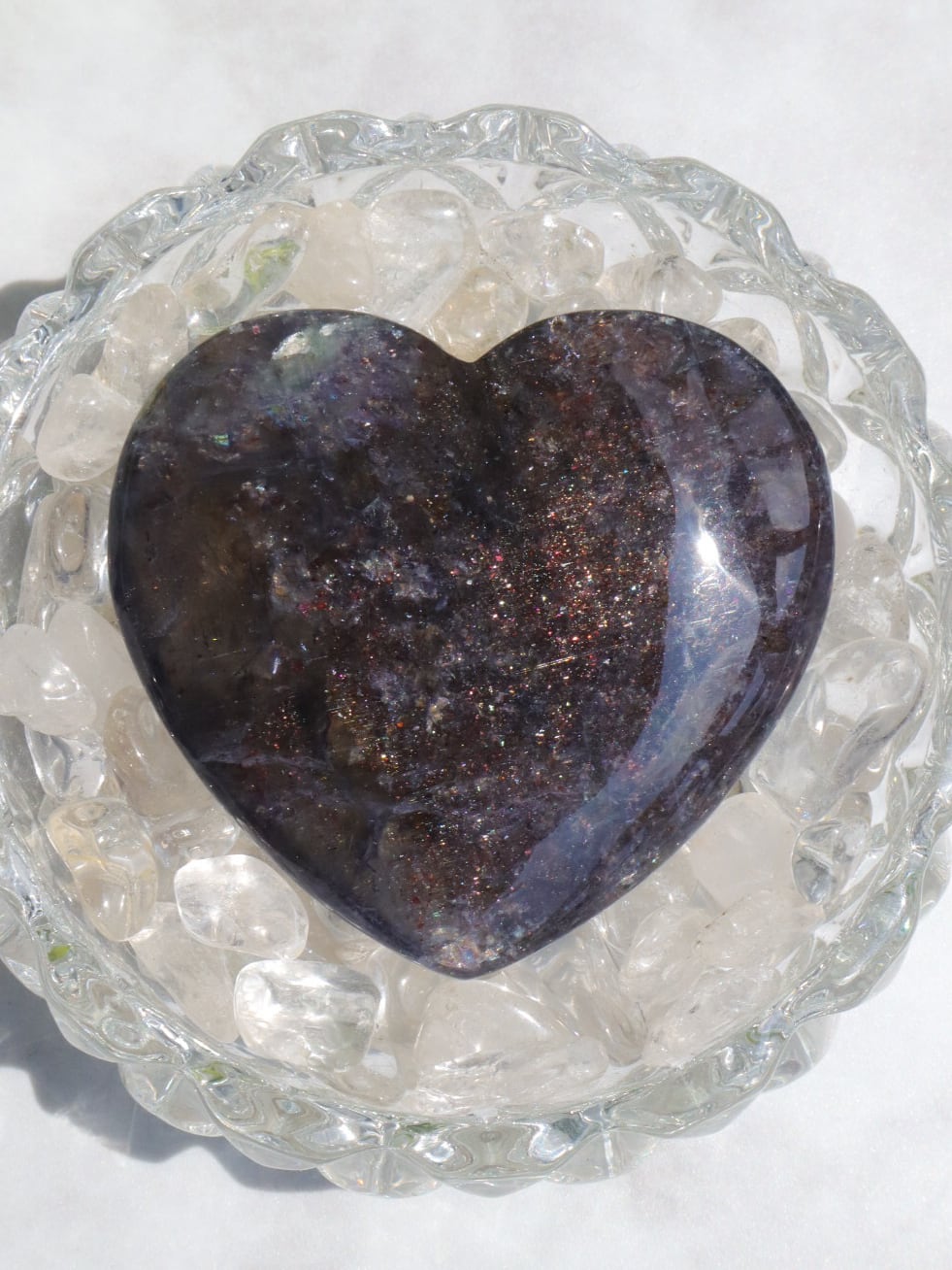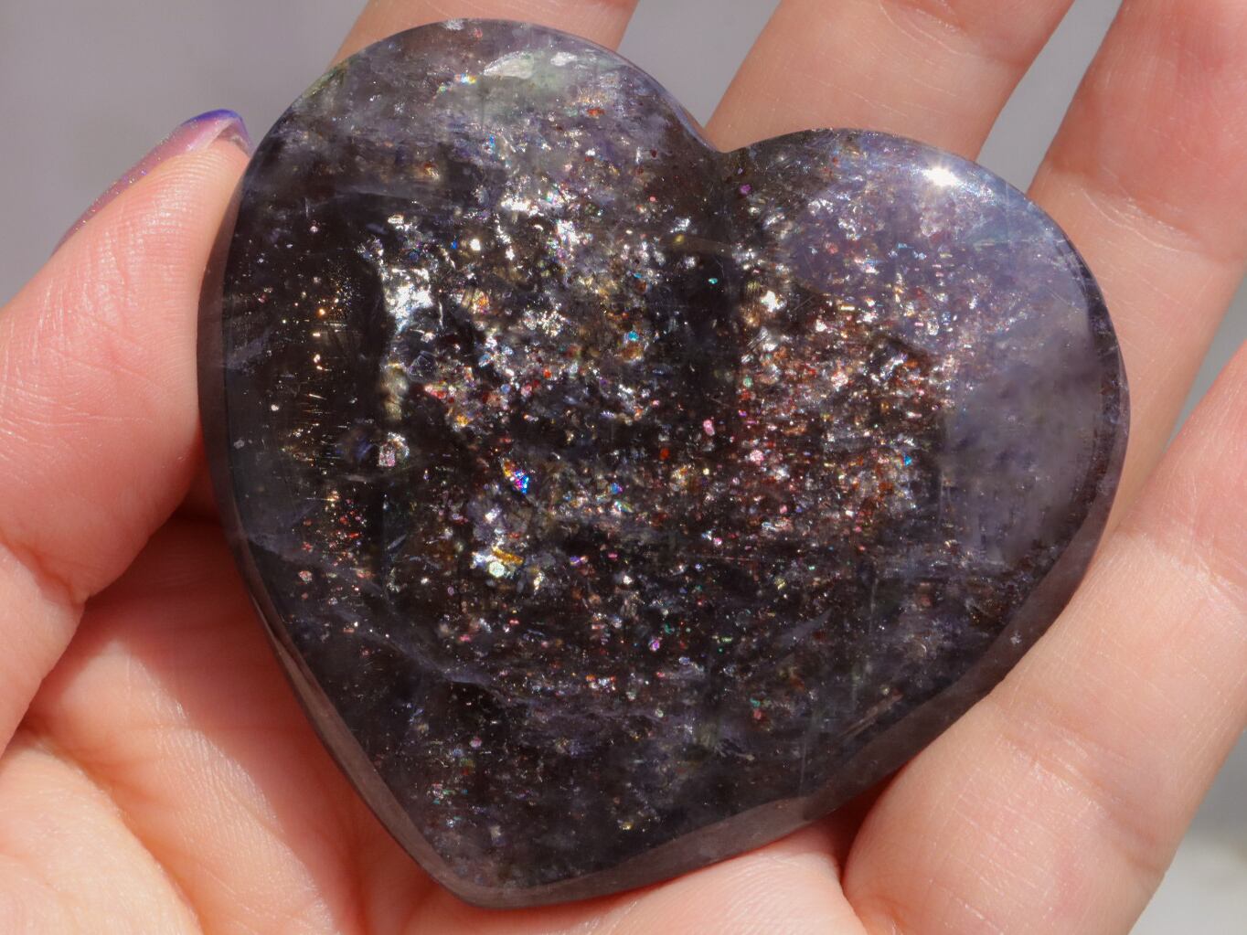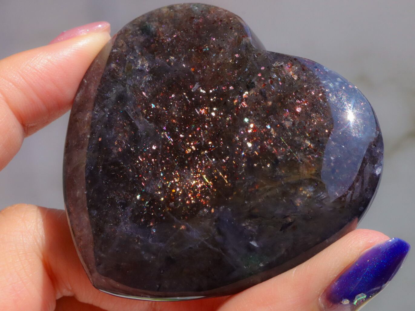 深い深いインディゴブルーに虹色のラメのように輝くアベンチュレッセンスが、神秘的なブラッドショットアイオライト✨✨このこは珍しく透明度があり、ブルーがかなり深めでブラックに近いので、より暖色系のアベンチュレッセンスが映えて、まるで天の川銀河のように大小様々な輝きを見ることが出来ます✨✨