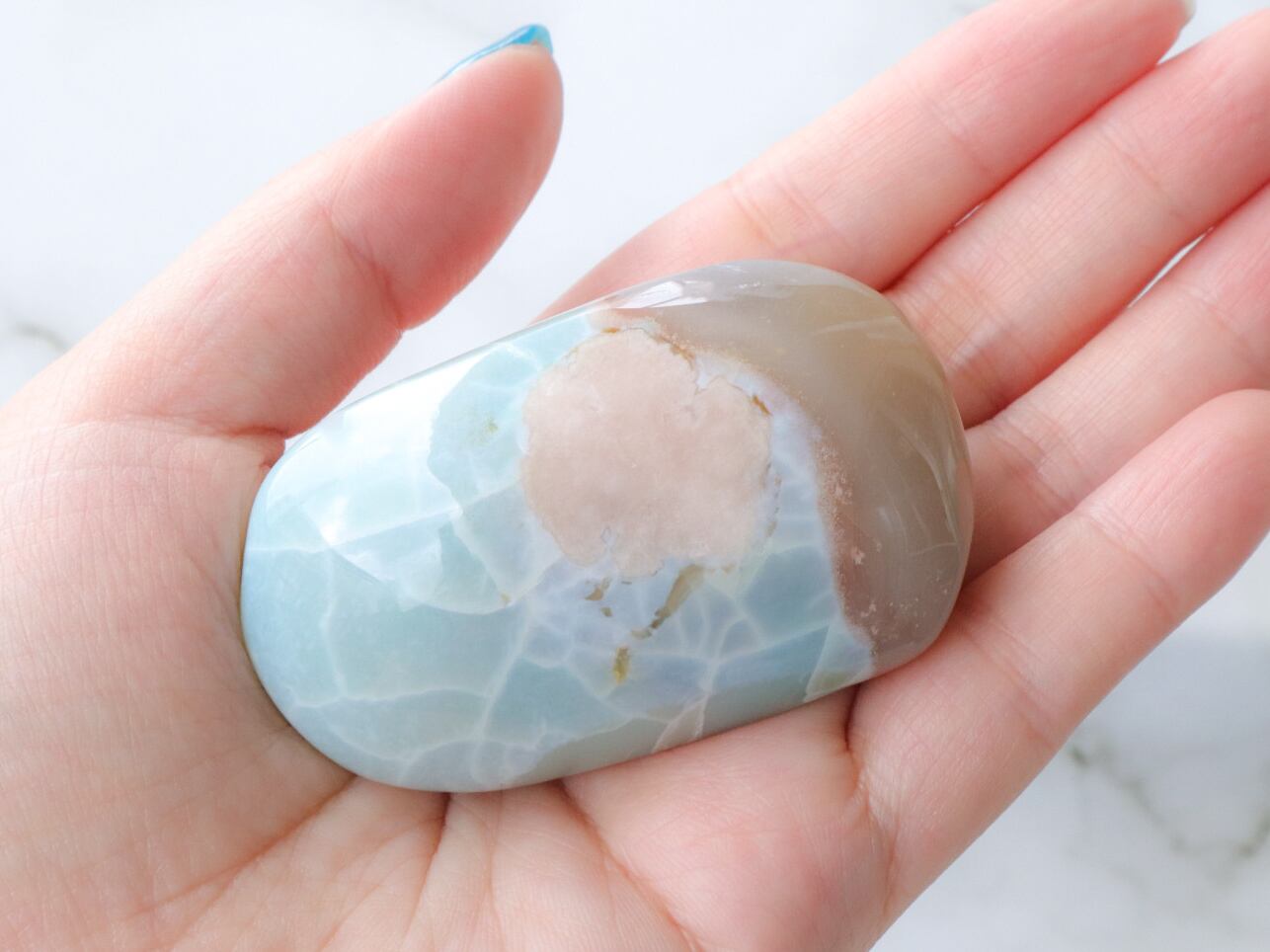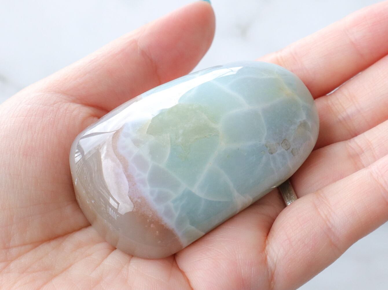 桜瑪瑙の中でもとても希少で、人気の高いグリーン桜瑪瑙✨のパームのご紹介です♡