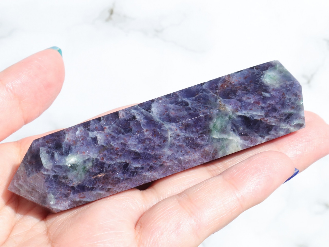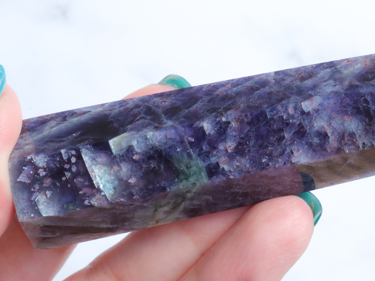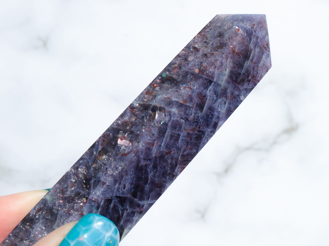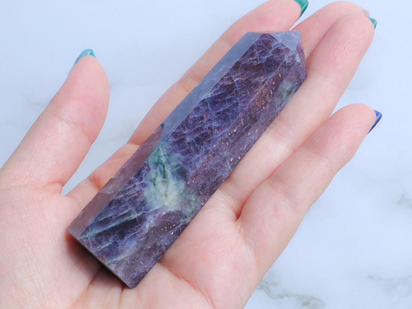 とても品質がよく色も綺麗で、アベンチュレッセンスもたくさん出て美しいので、お値段はしますが、同じ輝きはなく、唯一無二のあなたの貴重なコレクションとなるかと思います✨ポイント型は初めて出しますが、立てて置いても寝かせて置いてもとっても美しいです♡(ㅅ´ ˘ `)