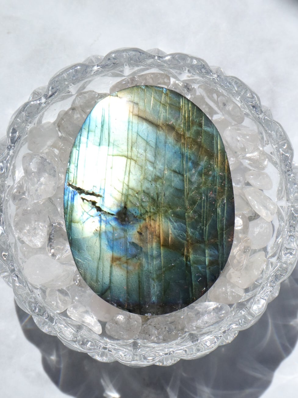 ラブラドライトは、独特の存在感を醸し出す神秘的な魅力の天然石で、宇宙とつながり、インスピレーションを受け取る石とも言われます♡