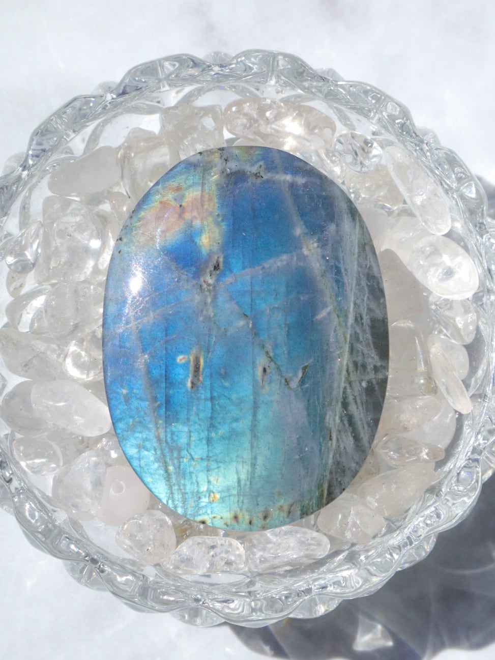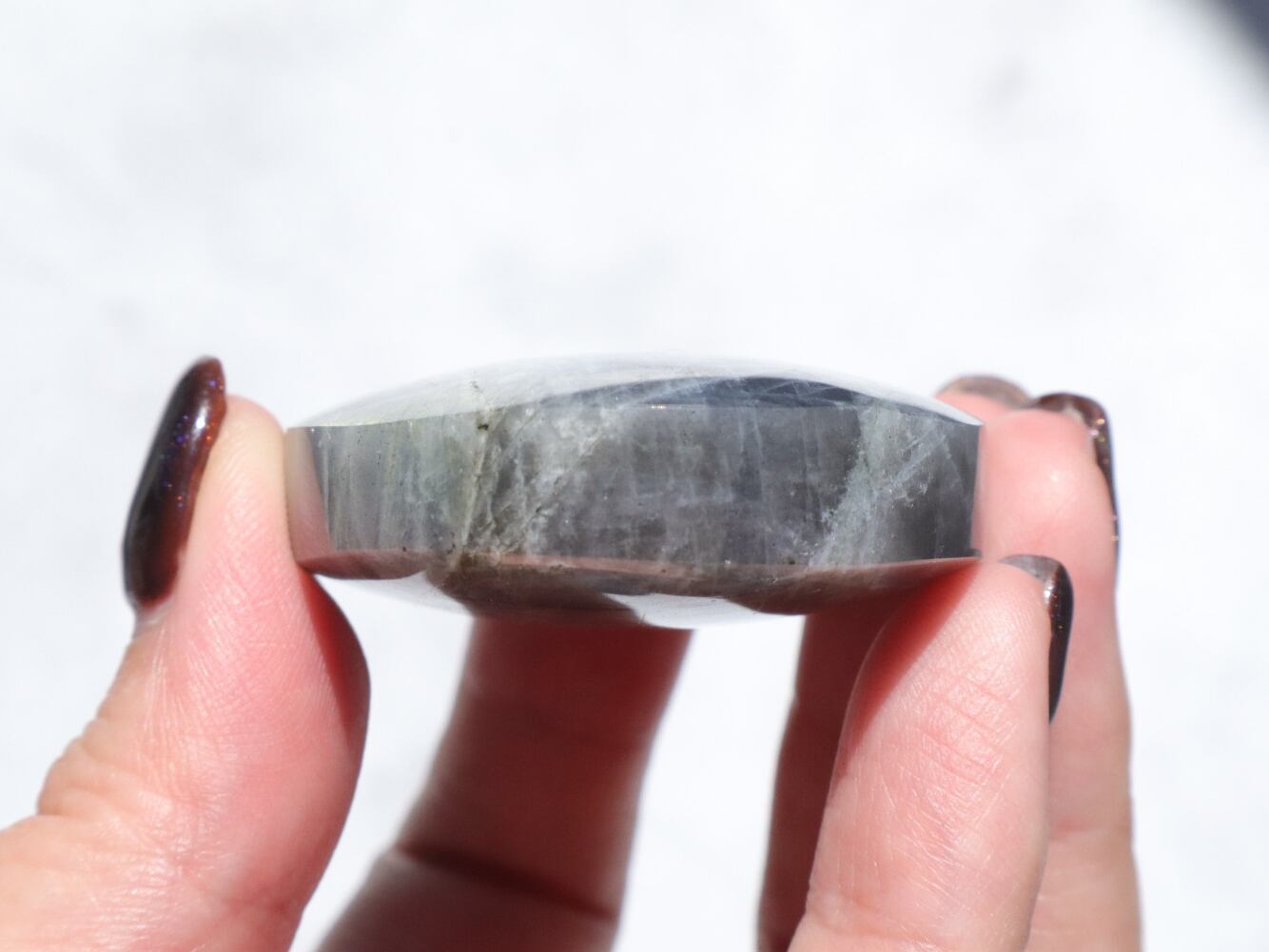 このこは、写真の通り美しいブルーのグラデーションのようなシラーが特徴的なラブラドライトさんです♡