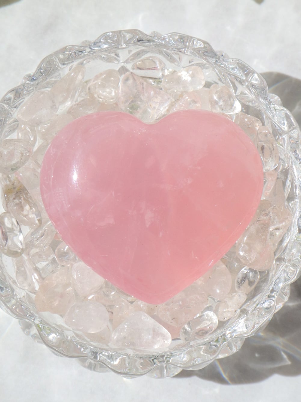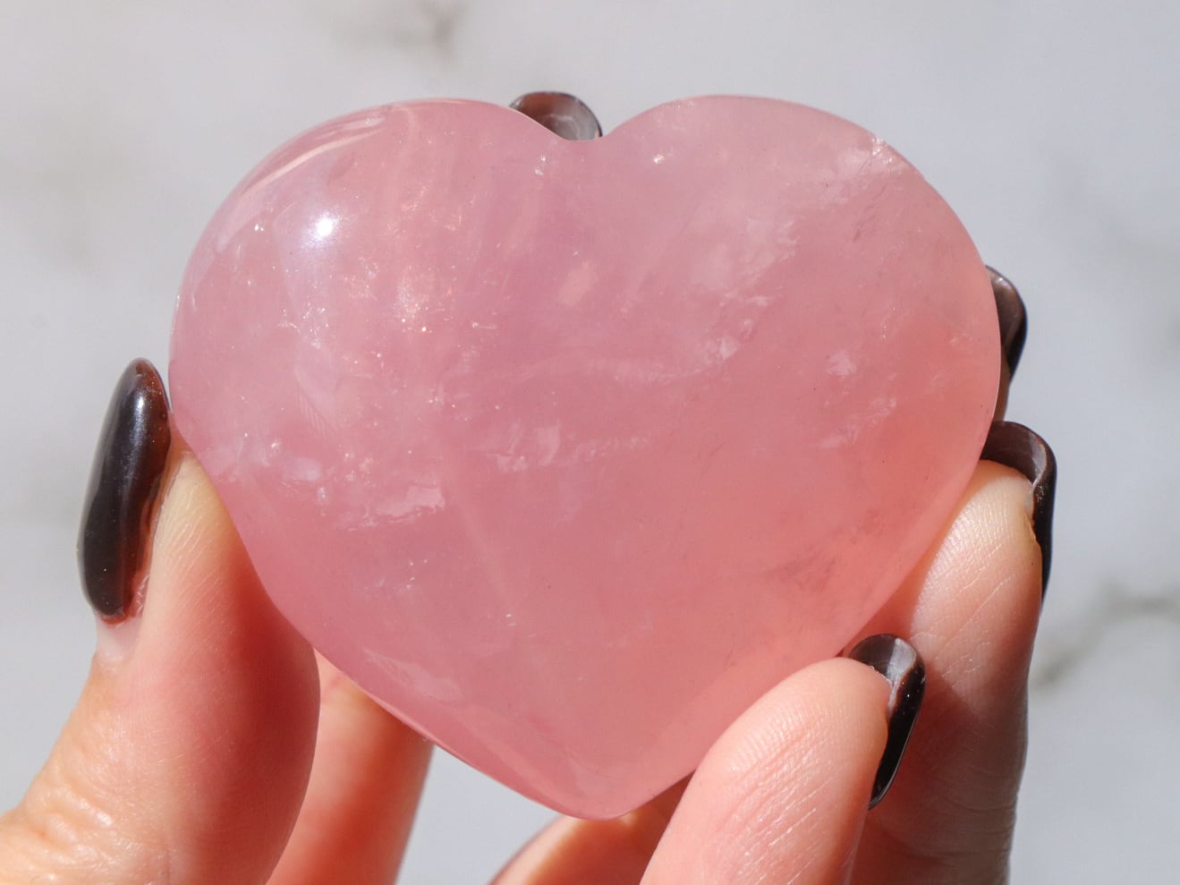 ぷるぷるローズクォーツの可愛いハートさんです♡スター線がどこまでも追いかけて来ます♪太陽光や、強い光の元で見ると全体の美しさが際立ちます♡ハートの真ん中辺りには虹が現れ素敵に輝きます✨✨色も丸みのあるふっくらした形も、ただただ可愛いローズハートさん(ㅅ˘˘)♡*.+゜つるつるして手のひらにもしっくり馴染んでくれますし、こぶりなので持ち歩きにもよきです♪