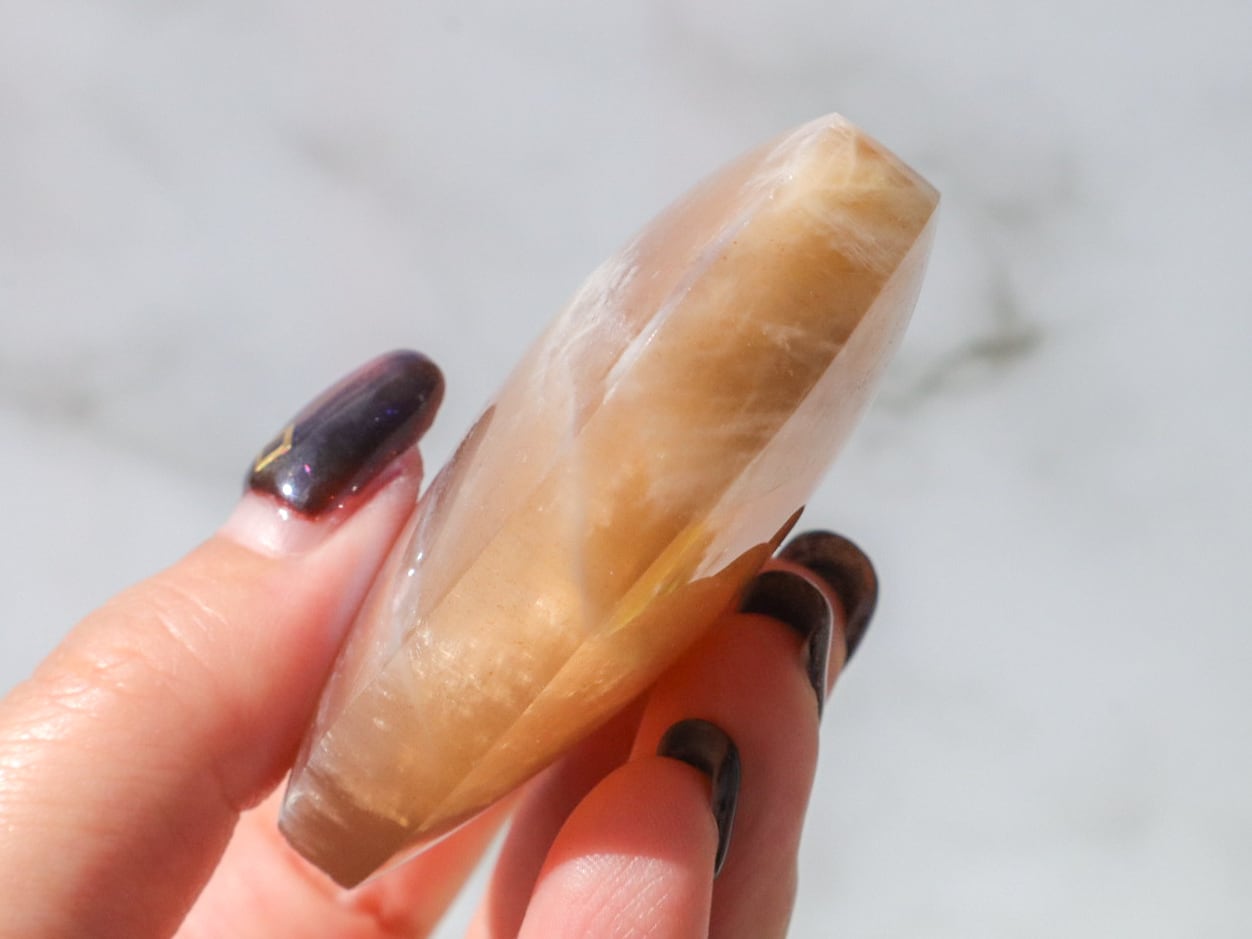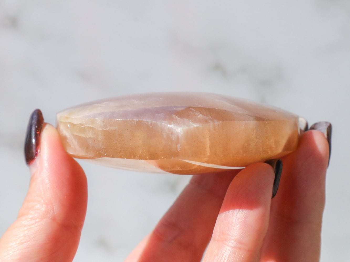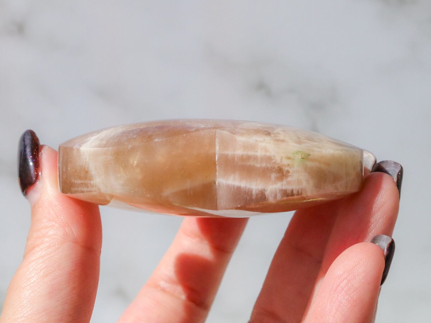 月のエネルギーを受容するムーンストーンは、思考を柔軟にし、感受性や直感力などの感性を高める効果があるとされています。同時に「聞く」能力を高め、不要な衝突も防いでくれます。