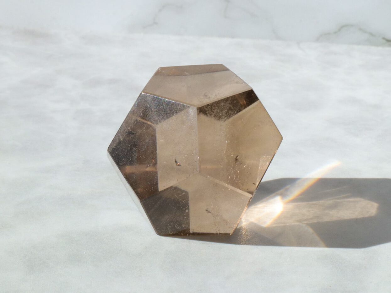 そんなプラトン立体の中の『ドデカヘドロン』という形をした、虹もキラつくスモーキークォーツさんのご紹介です✨