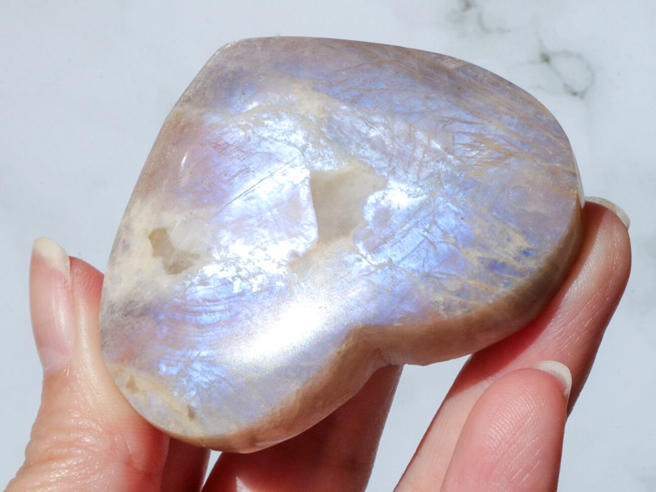 月のエネルギーを受容するムーンストーンは、思考を柔軟にし、感受性や直感力などの感性を高める効果があるとされています。同時に「聞く」能力を高め、不要な衝突も防いでくれます。