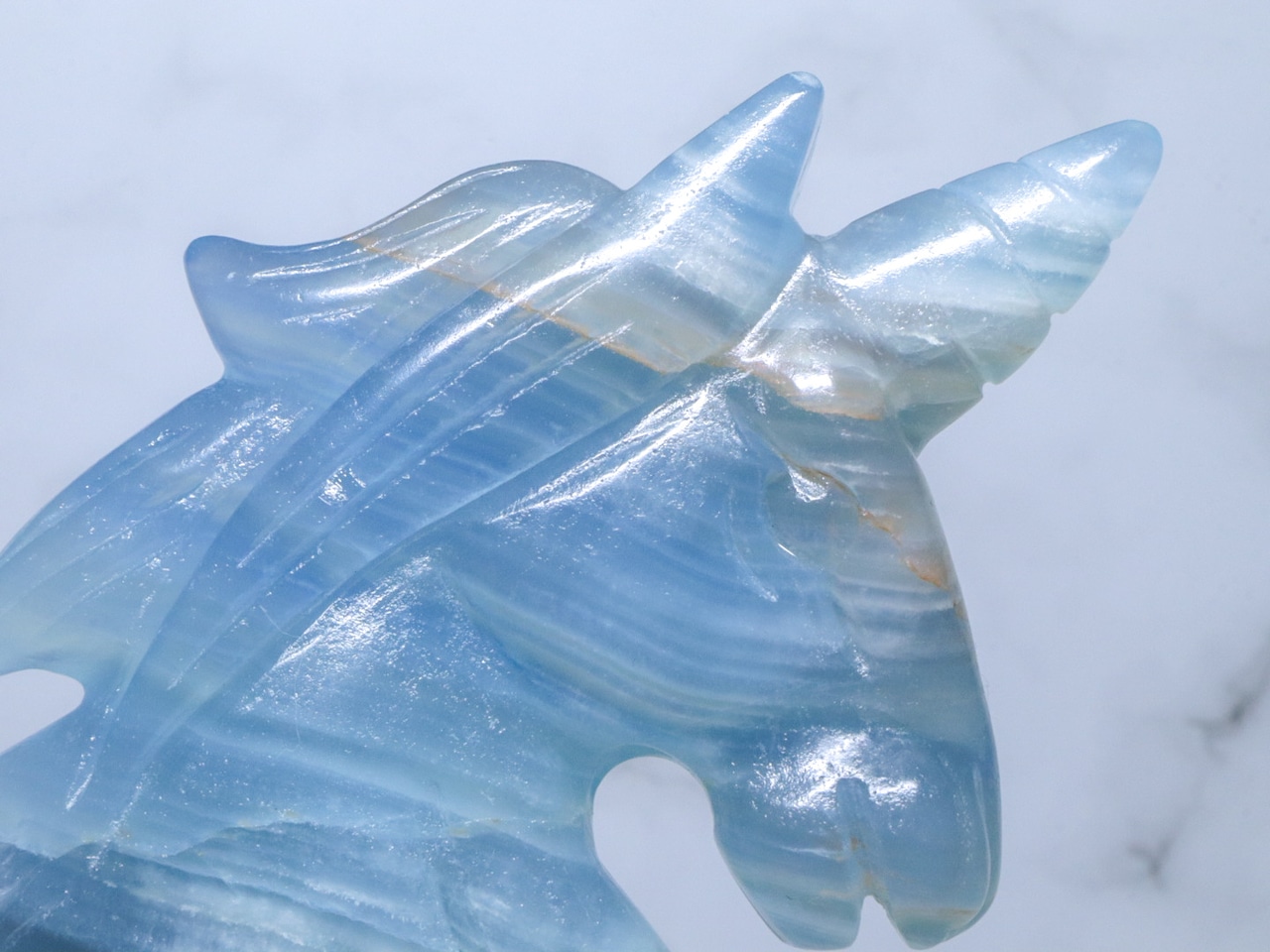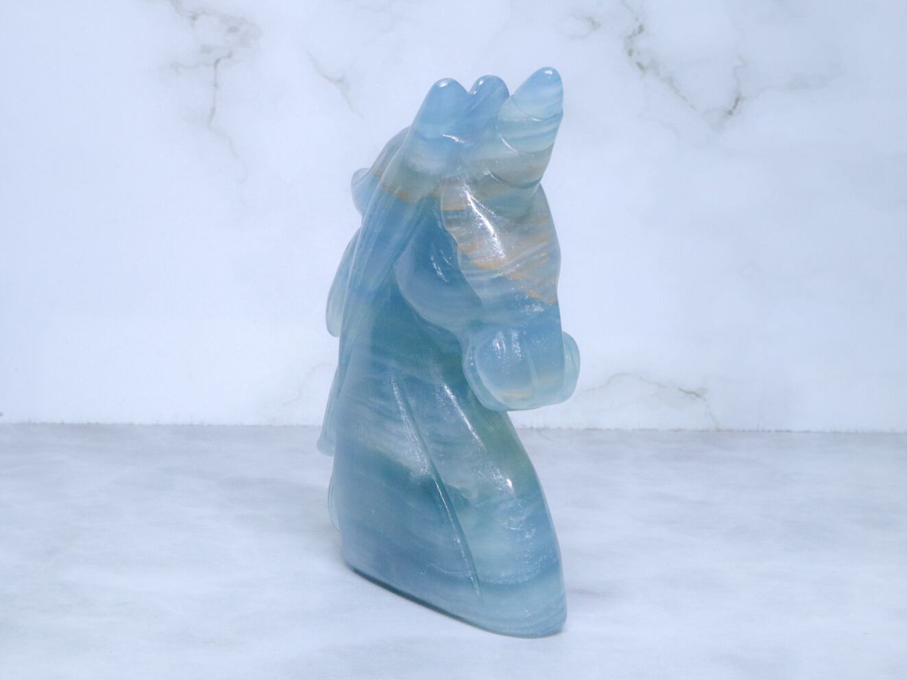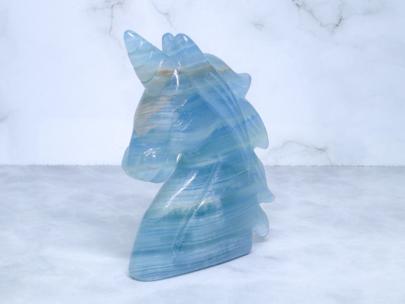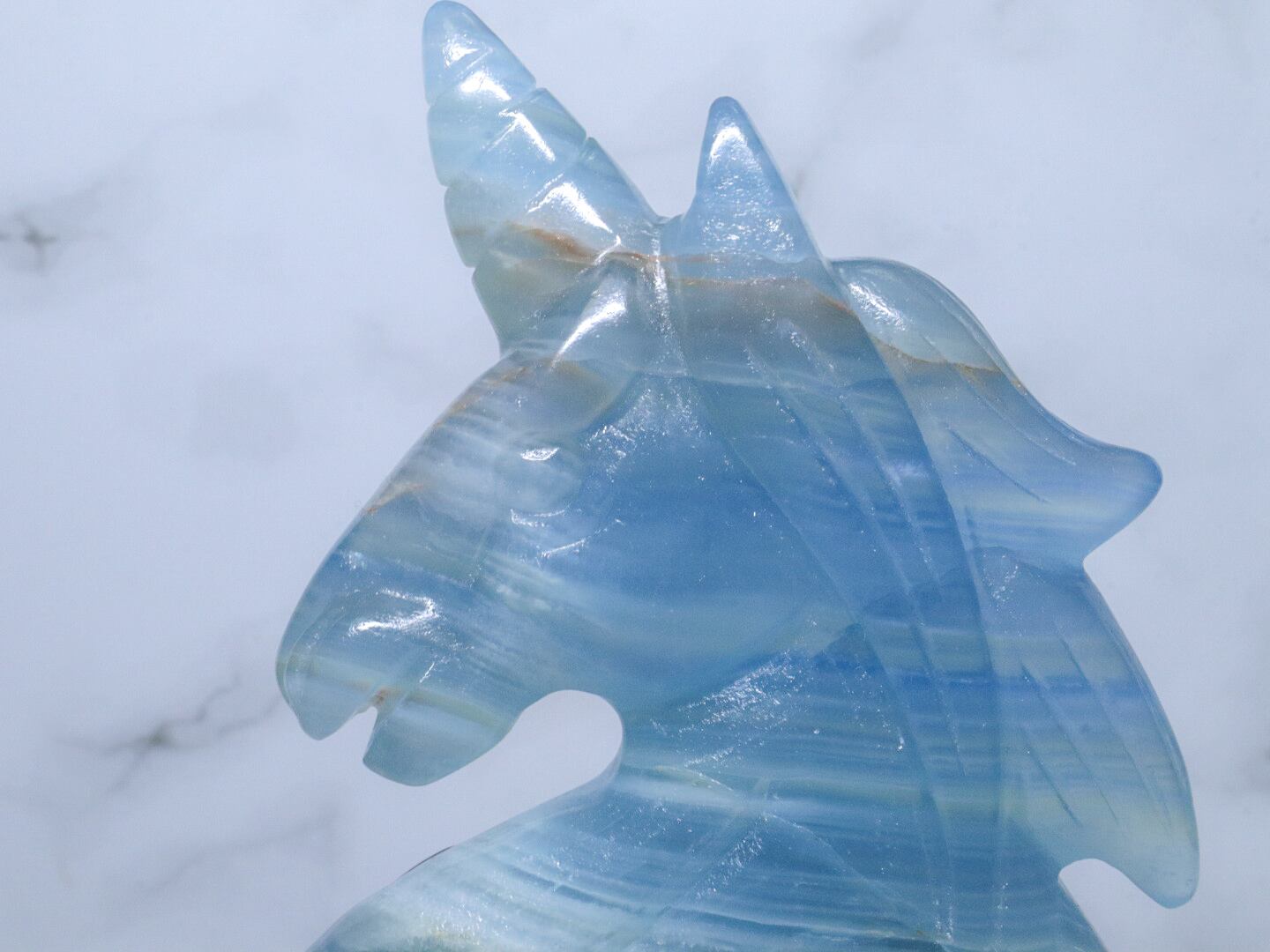 このこは、比較的濃いめのブルーをしています✨✨美しく清らかな水と砂とが混じり合ったような、海とも川とも見える模様をみせてくれるブルーオニキス✨午年に飾るのにはピッタリのユニコーンさんです✨つぶらな瞳がなんとも言えない、美しいお顔です♡性別はお迎え頂いた方の見え方で決まります♪是非動画も合わせてご覧頂き、お迎えをご検討ください♡