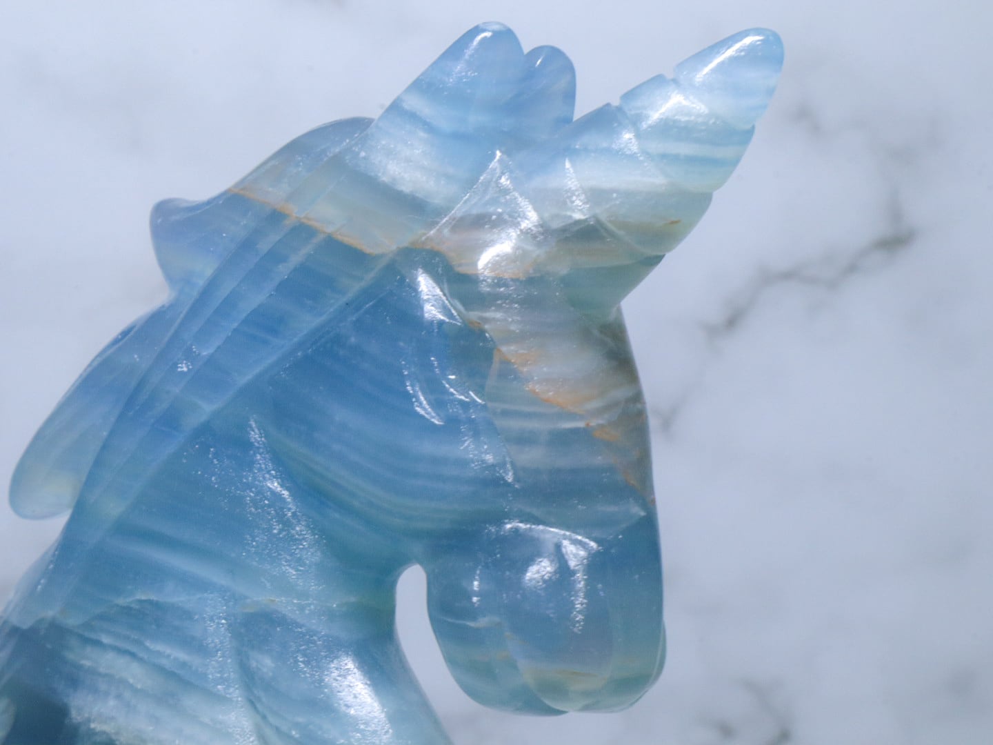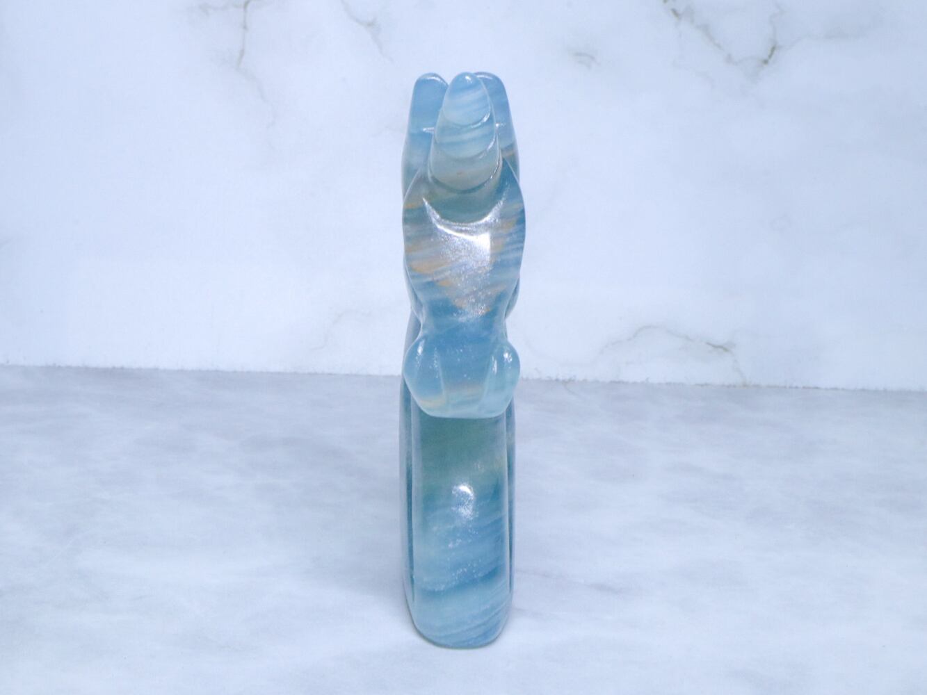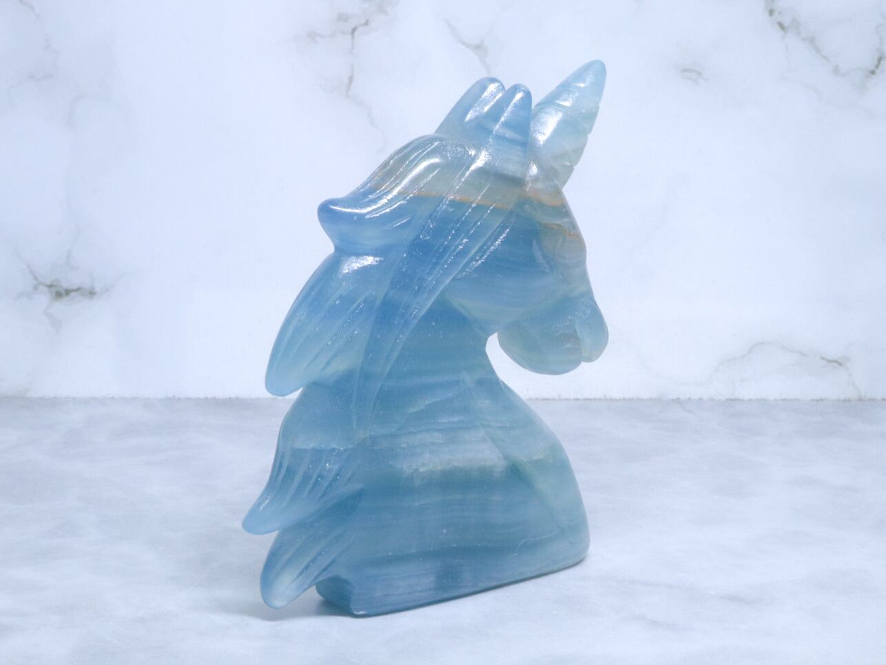 このこは、比較的濃いめのブルーをしています✨✨美しく清らかな水と砂とが混じり合ったような、海とも川とも見える模様をみせてくれるブルーオニキス✨午年に飾るのにはピッタリのユニコーンさんです✨つぶらな瞳がなんとも言えない、美しいお顔です♡性別はお迎え頂いた方の見え方で決まります♪是非動画も合わせてご覧頂き、お迎えをご検討ください♡
