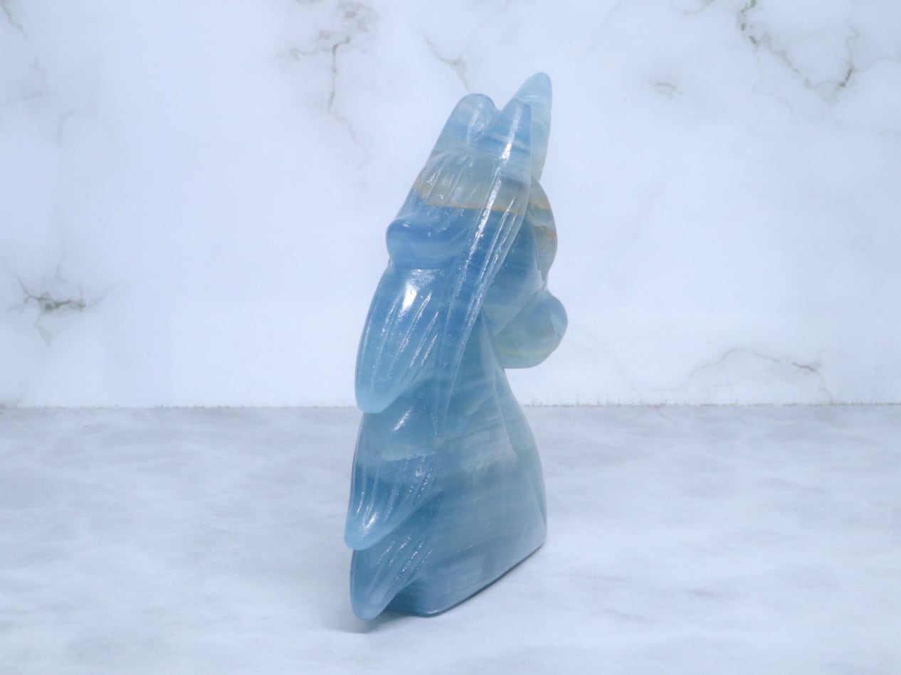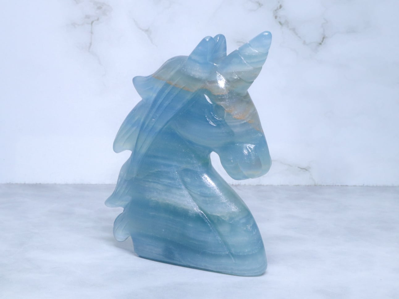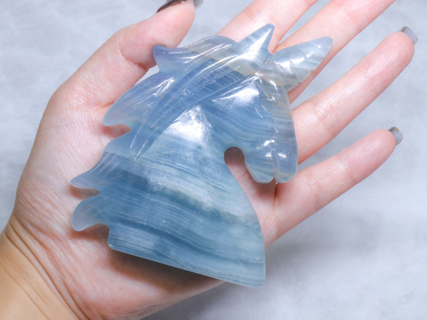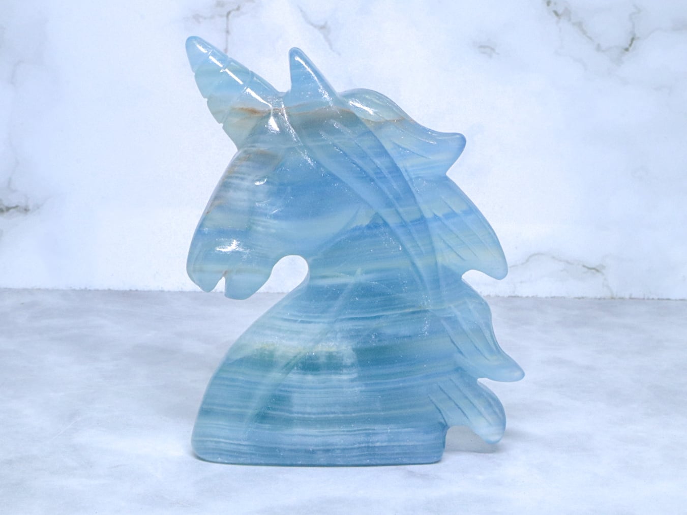 このこは、比較的濃いめのブルーをしています✨✨美しく清らかな水と砂とが混じり合ったような、海とも川とも見える模様をみせてくれるブルーオニキス✨午年に飾るのにはピッタリのユニコーンさんです✨つぶらな瞳がなんとも言えない、美しいお顔です♡性別はお迎え頂いた方の見え方で決まります♪是非動画も合わせてご覧頂き、お迎えをご検討ください♡