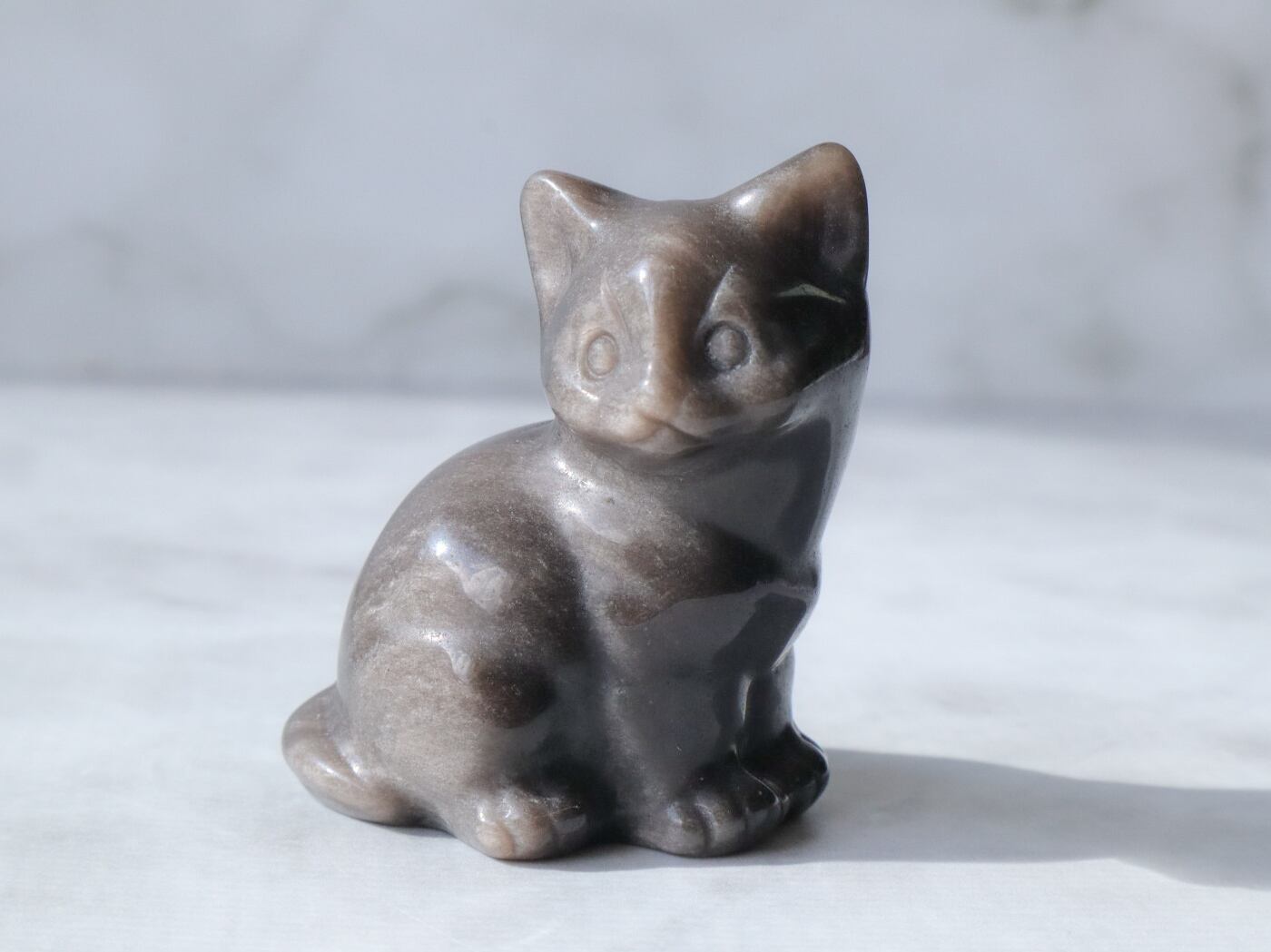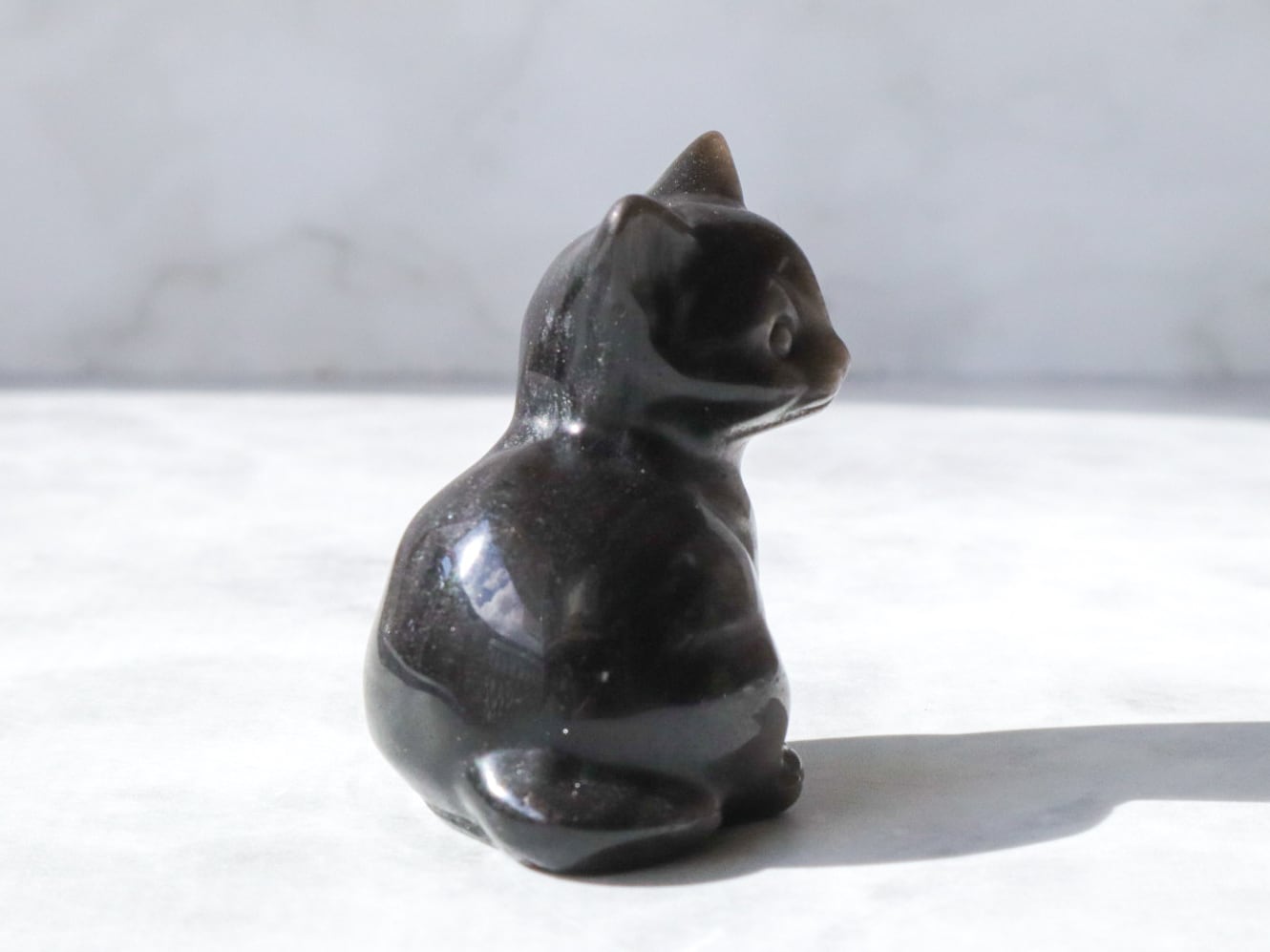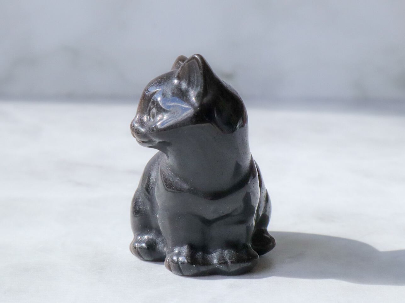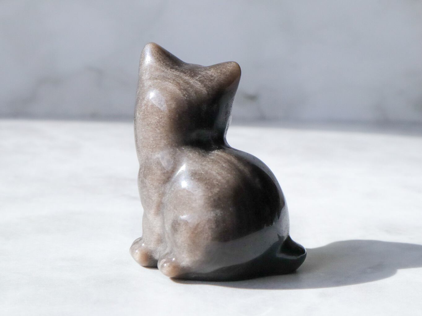 このこは黒くて、愛らしいお顔のねこちゃん♡正面と真後ろは、シルバーシラーによって輝きます✨✨真後ろのしっぽ辺りに石目あります。飾ってる分には気にならないかと思いますが、そんな所も個性と思ってくださる方にお迎え頂けたら幸いです♡