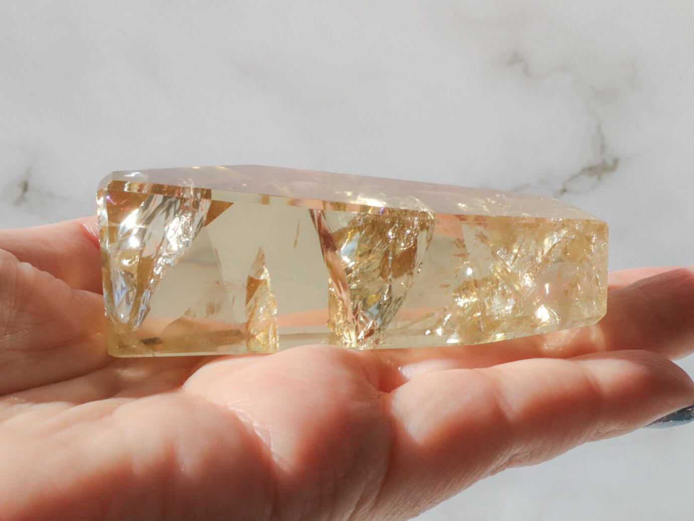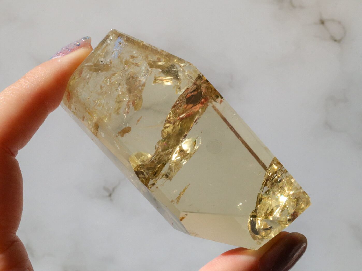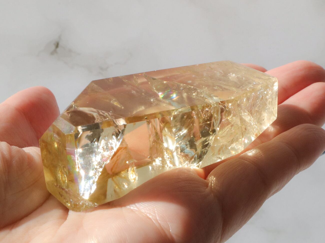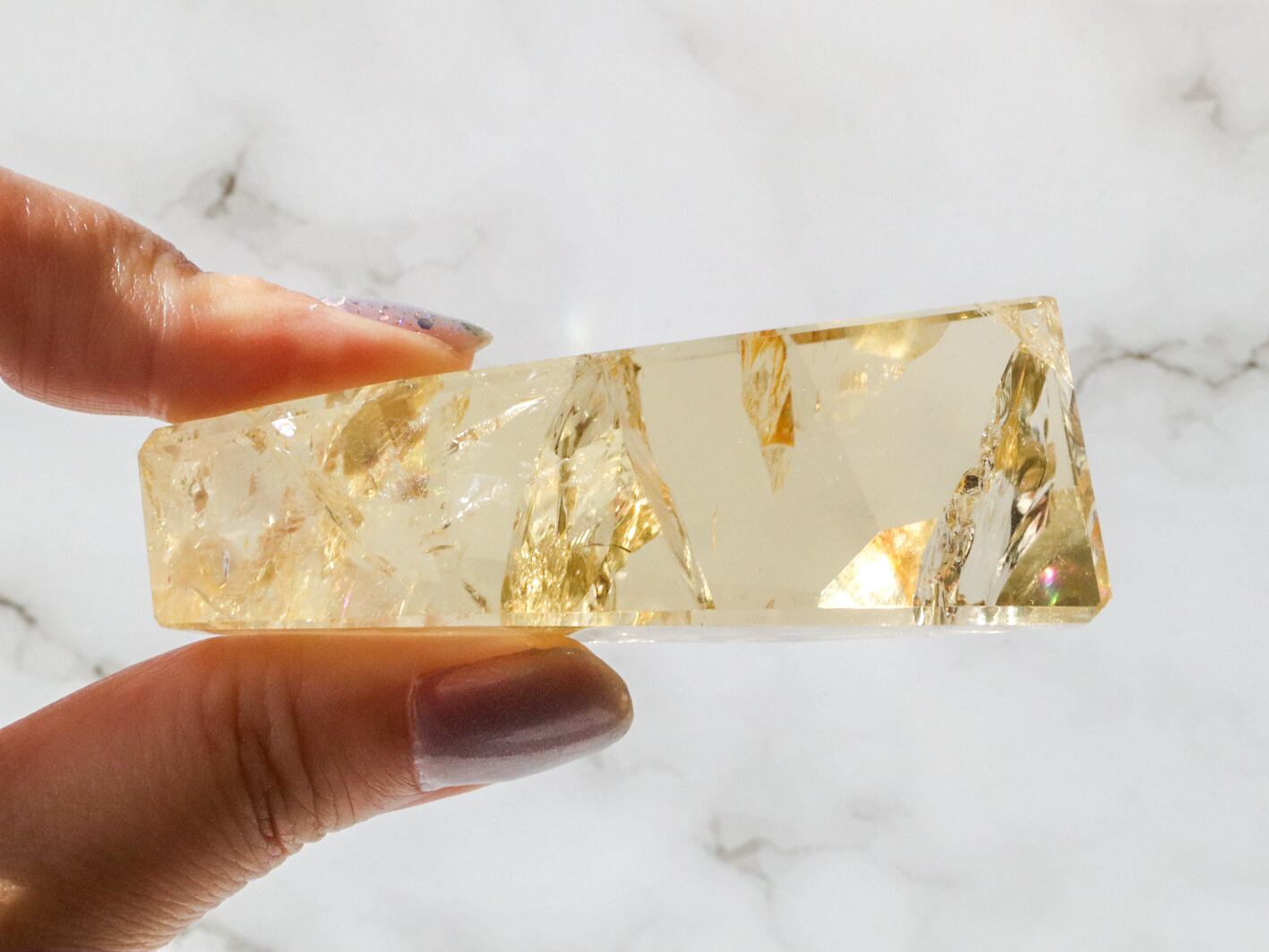 とっても美しいシトリンのフリーフォームのご紹介です✨透明度が高くて、虹があちこちでキラキラ輝きます(*ノωノ)✨✨中には指紋のような虹も見られます✨是非!動画でもごらんください♡