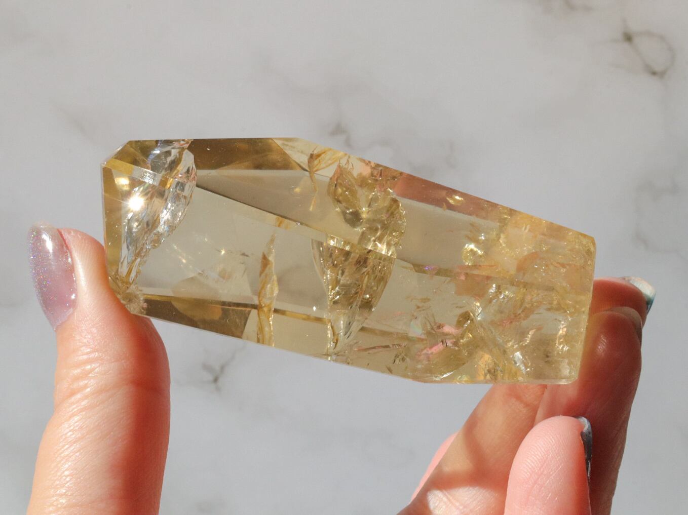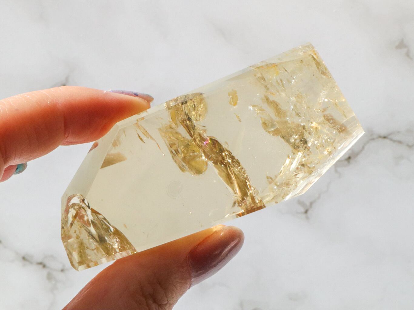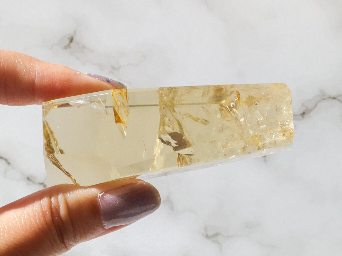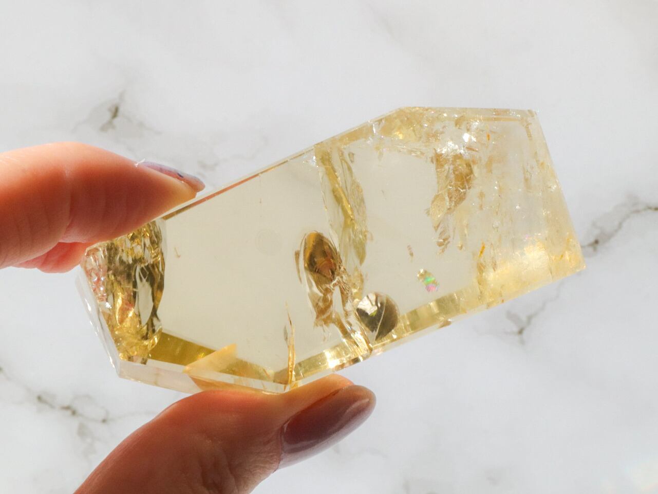とっても美しいシトリンのフリーフォームのご紹介です✨透明度が高くて、虹があちこちでキラキラ輝きます(*ノωノ)✨✨中には指紋のような虹も見られます✨是非!動画でもごらんください♡