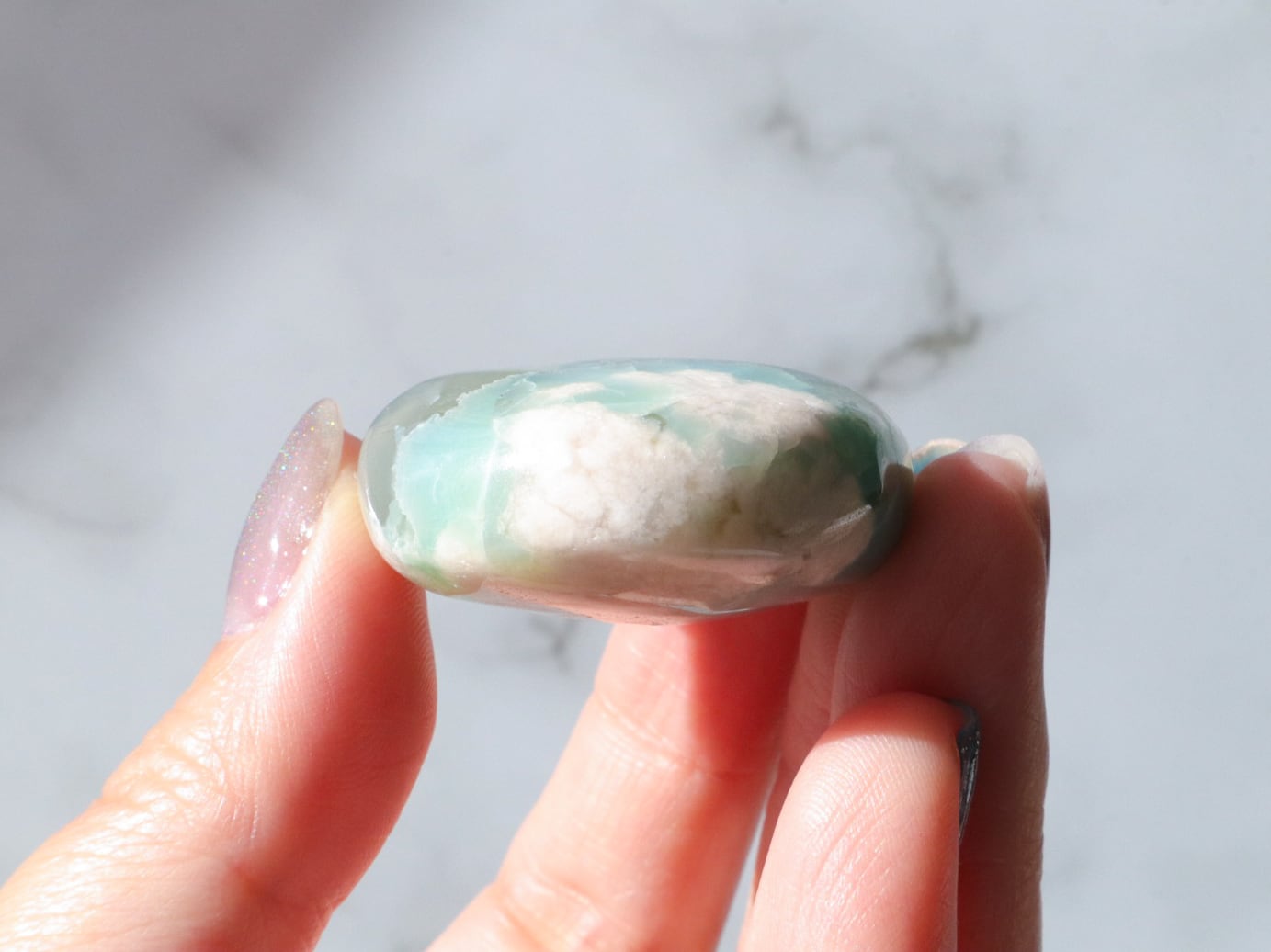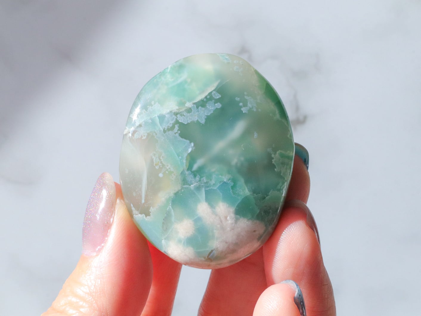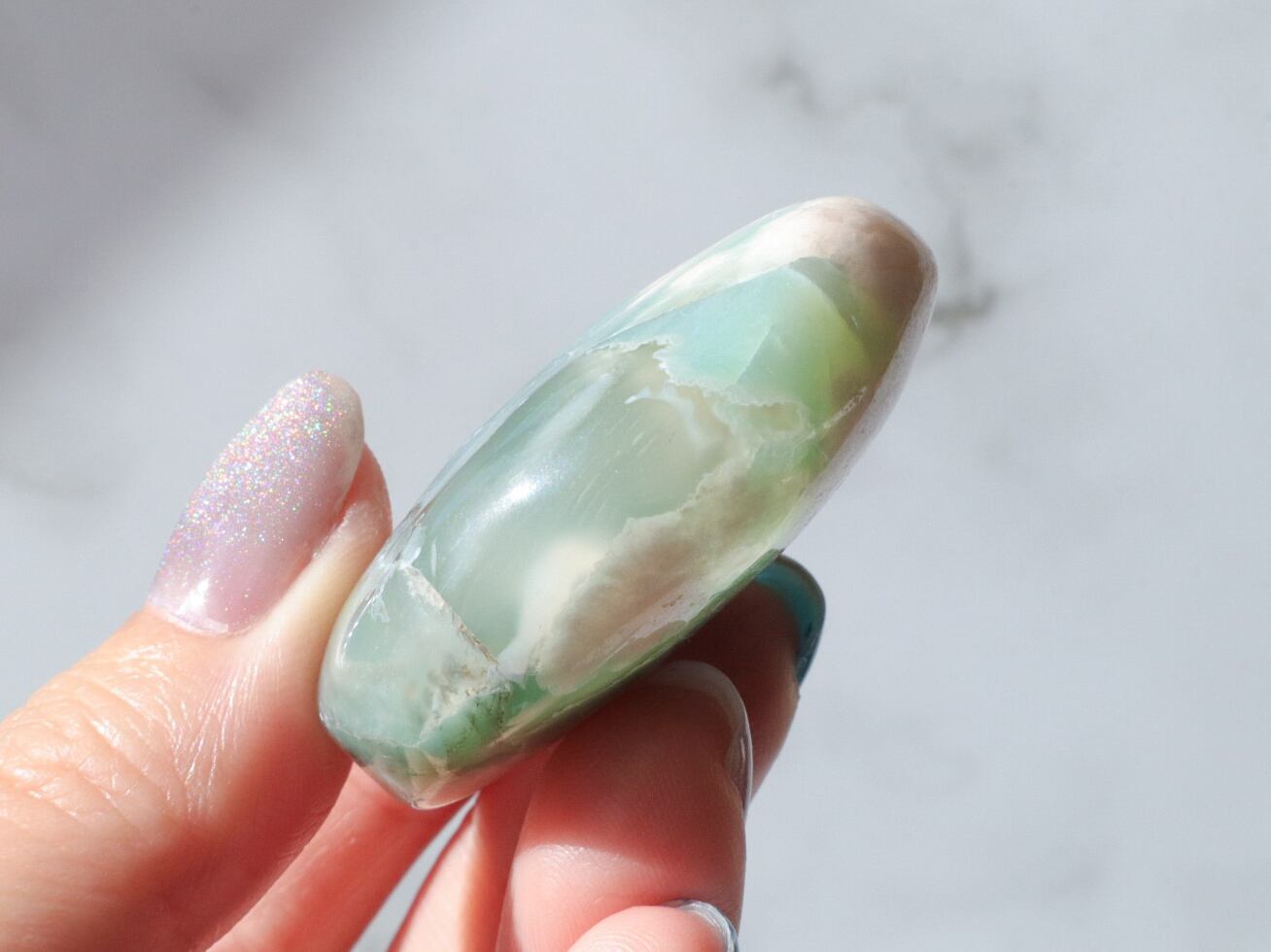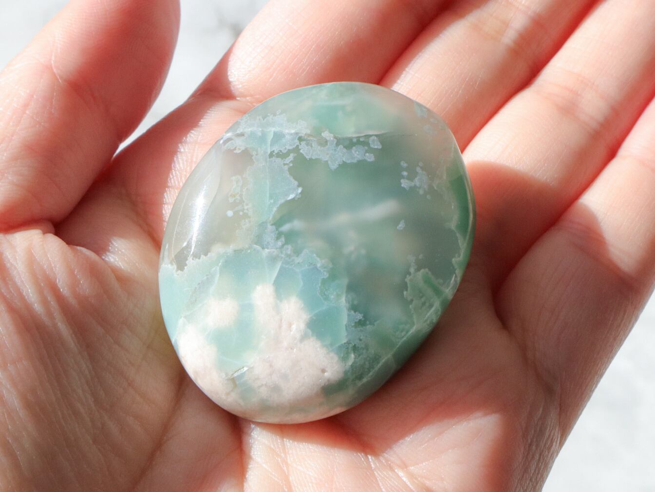 桜瑪瑙の中でもとても希少で、人気の高いグリーン桜瑪瑙の小ぶりパームさんたちをご紹介します☆手のひらサイズで、持ち歩きにも最適な大きさのこたちです♪