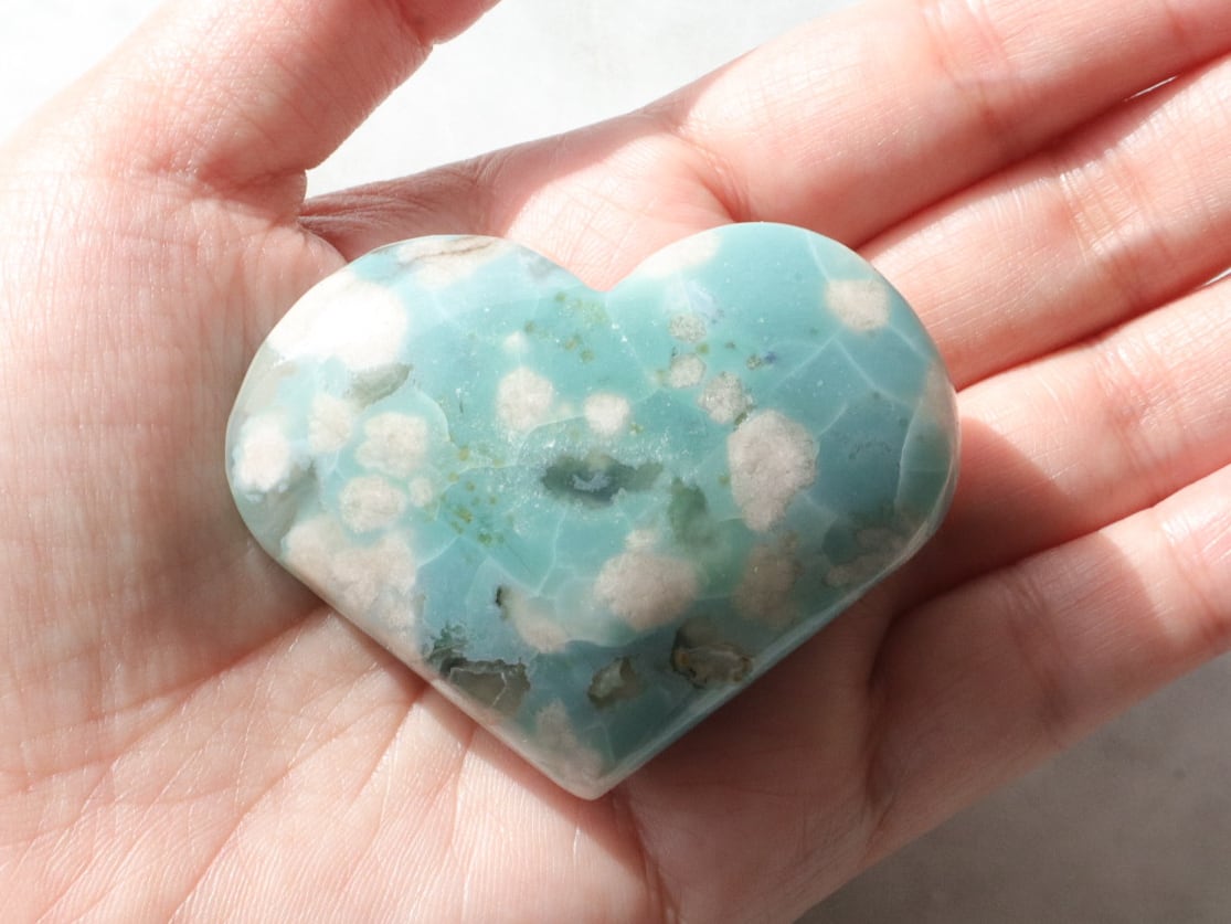 桜瑪瑙の中でもとても希少で、人気の高いグリーン桜瑪瑙さんがまた再入荷しました♡今回もハート型で、それぞれ個性のある模様と色が魅力的なこたちです♡どのこが皆さんのトキメキに繋がるのか、楽しみにしております♪動画も合わせてご覧ください♡自然に出来たそれぞれの美しいグリーンに心が癒されます♡