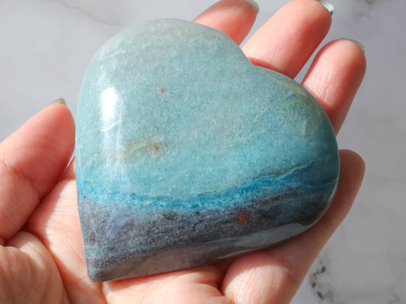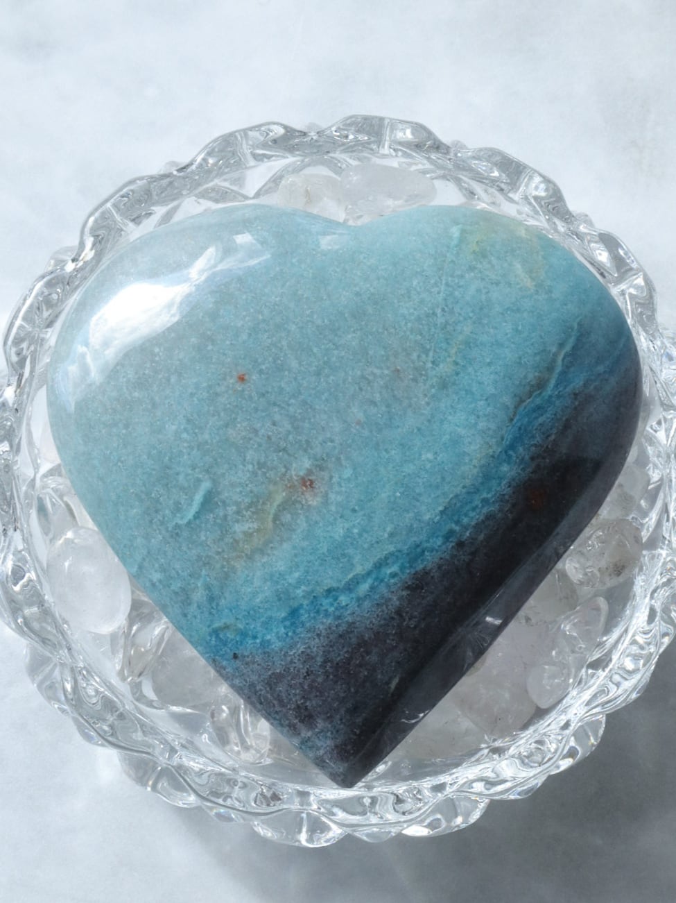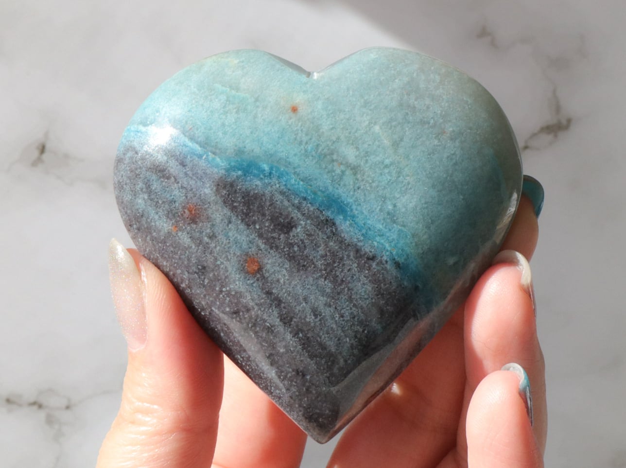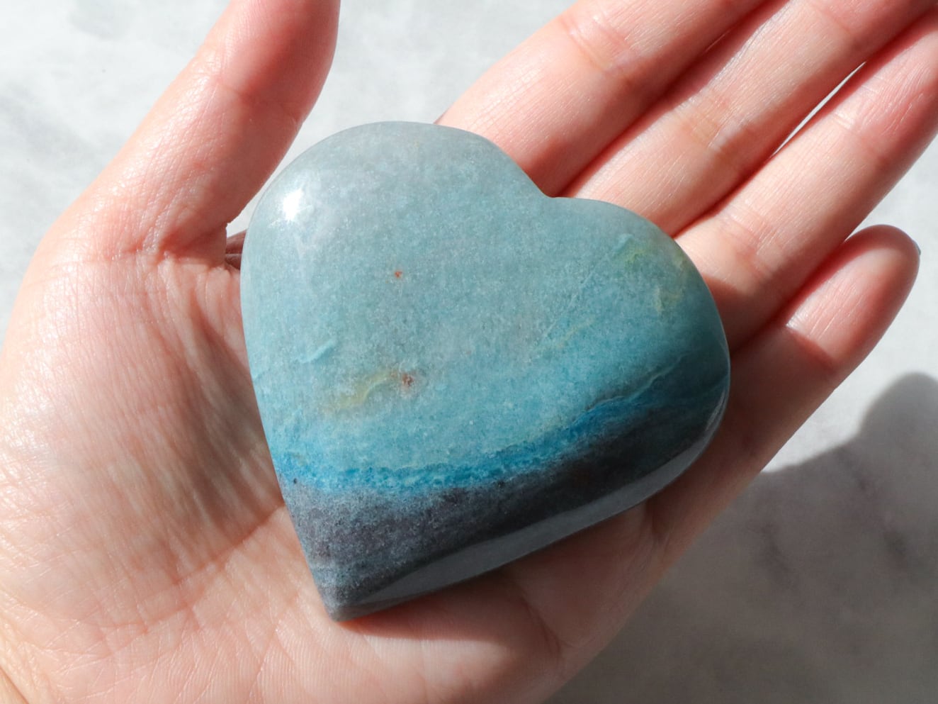 ブラジルからの直送便できた、爽やかなブルーのグラデーションに、優しいブラックグレーが一部に入った、トロレアイトのハートさんのご紹介です♡♡♡形も整っていて美しいです✨多少こぶりなので、持ち歩きにもいいですね♪とにかくレアストーンですし♡いつもトロレアイトのハートさんはすぐお迎えが決まっていくので、ビビッと来られた方はお早めにお手元へGETしてください♪