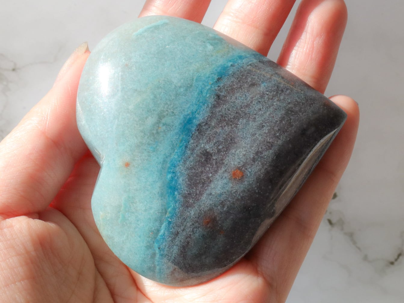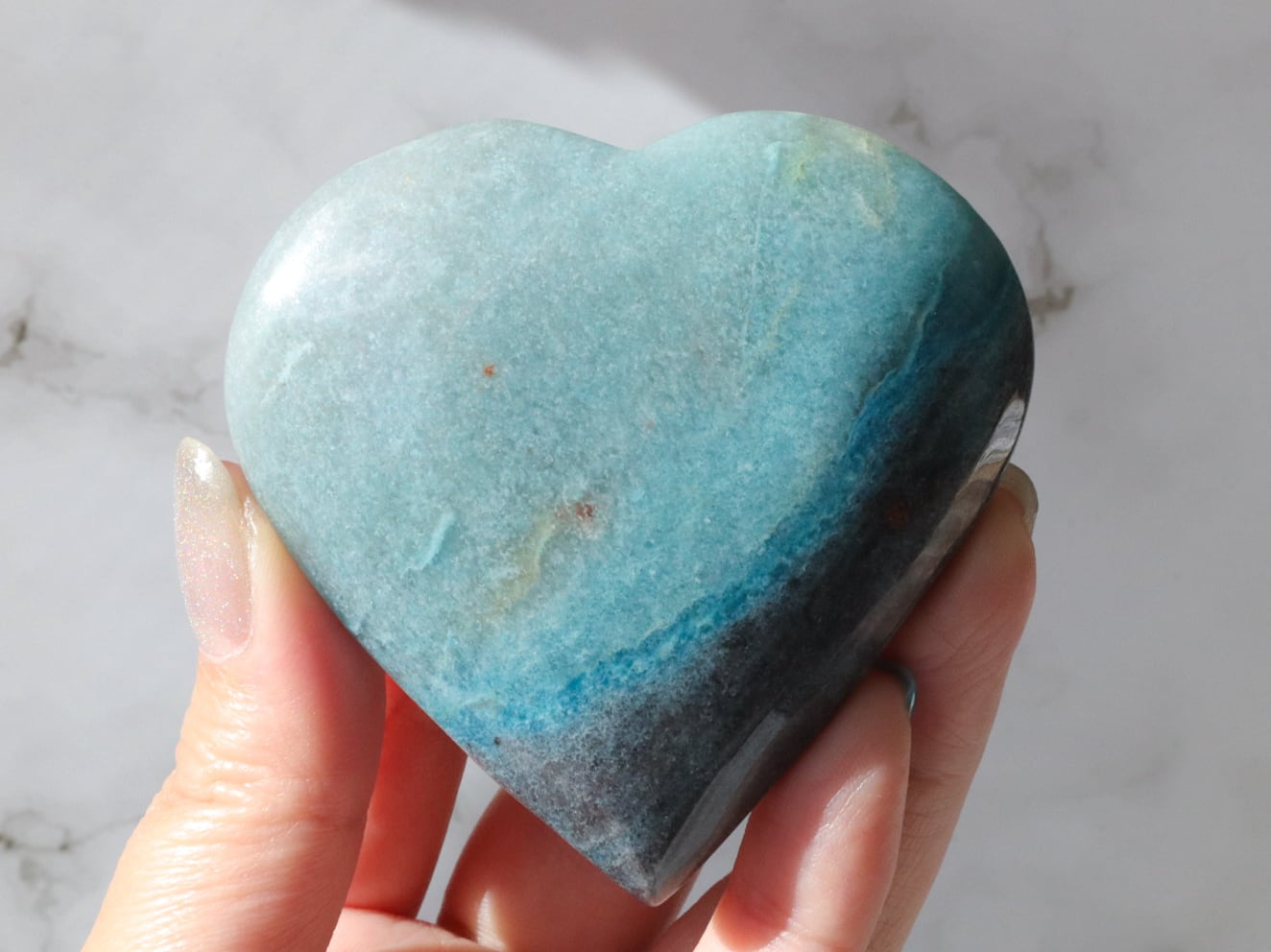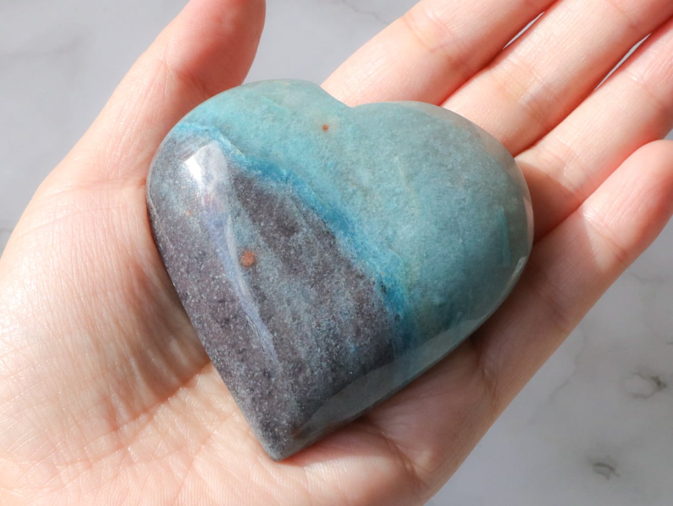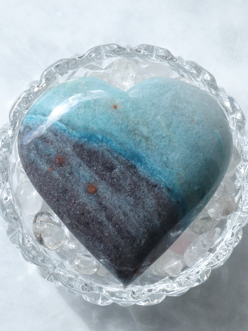 ブラジルからの直送便できた、爽やかなブルーのグラデーションに、優しいブラックグレーが一部に入った、トロレアイトのハートさんのご紹介です♡♡♡形も整っていて美しいです✨多少こぶりなので、持ち歩きにもいいですね♪とにかくレアストーンですし♡いつもトロレアイトのハートさんはすぐお迎えが決まっていくので、ビビッと来られた方はお早めにお手元へGETしてください♪