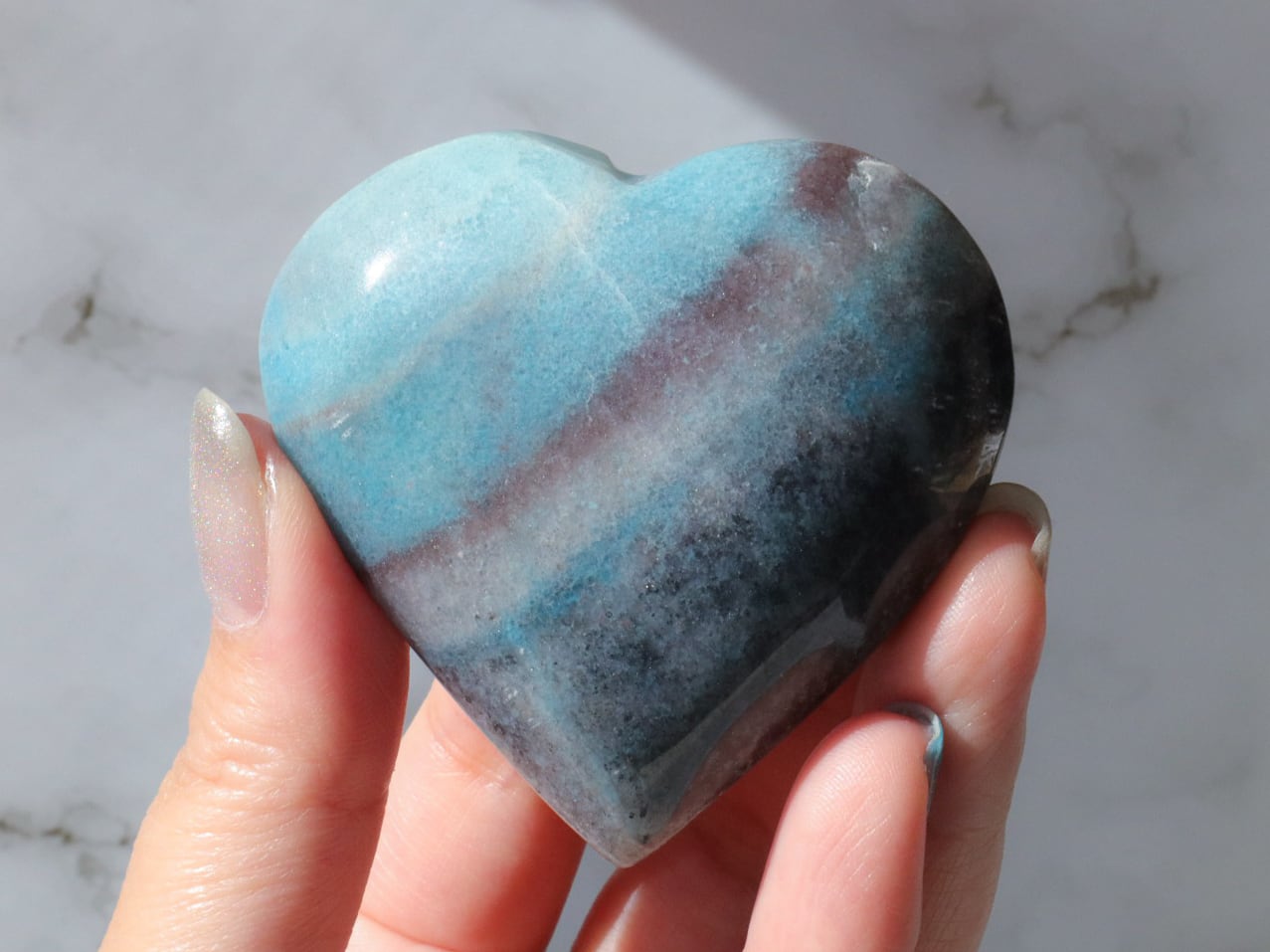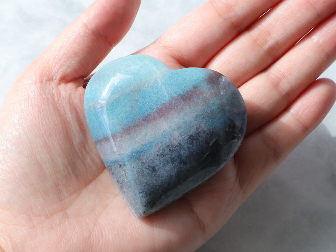 ブラジルからの直送便できた、爽やかな水色と優しいブラックグレーのラインが可愛いトロレアイトのハートさんのご紹介です♡♡♡形も整っていて美しいです✨こぶりなので、持ち歩きにもいいですね♪とにかくレアストーンですし♡いつもトロレアイトのハートさんはすぐお迎えが決まっていくので、ビビッと来られた方はお早めにお手元へGETしてください♪