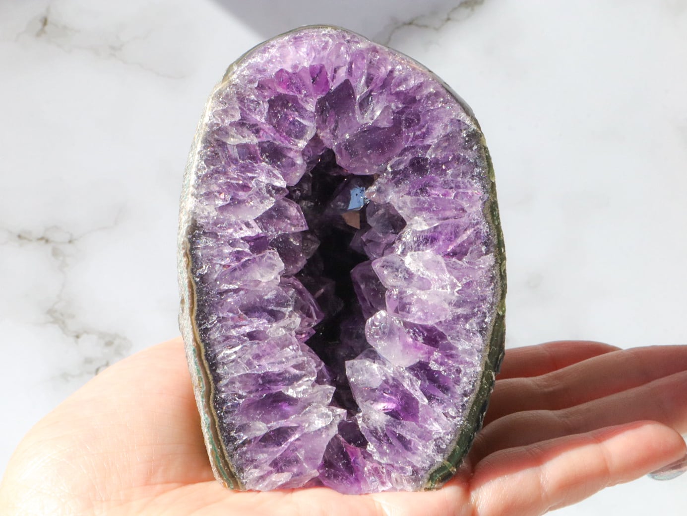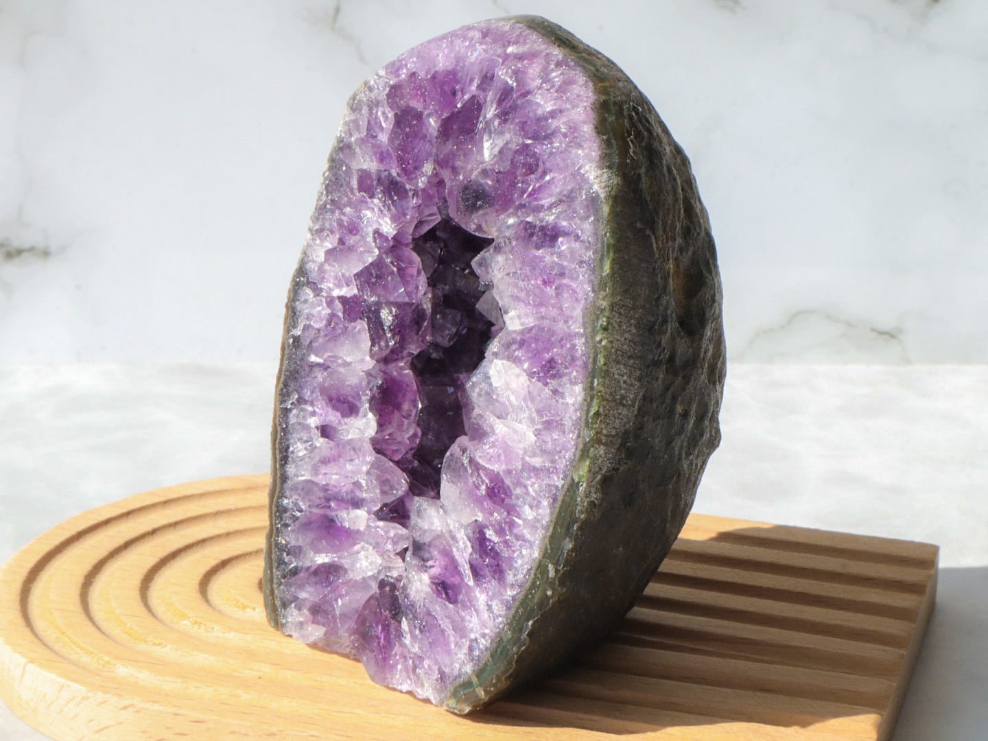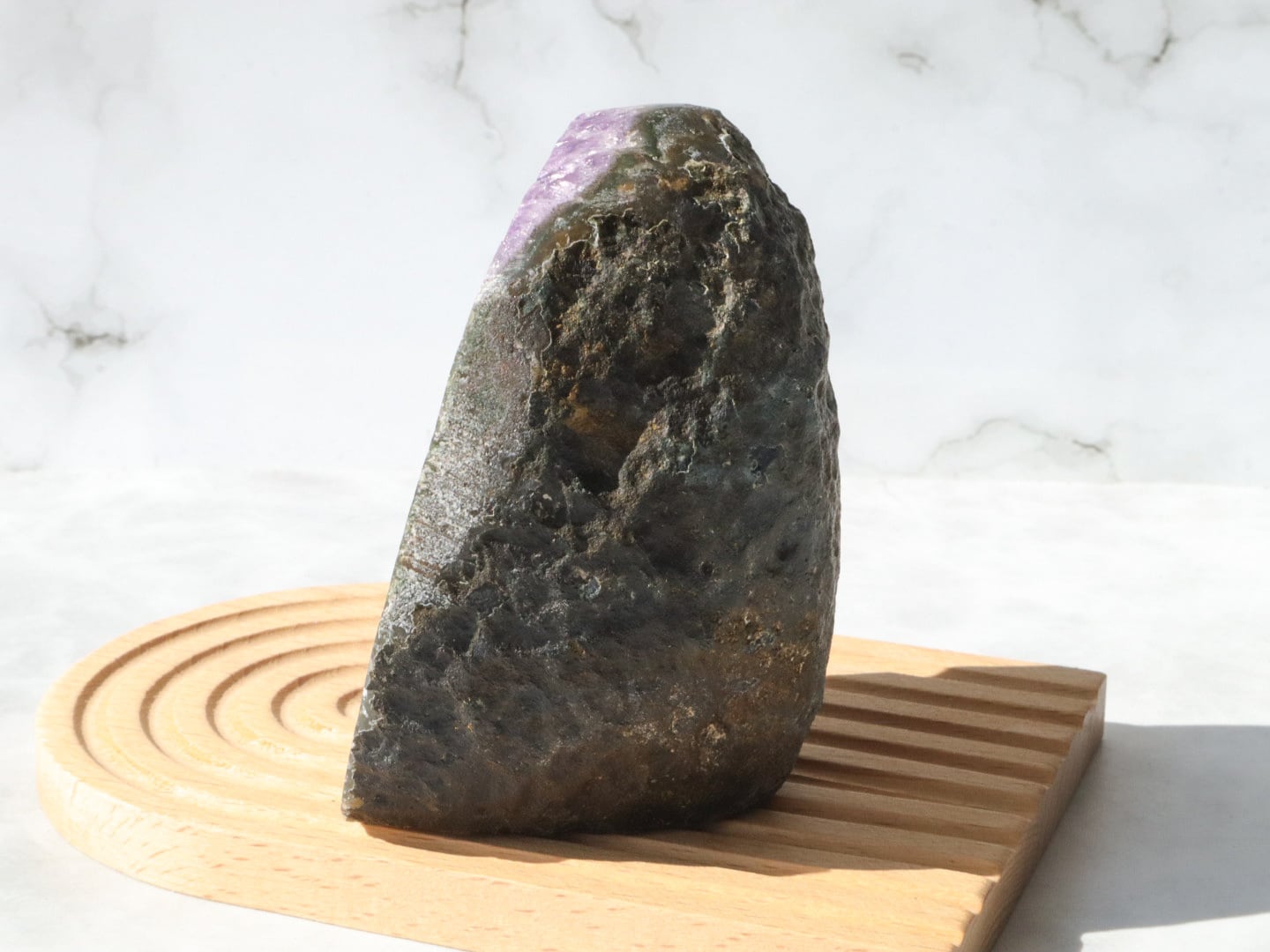 母岩はコンクリートなどで加工されていないので、触ると少し手に粉が付きますがナチュラルな証拠です✨比較的小ぶりなので、天然石初心者の方でも、目立ちすぎずに飾って頂けるかと思います✨✨是非✨この機会にアメジストドームを、あなたのお家のパワースポットとしてお手元へお迎えください♡