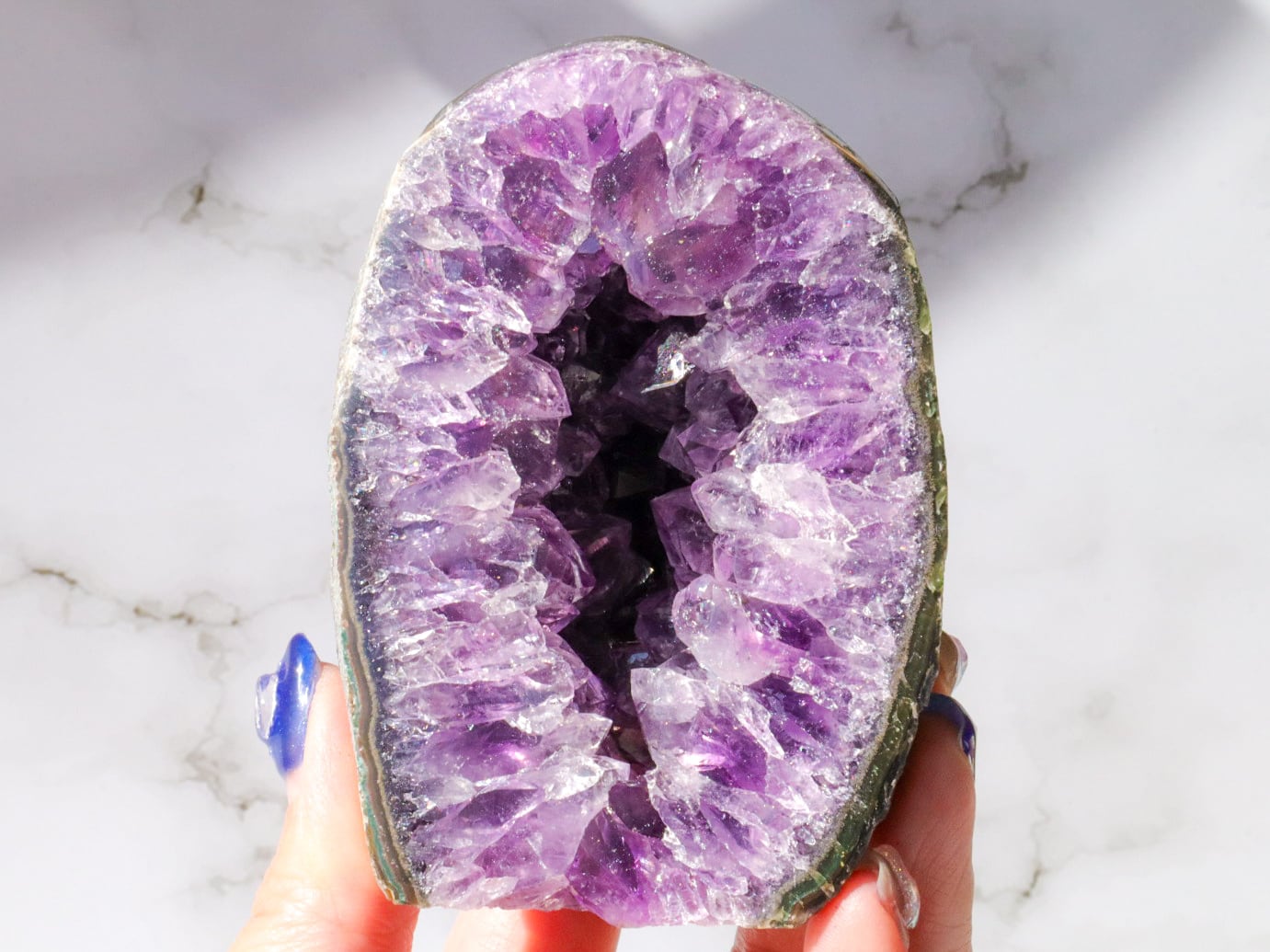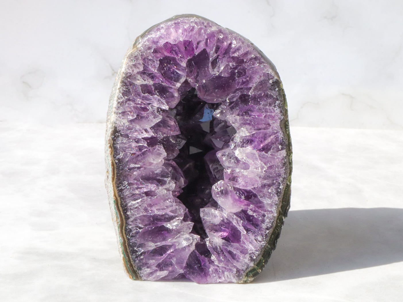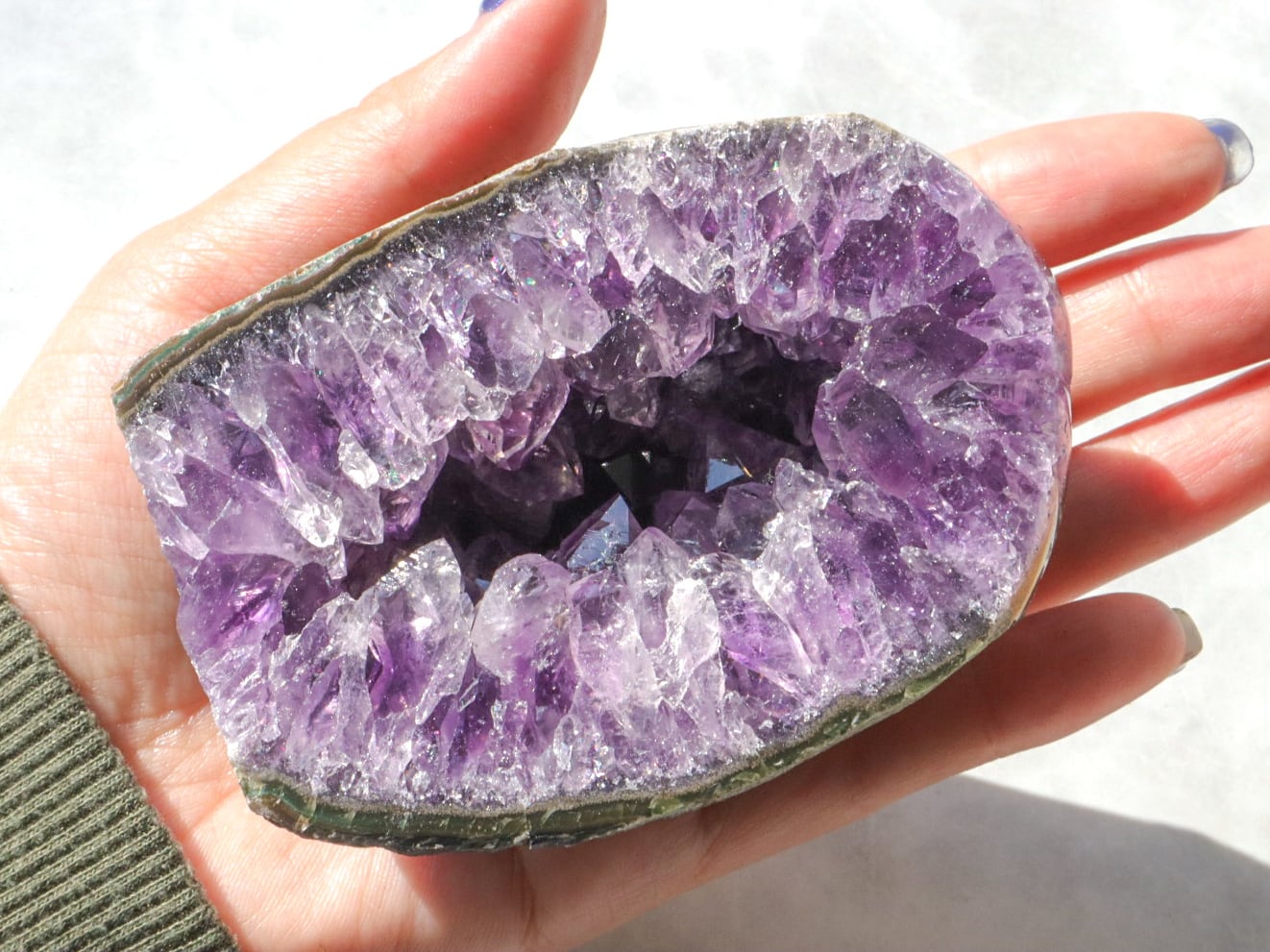 母岩はコンクリートなどで加工されていないので、触ると少し手に粉が付きますがナチュラルな証拠です✨比較的小ぶりなので、天然石初心者の方でも、目立ちすぎずに飾って頂けるかと思います✨✨是非✨この機会にアメジストドームを、あなたのお家のパワースポットとしてお手元へお迎えください♡
