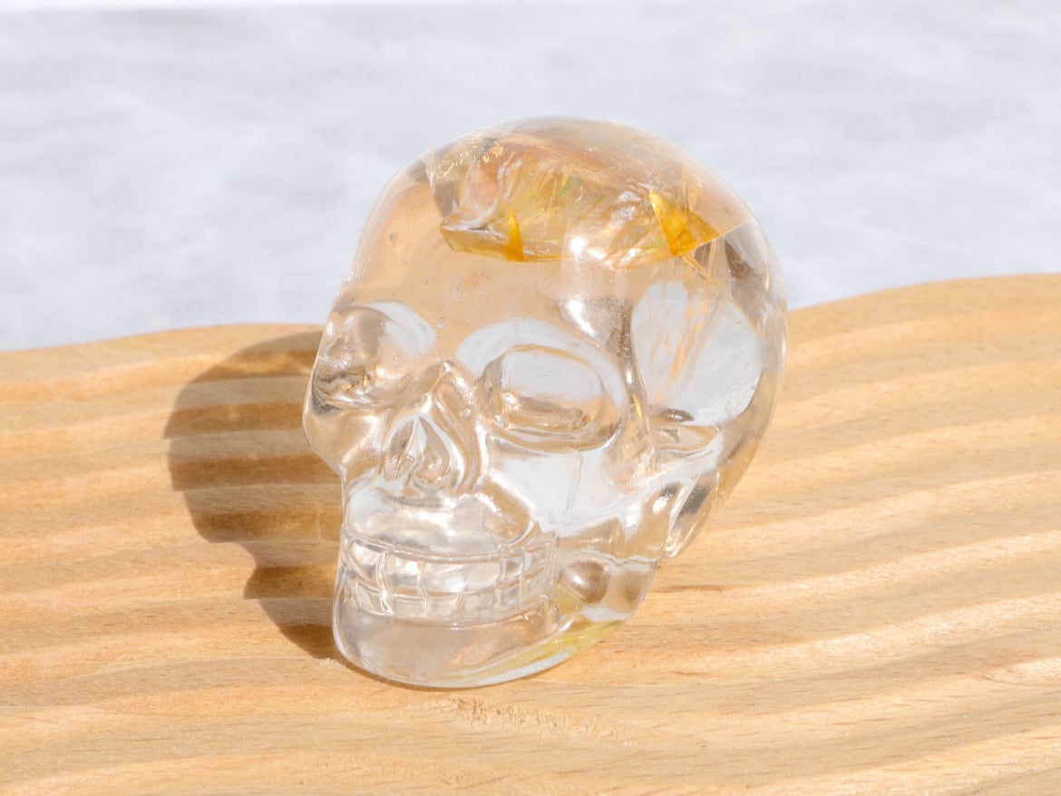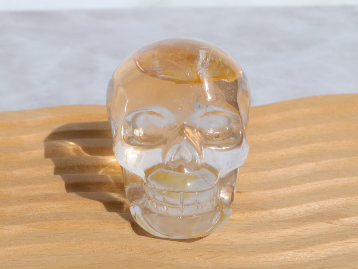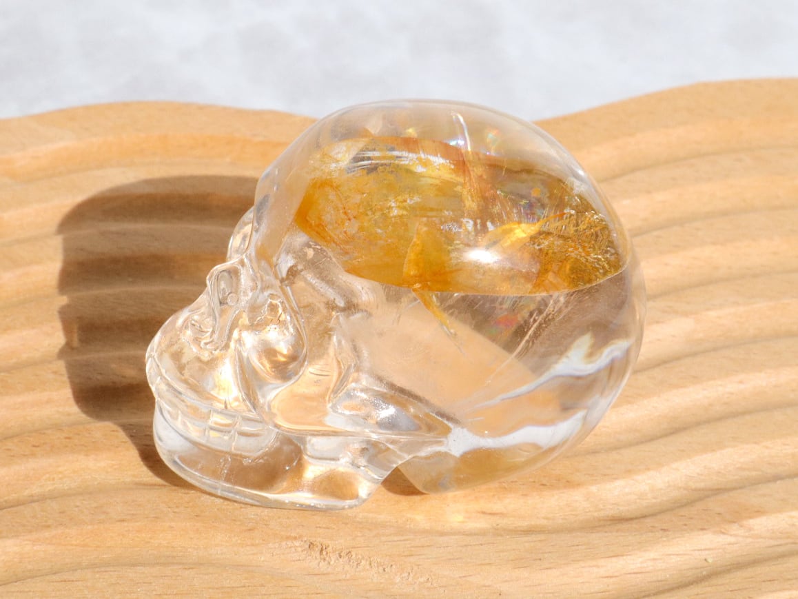 頭のてっぺんに美しいイエローのライモナイト&煌めく虹をもつ、水晶のイケてるフェイスのスカルさんをご紹介します♪