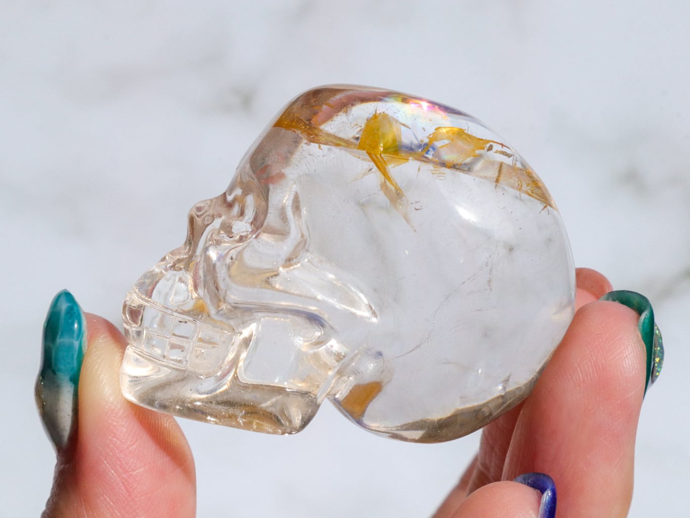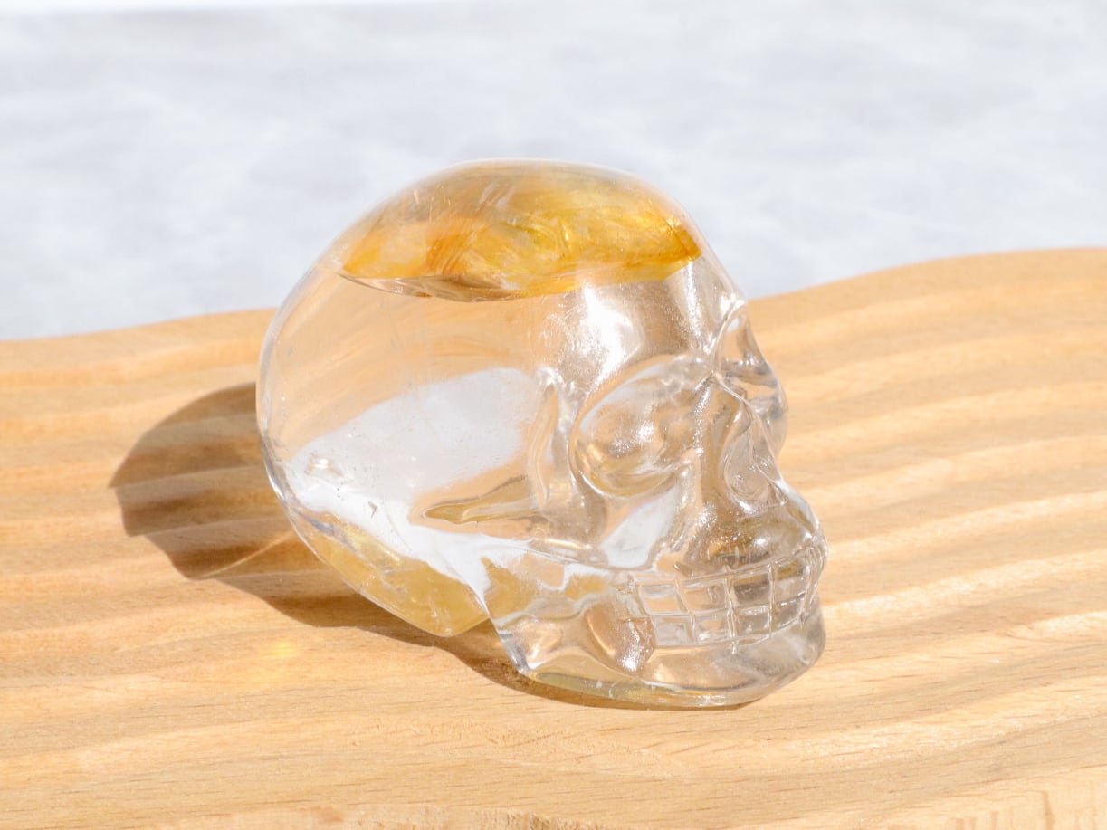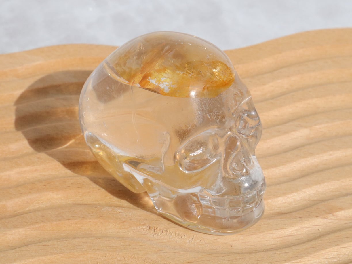 頭のてっぺんに美しいイエローのライモナイト&煌めく虹をもつ、水晶のイケてるフェイスのスカルさんをご紹介します♪