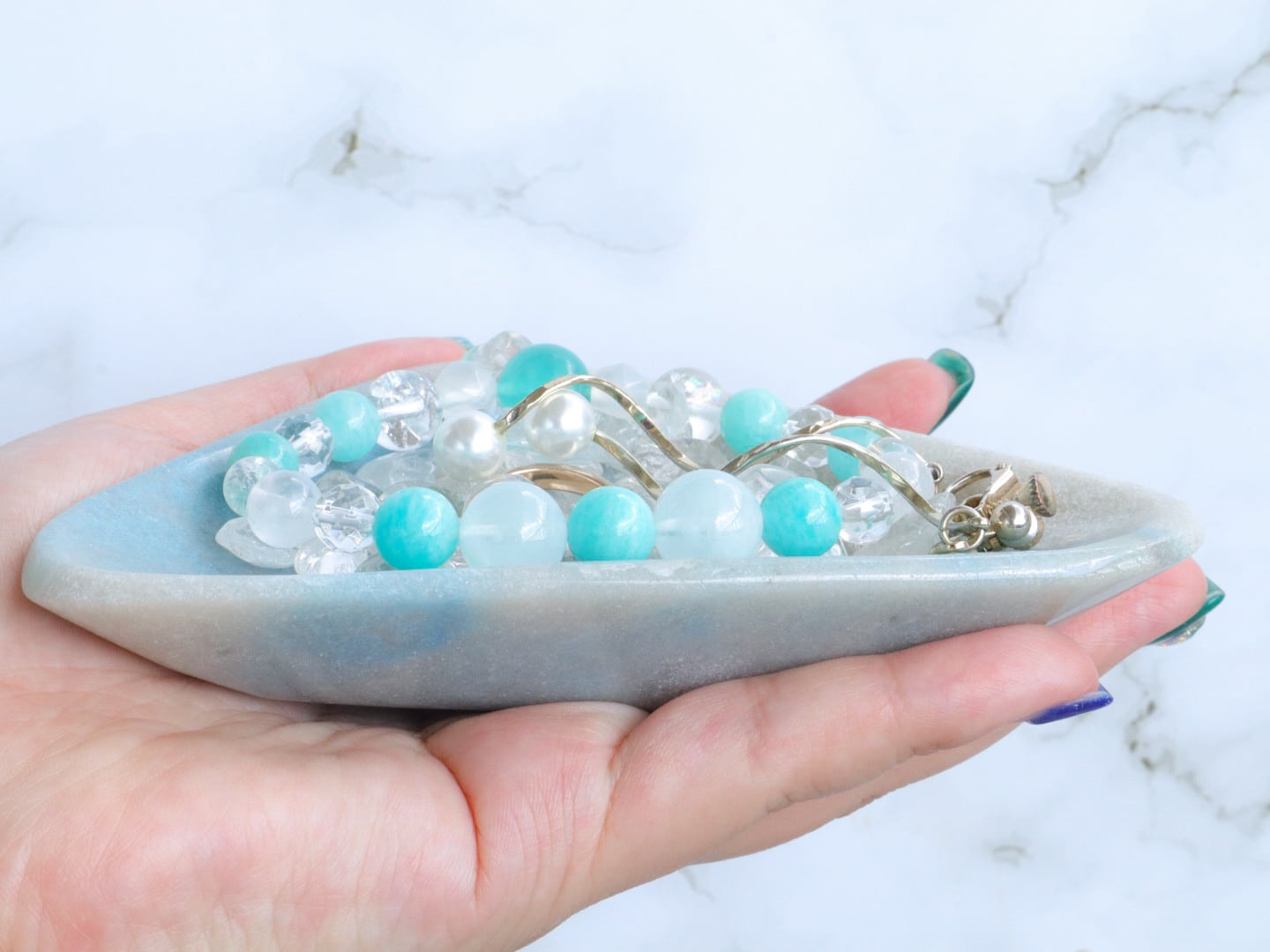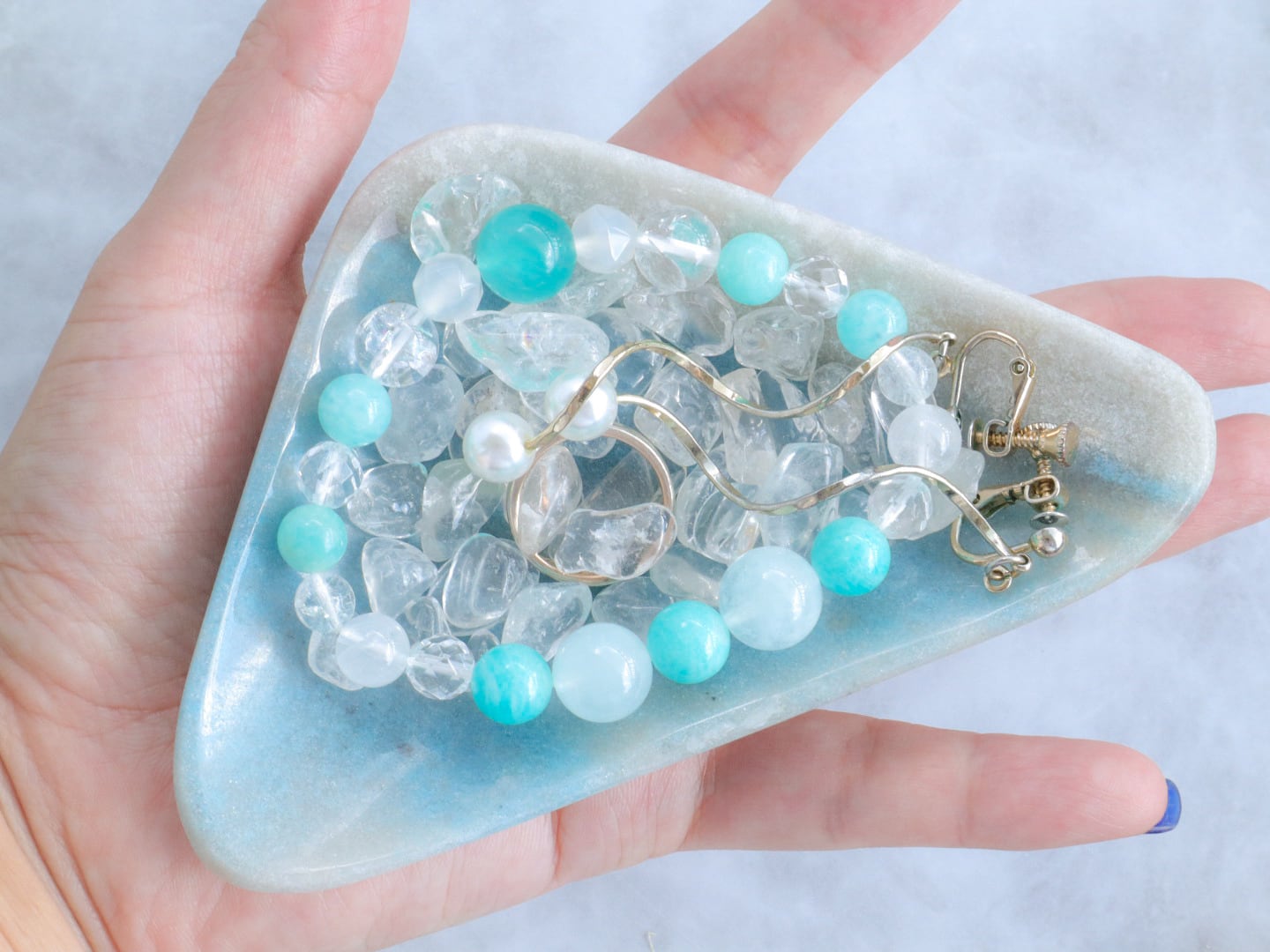 トロレアイトならではの、青空のようなブルーとそこに浮かぶ雲のようなホワイトグレー✨全体のキラキラ具合にときめいて頂けたら嬉しいです♪
