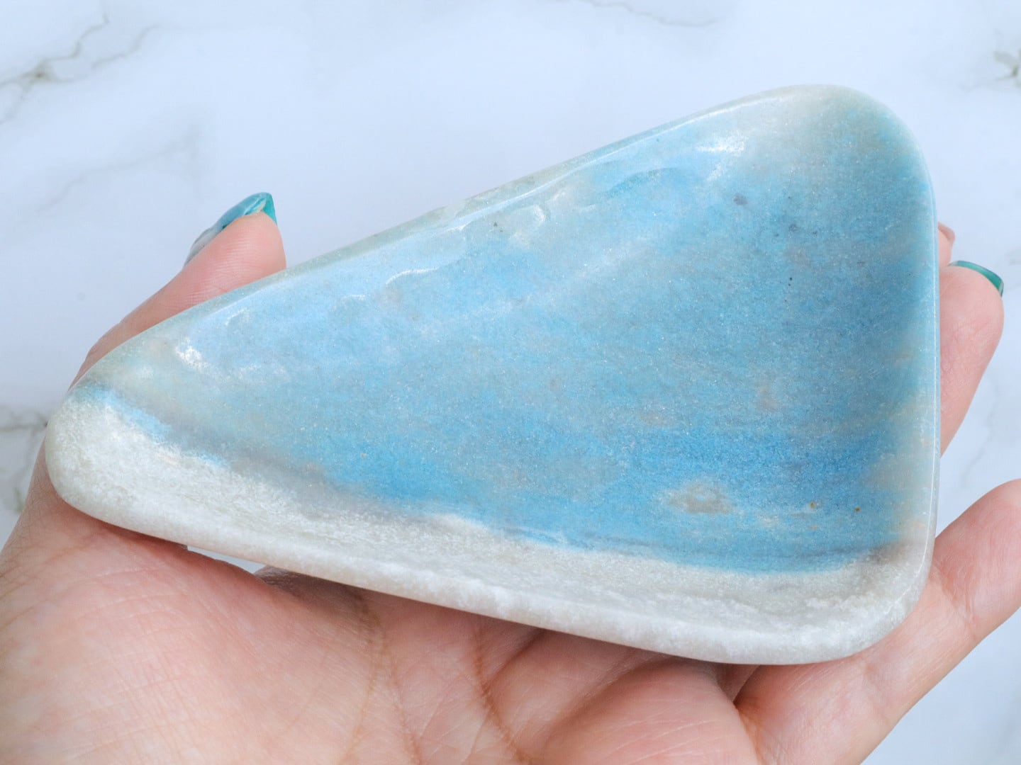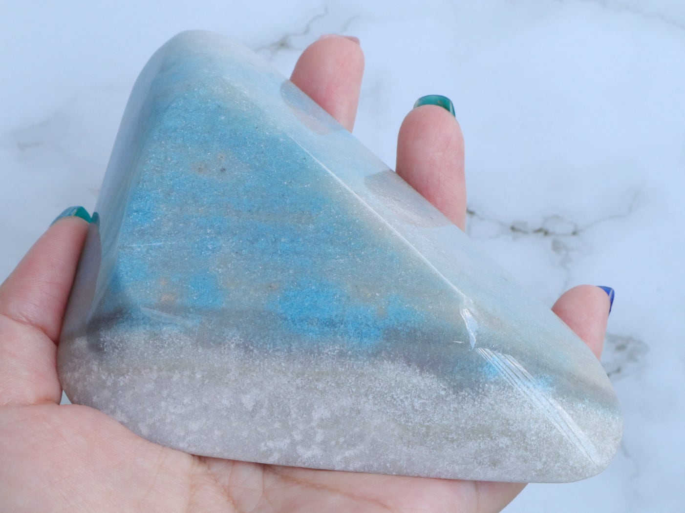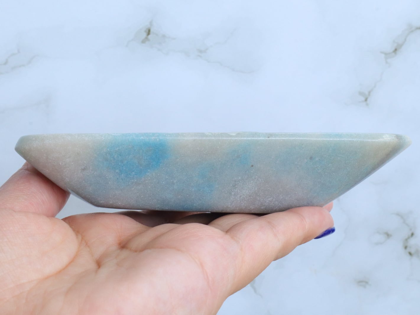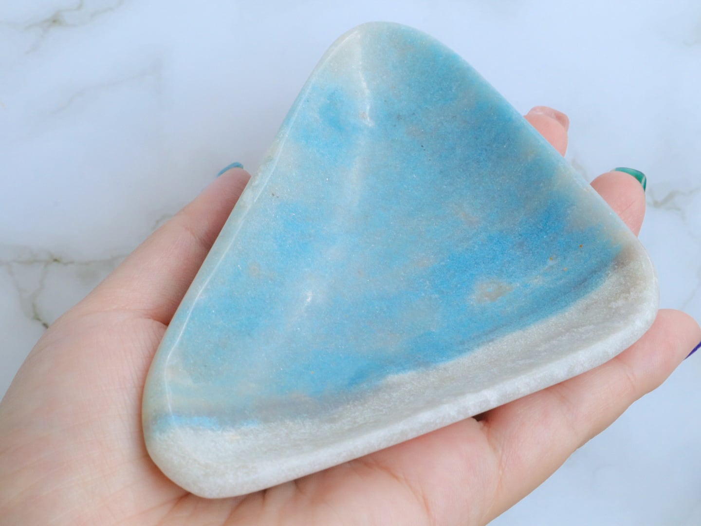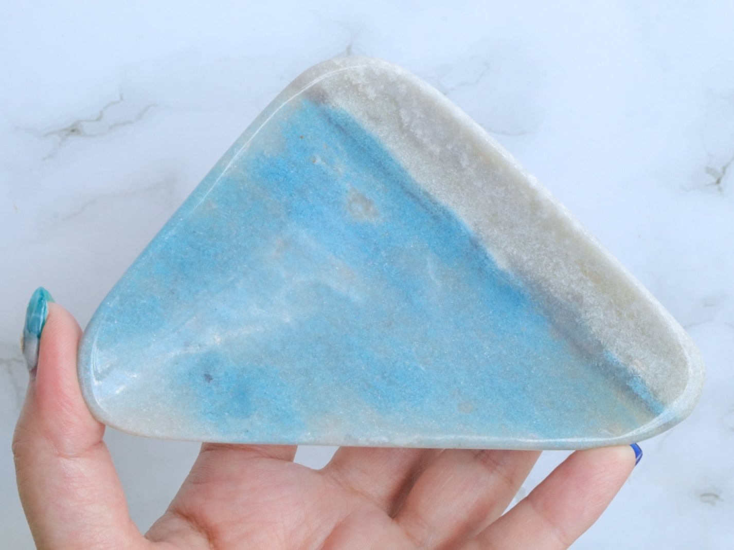 淡いブルーであっても、どことなくくすみを感じる優しい色合いで、なんとも不思議な神秘的な魅力があり、癒しを感じる人も多く、近年とても人気が出てきた石です♡