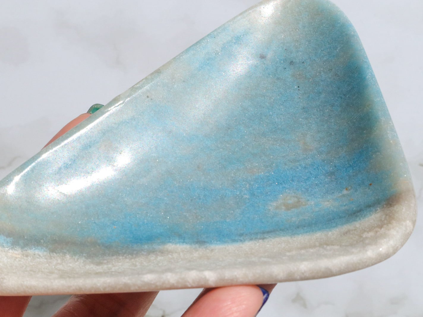 このこは、両面キラキラのトロレアイトのお皿です✨天然石のさざれを入れてさらにパワーアップさせて、1日付けていたアクセサリーなどを癒す場所としていただくのもオススメです✨