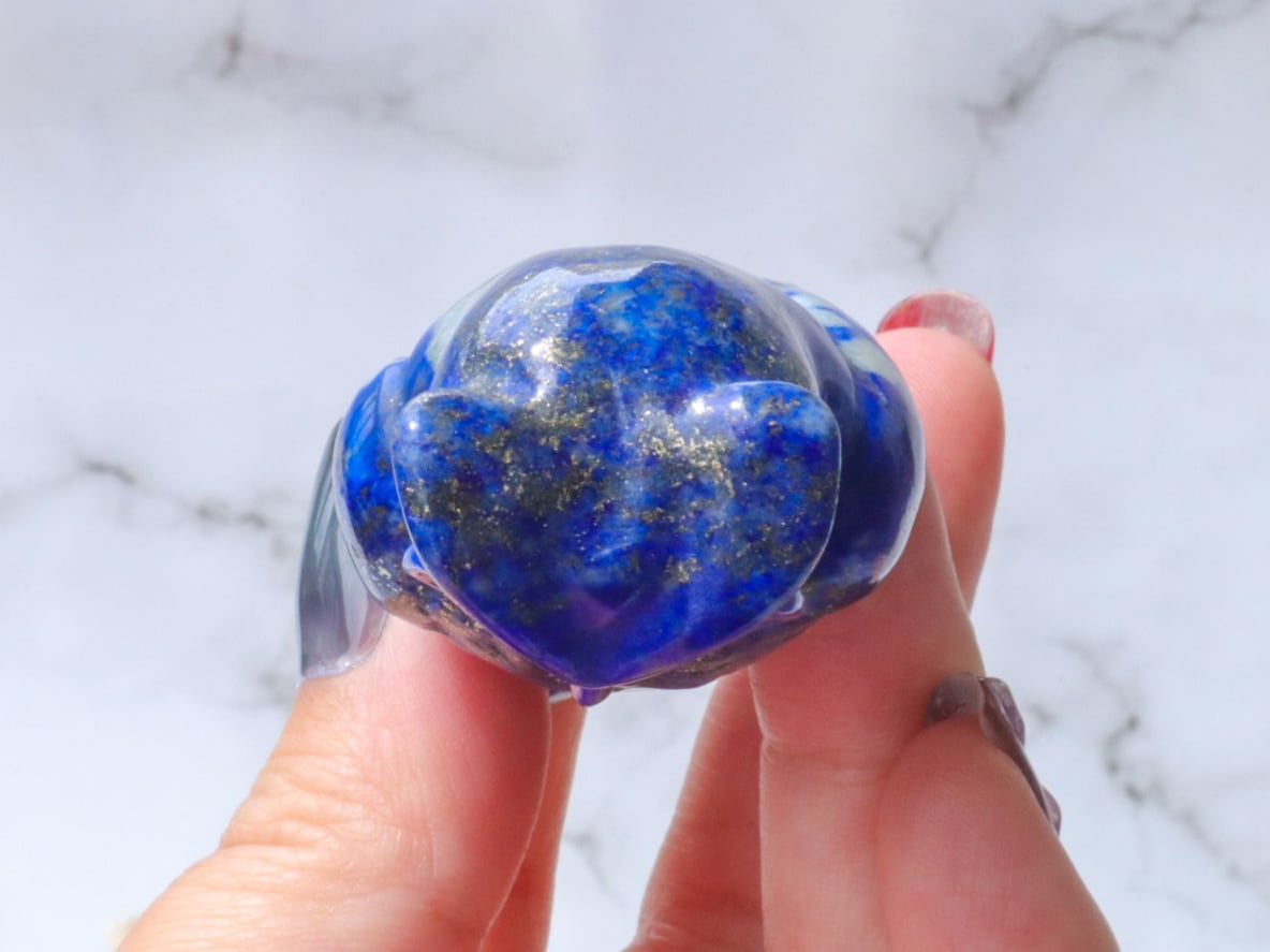 ラピスラズリは様々な鉱物が混ざっているために全体的に均一な色のものが少なく、黄金色の黄鉄鉱(パイライト)、白色の方解石や長石が小さな斑点のように混入してキラキラしています✨