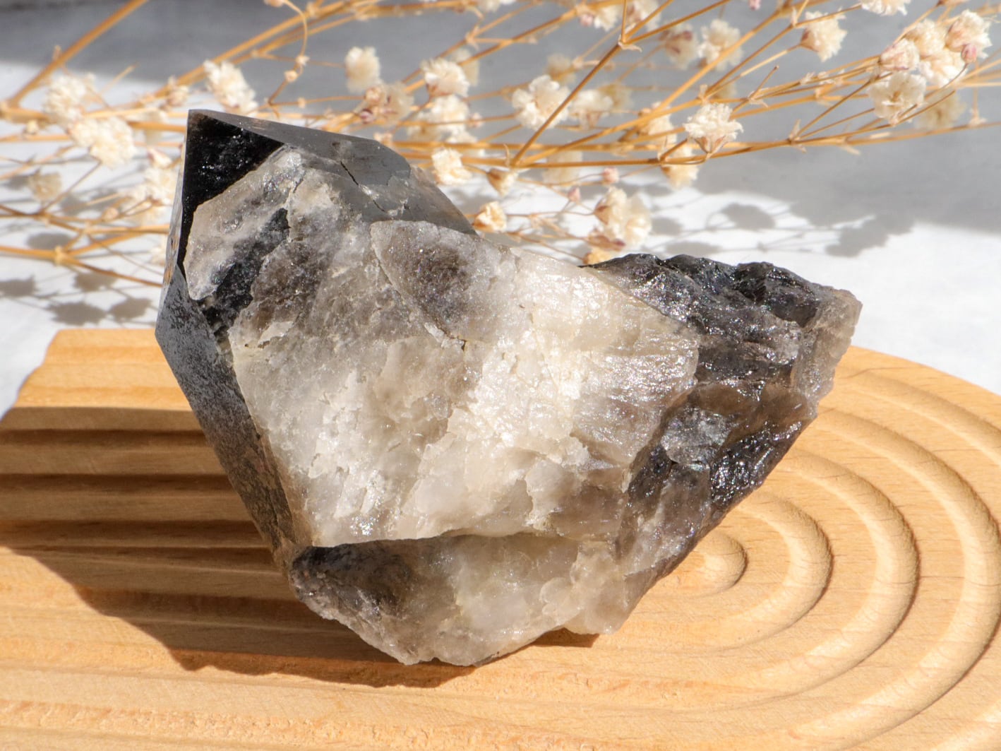 モリオンは和名を黒水晶と言い、文字通り光を通さないほど真っ黒な水晶です✨強力な黒水晶に抵抗を感じる方もいらっしゃるかと思うのですが、比較的こぶりなので、黒水晶初心者の方にもとてもオススメです✨形もカッコイイので、さりげなくインテリアの中に取り入れて頂くことも可能かと思います♪