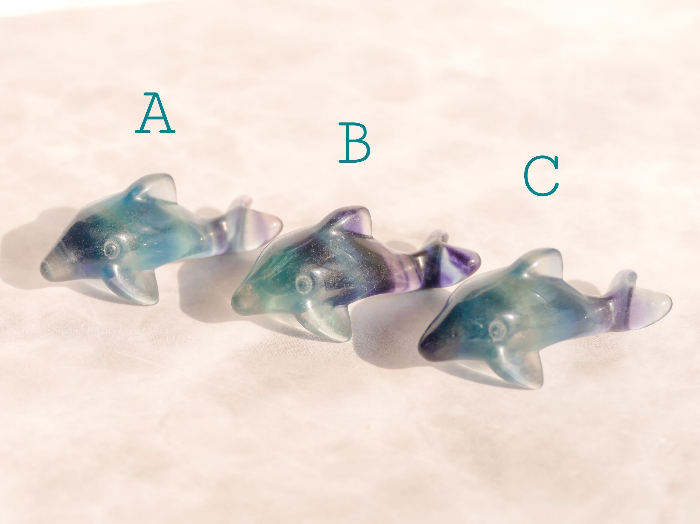 色んな角度から光を当てて色合いをお楽しみ下さい✨3種類ご用意しておりますので、あなたの直感にて最適なイルカさんとご縁がございますよう願っております♡