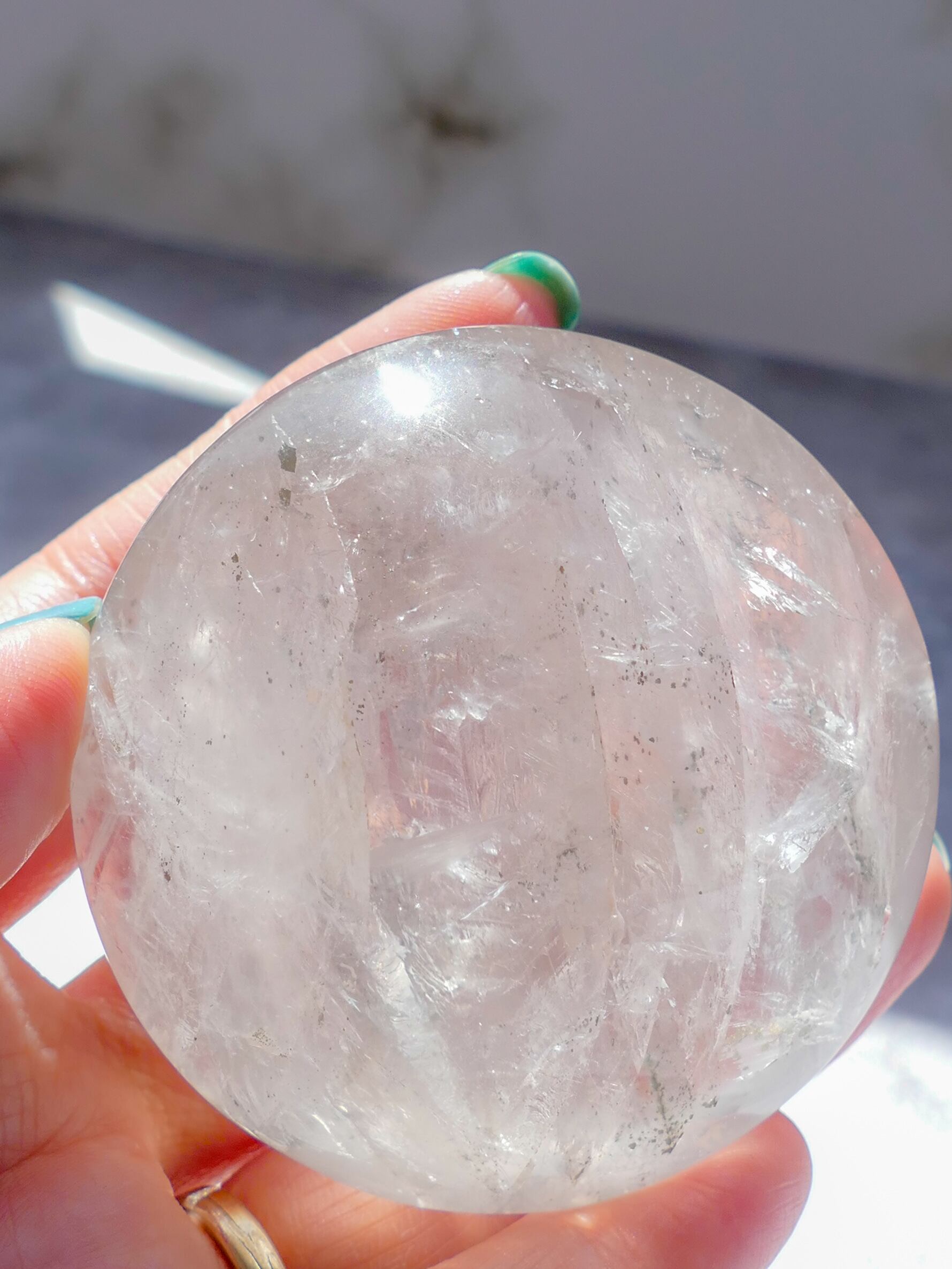 全体的に内包物が入っており、ガーデンクォーツのような水晶パームです♡太陽に透かすと内包物がキラキラ光って目が癒されます✨