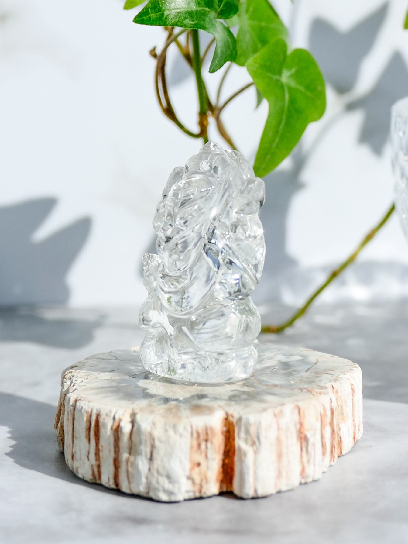 ガネーシャ神は「夢をかなえる象」「商売の神様」「学問の神様」「除災厄除」「財運向上」など、すべての開運の神様として、世界的に人気と信仰を集めています。新しいことをはじめる時に、資格試験に向けて、健康を祈願、お家の守り神としても是非お迎え頂けたら幸いです✨また、水晶のガネ様と言うことで浄化効果も期待できるかもしれません♡