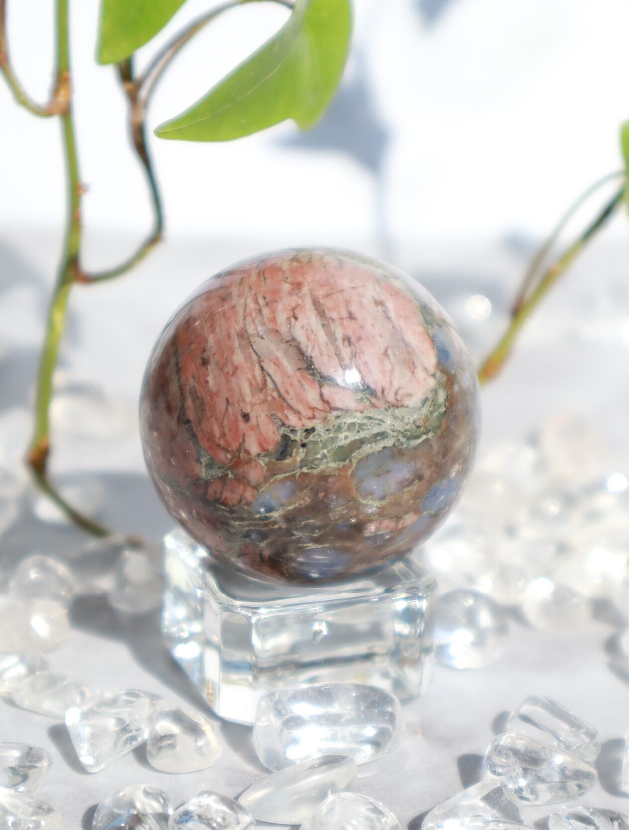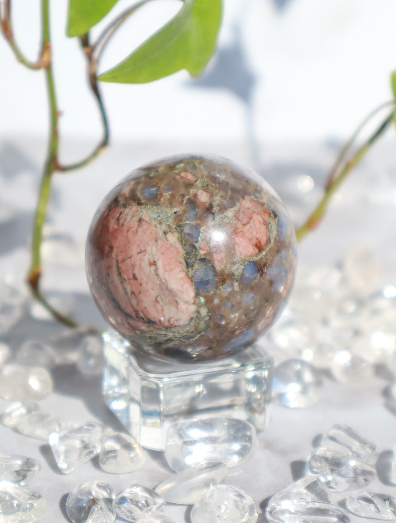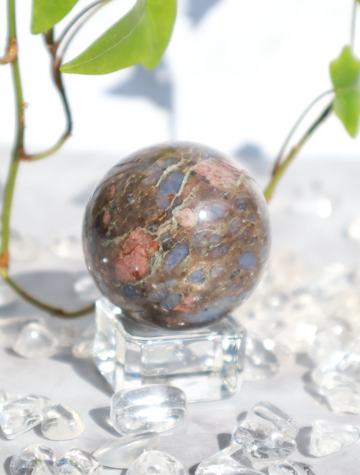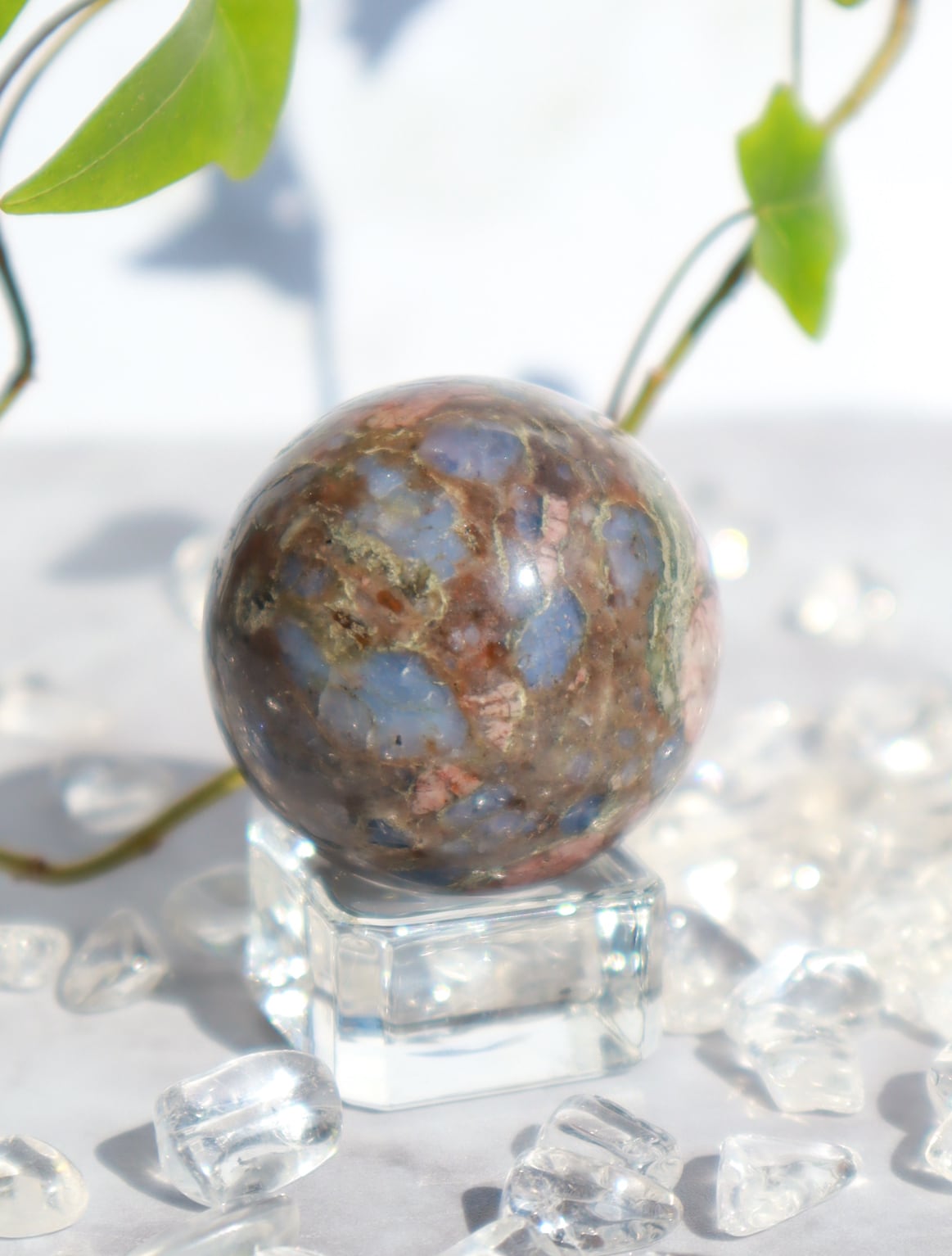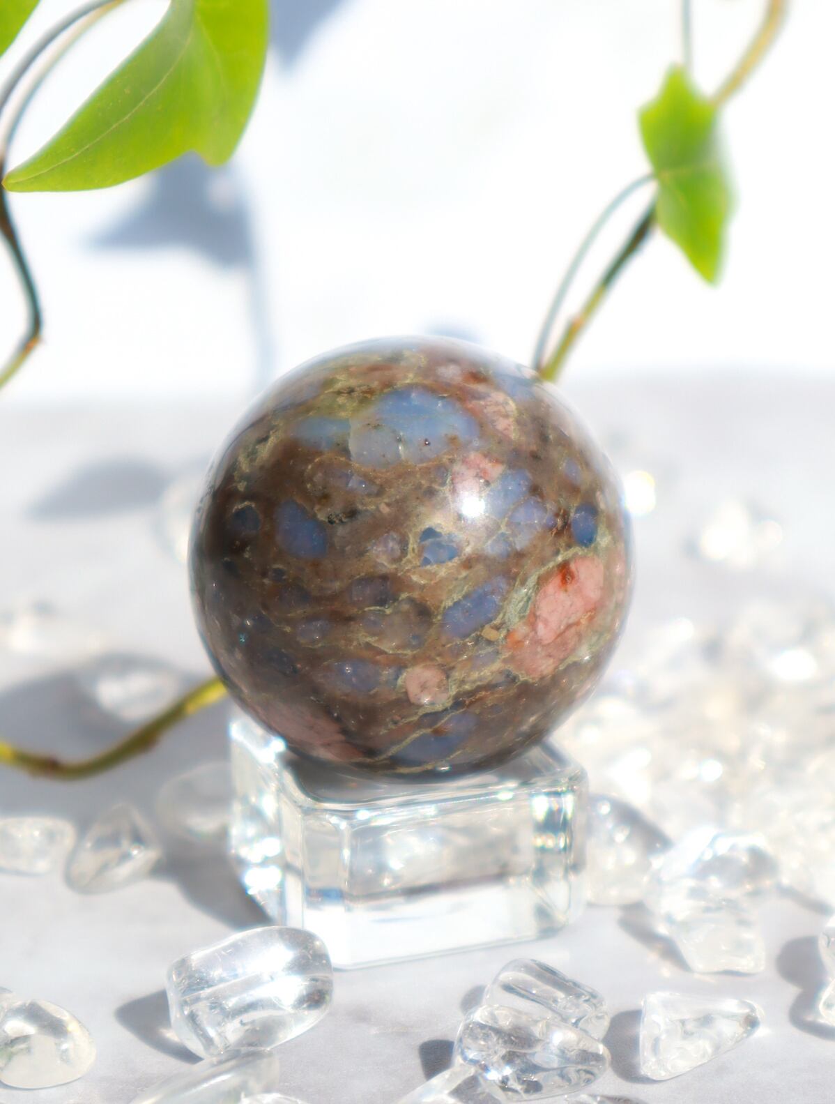 混合した石によって、様々な色合い・模様が見られます♡このこはピンクの面が多くとっても可愛いらしいこです♡ブルーオパール部分も多く光を当てるとキラキラして癒されます✨✨